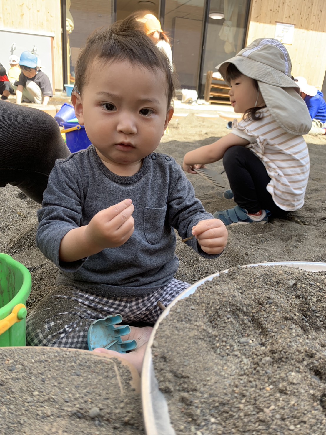 初めての砂場遊び♪