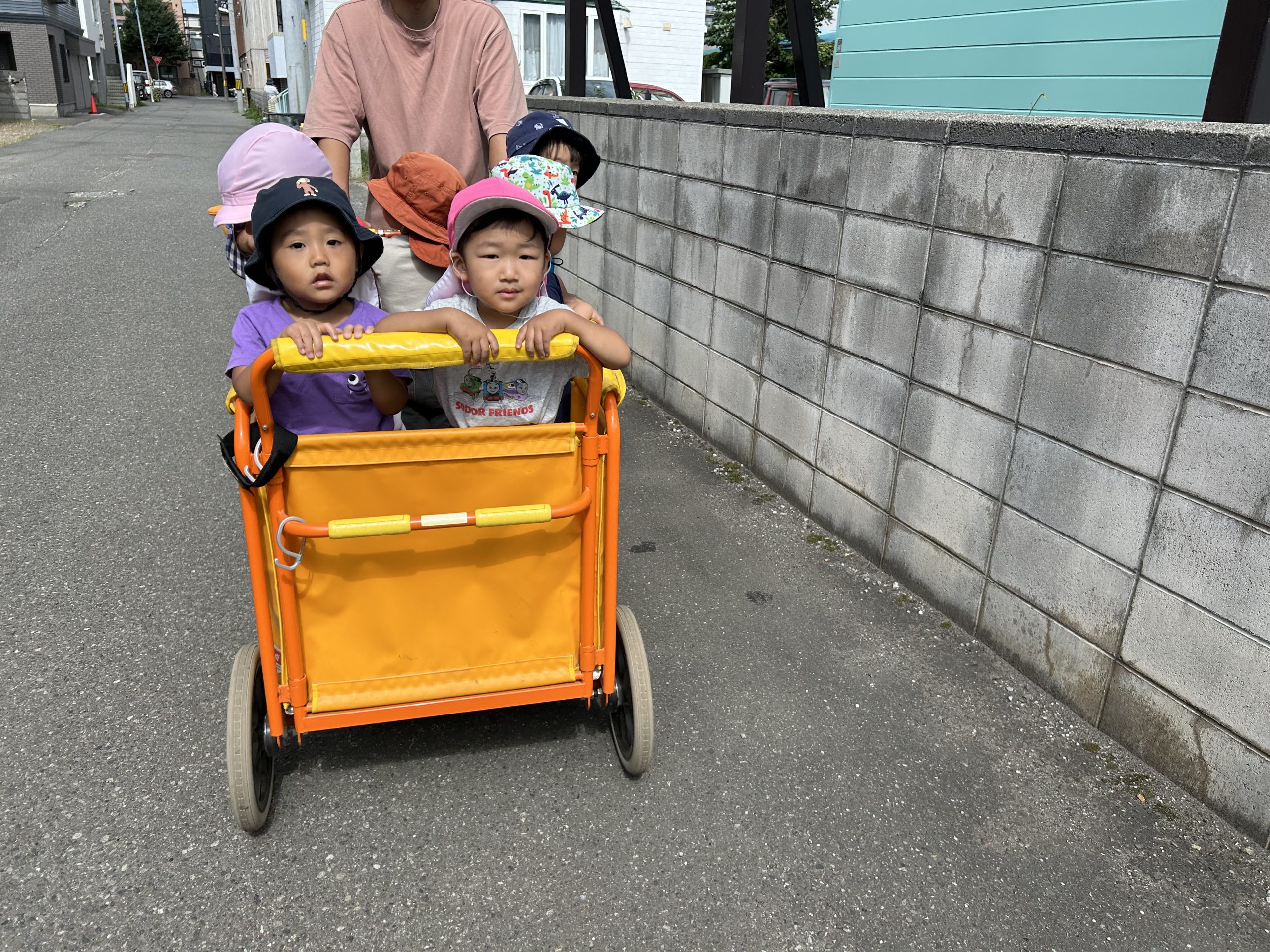 後ろのバギーに乗るお友だちも