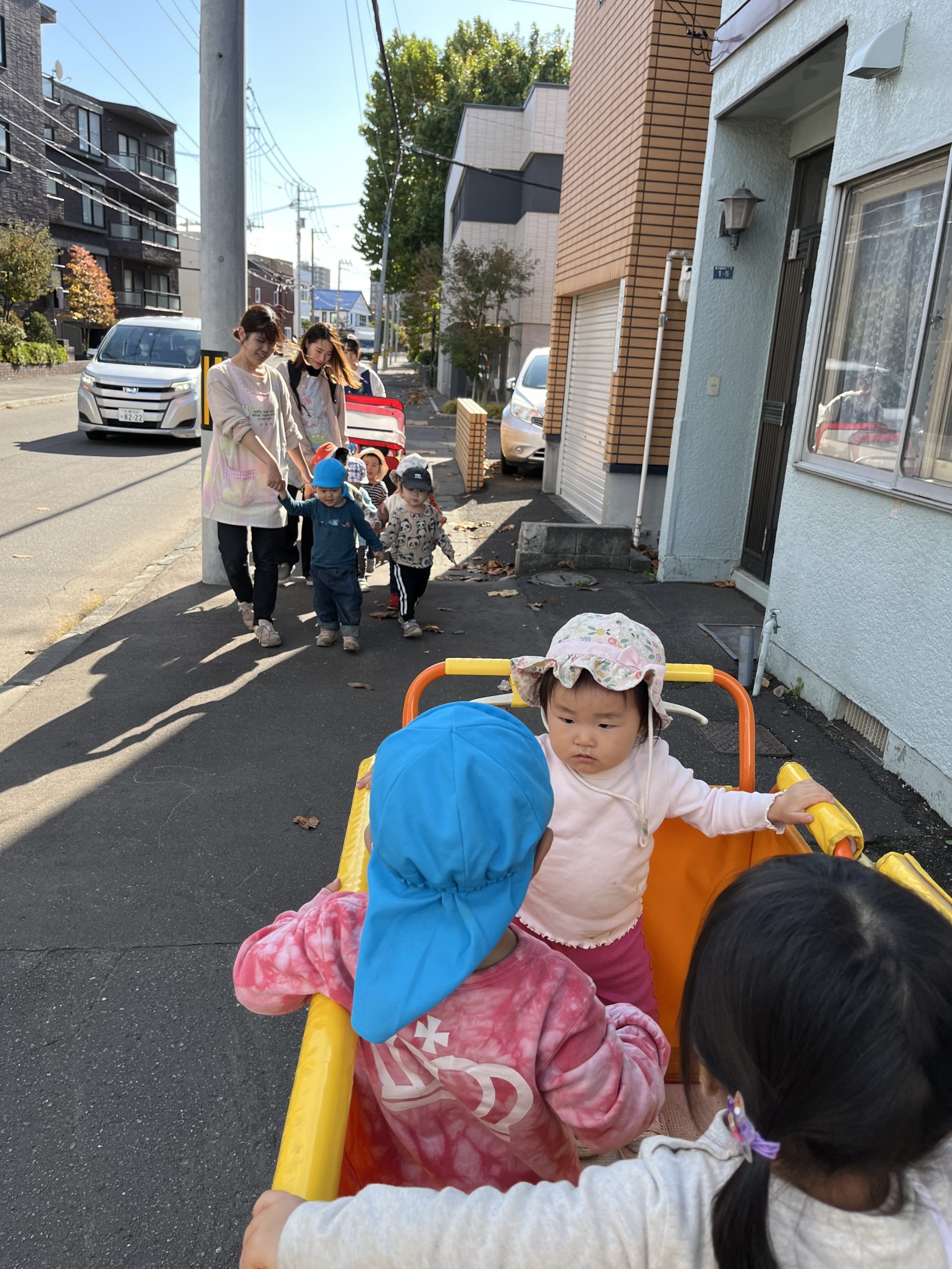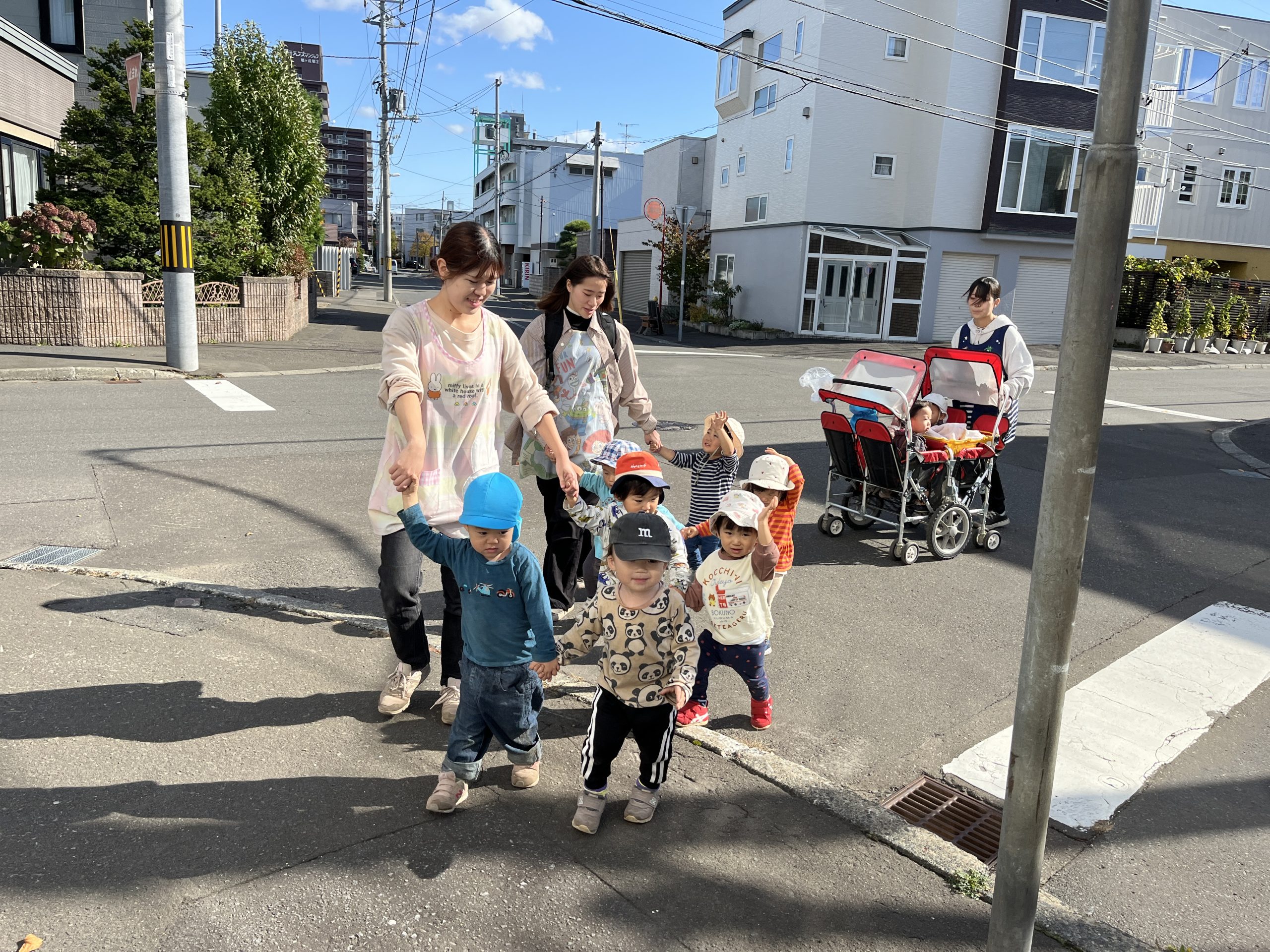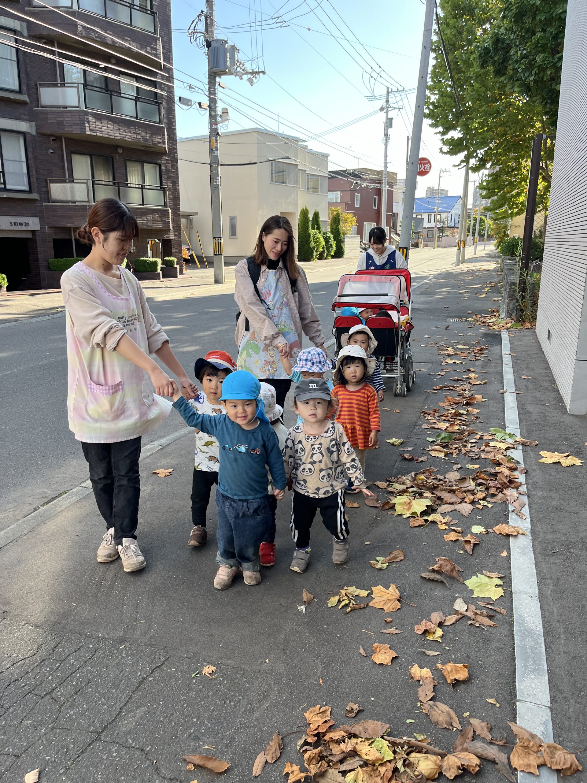 お散歩では、公園まで歩ける子が増え