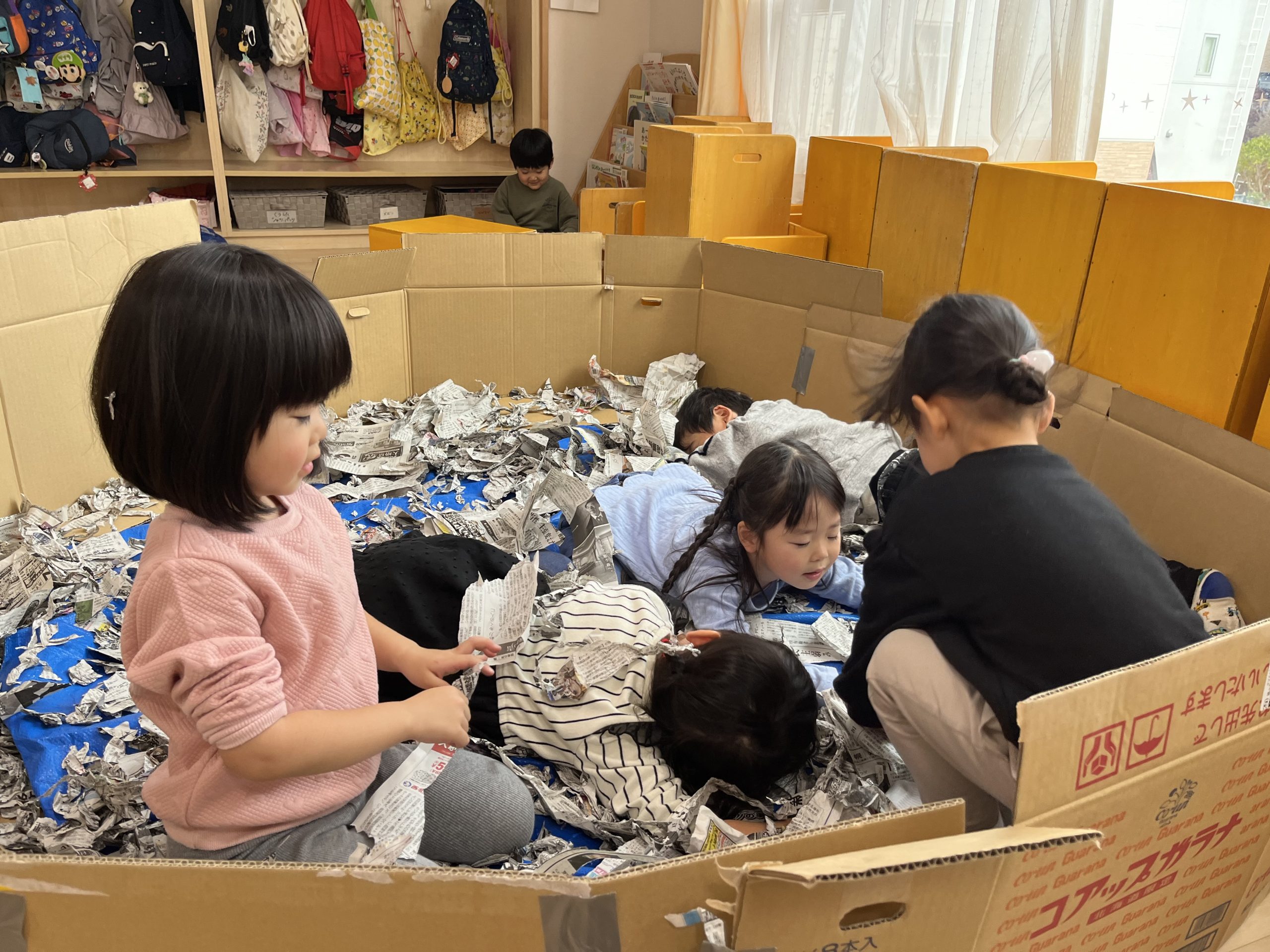 次は新聞紙プールに!