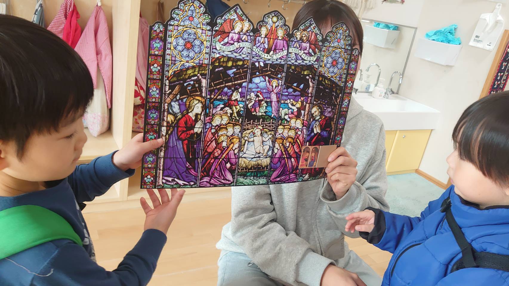 これは、しらゆりさんの。絵柄は、クリスマスのイエス様の降誕するシーンのもの。