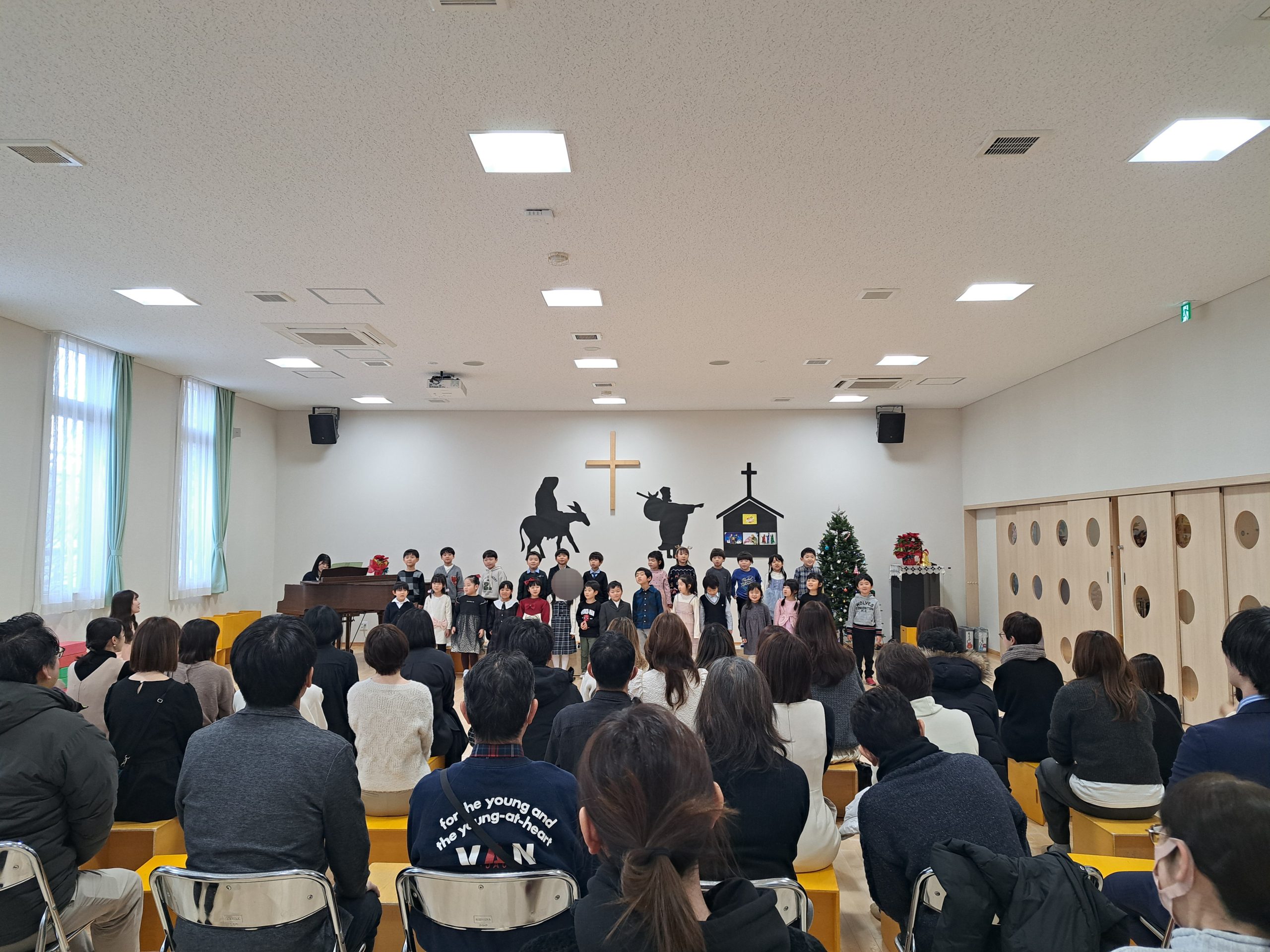 礼拝での、しらゆりさんを中心としたページェント。クリスマスの意味を伝えられ、子ども達も充実感が大きかったように思います☆