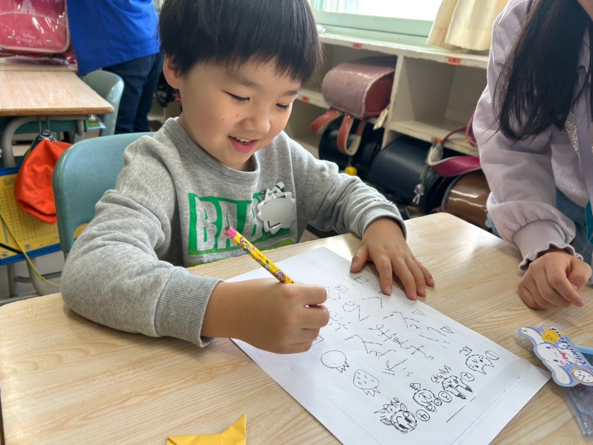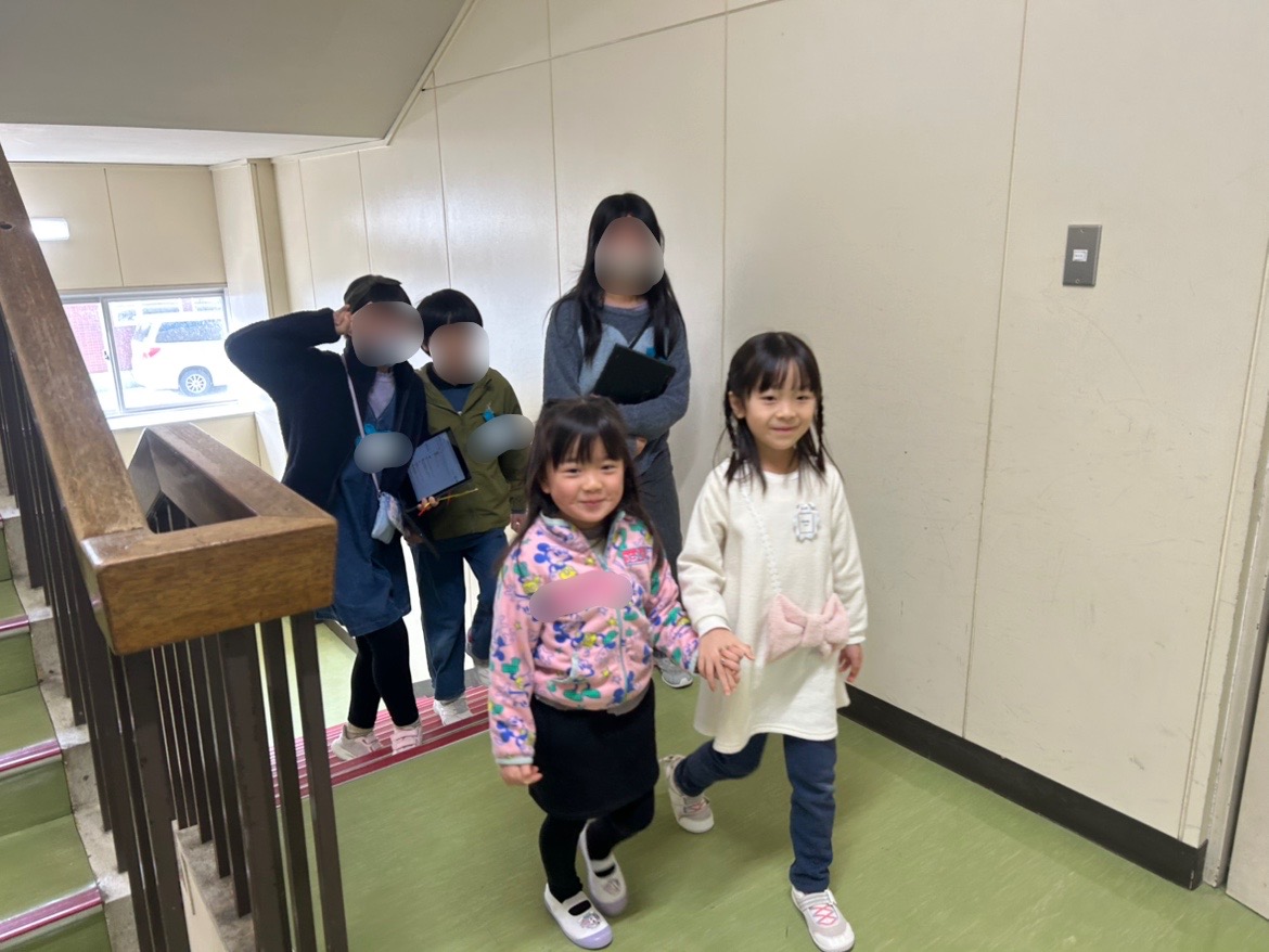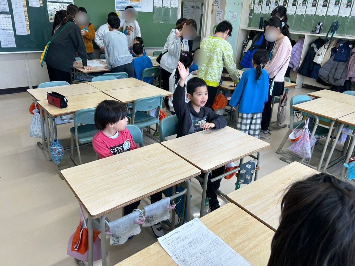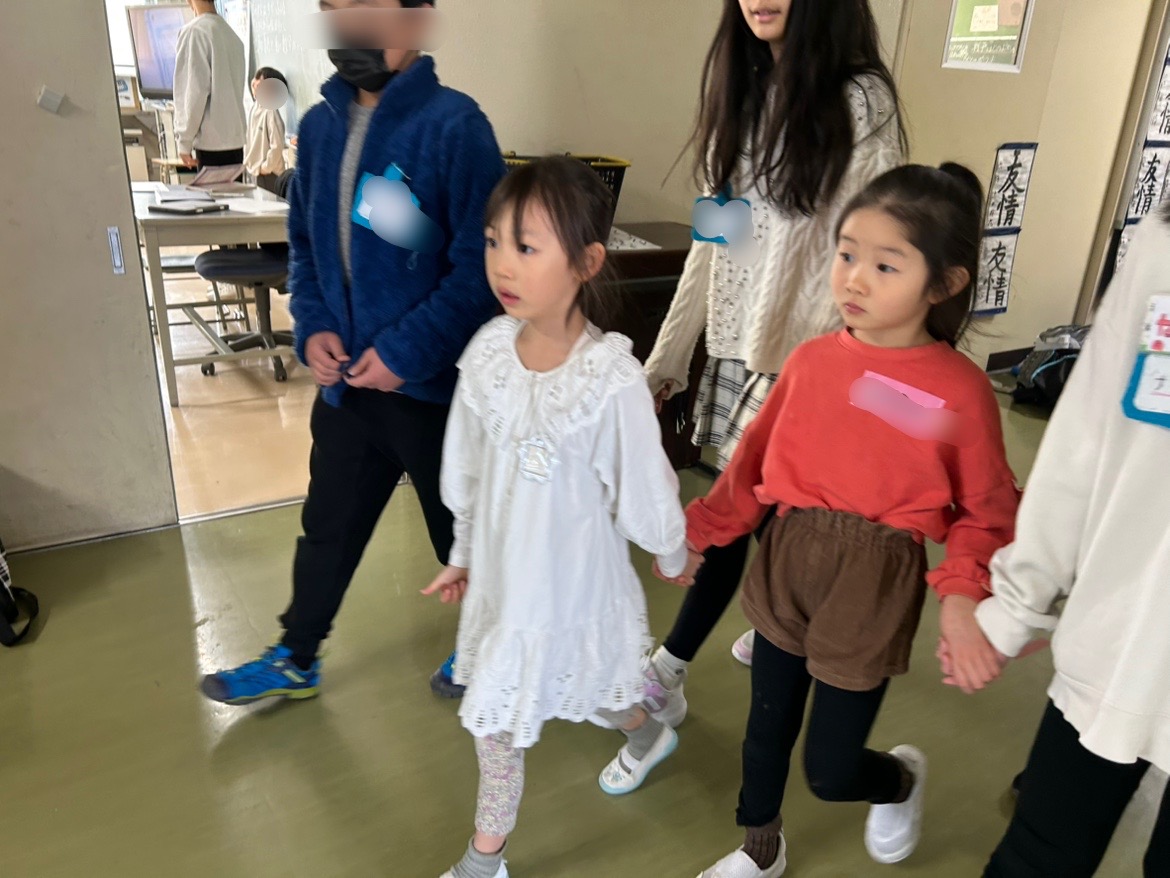 小学校に着くと5年生のお兄さんお姉さんがいました!
