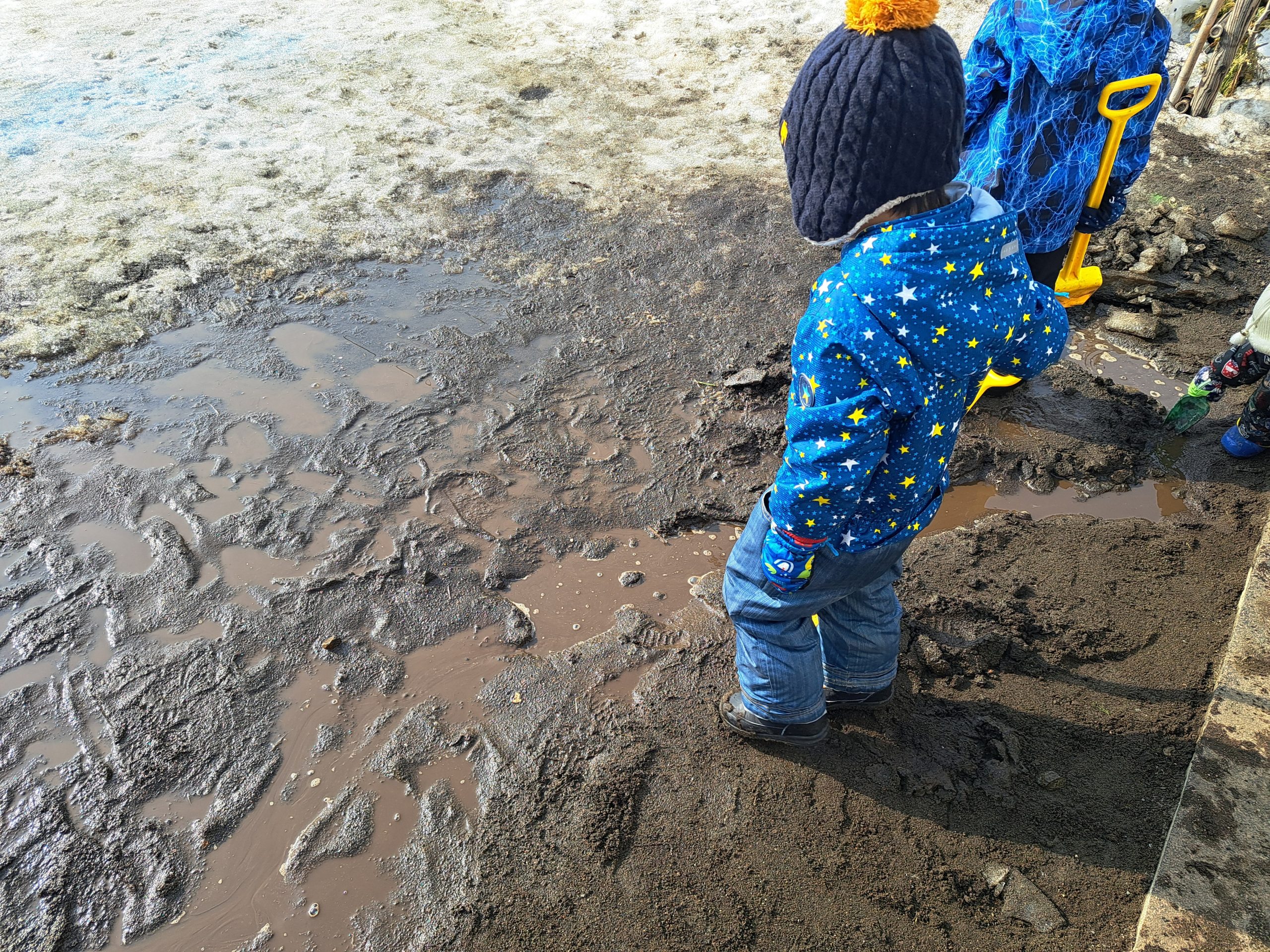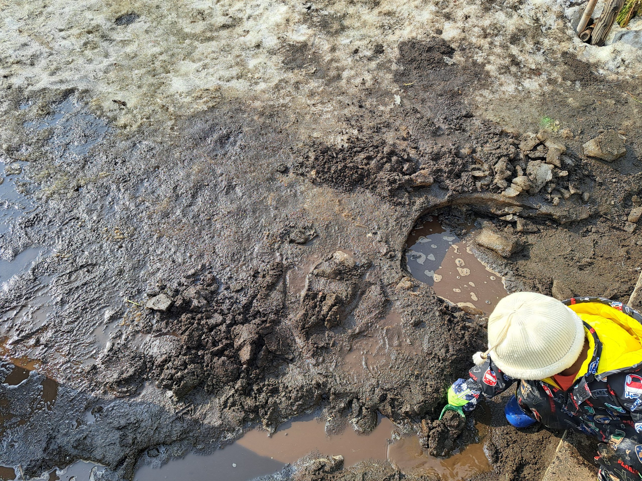 季節が逆戻り… 水路を作って遊ぶ子ども達。笑