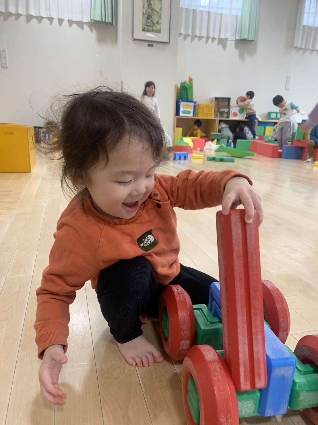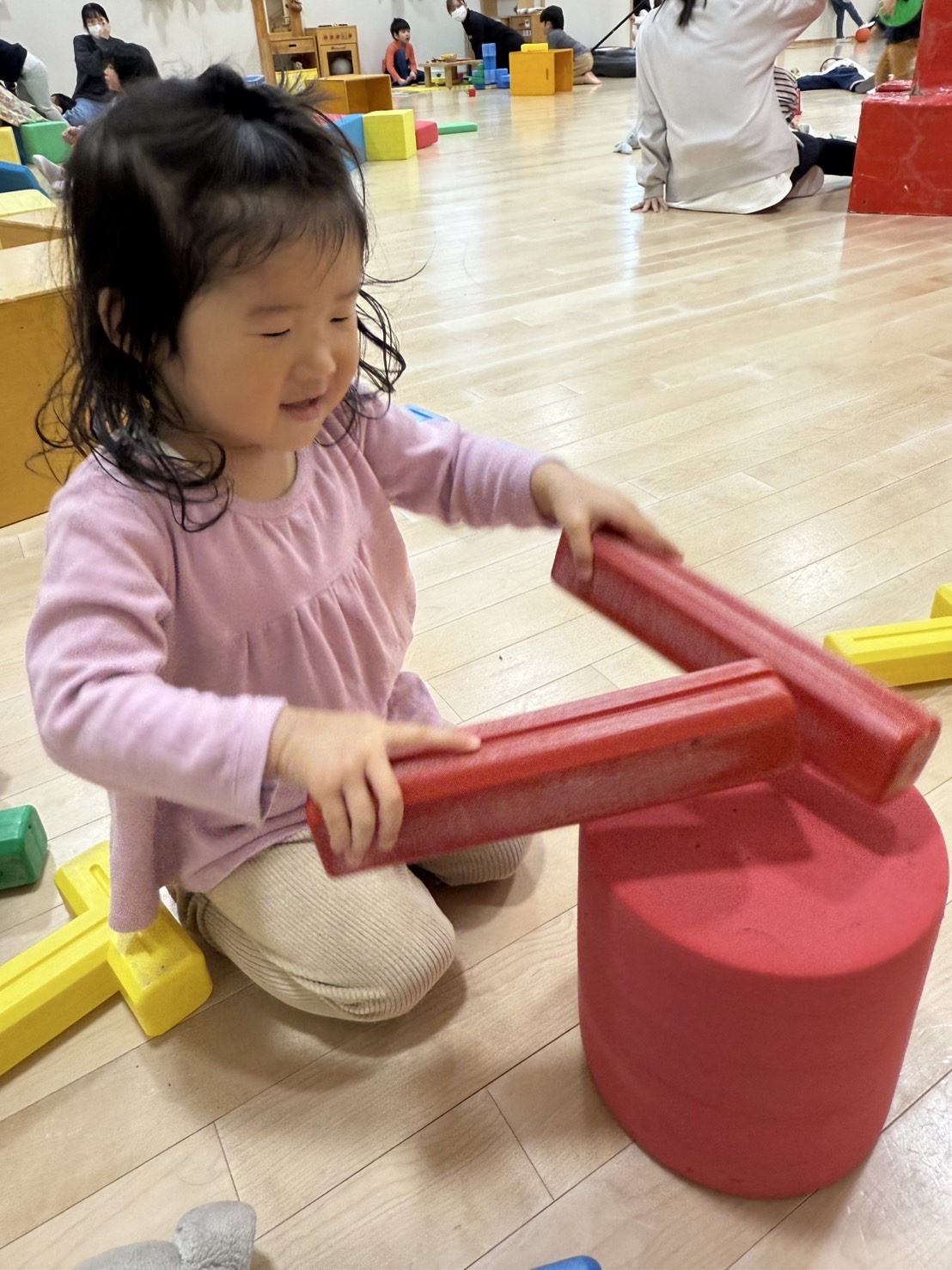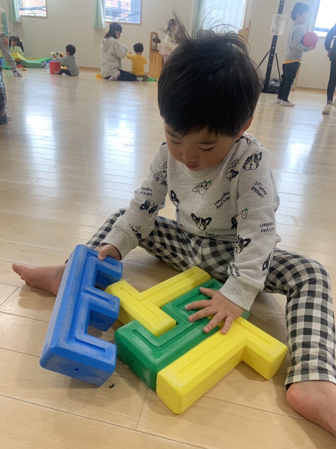 ホールでブロック遊び