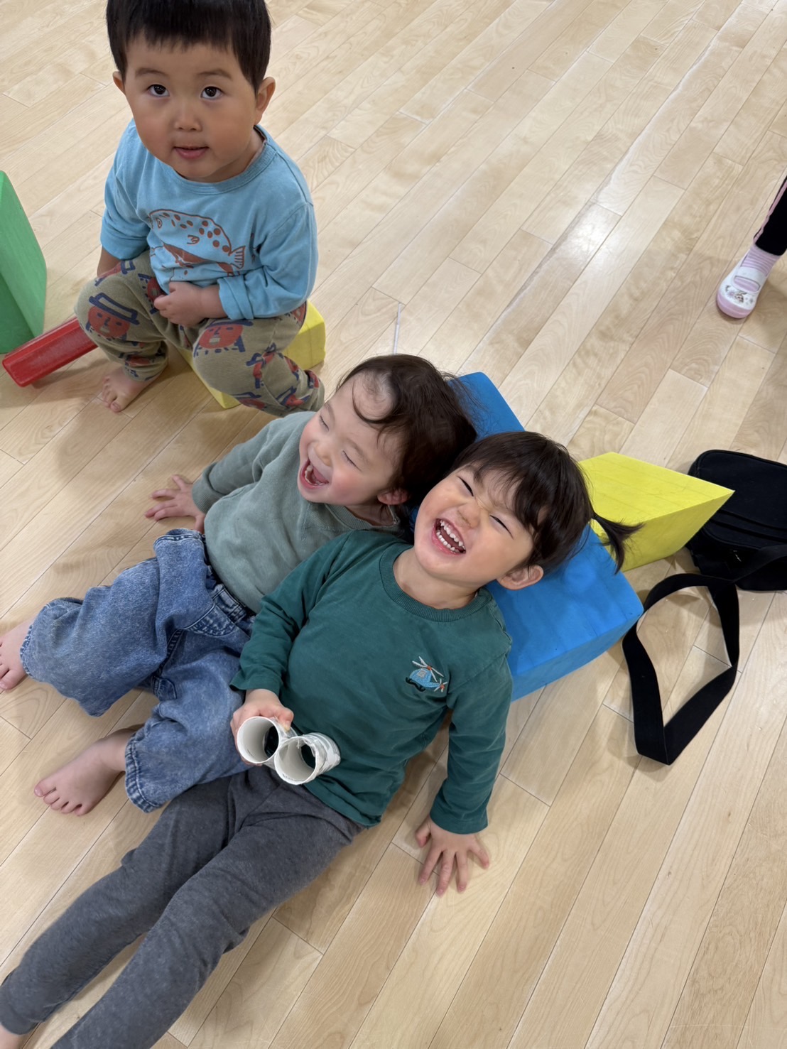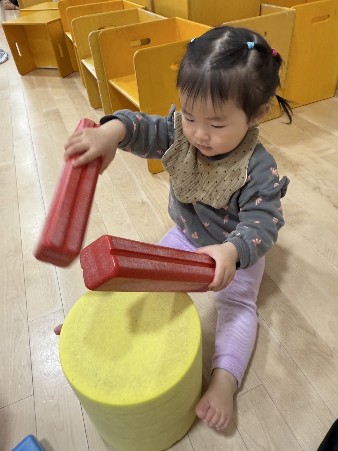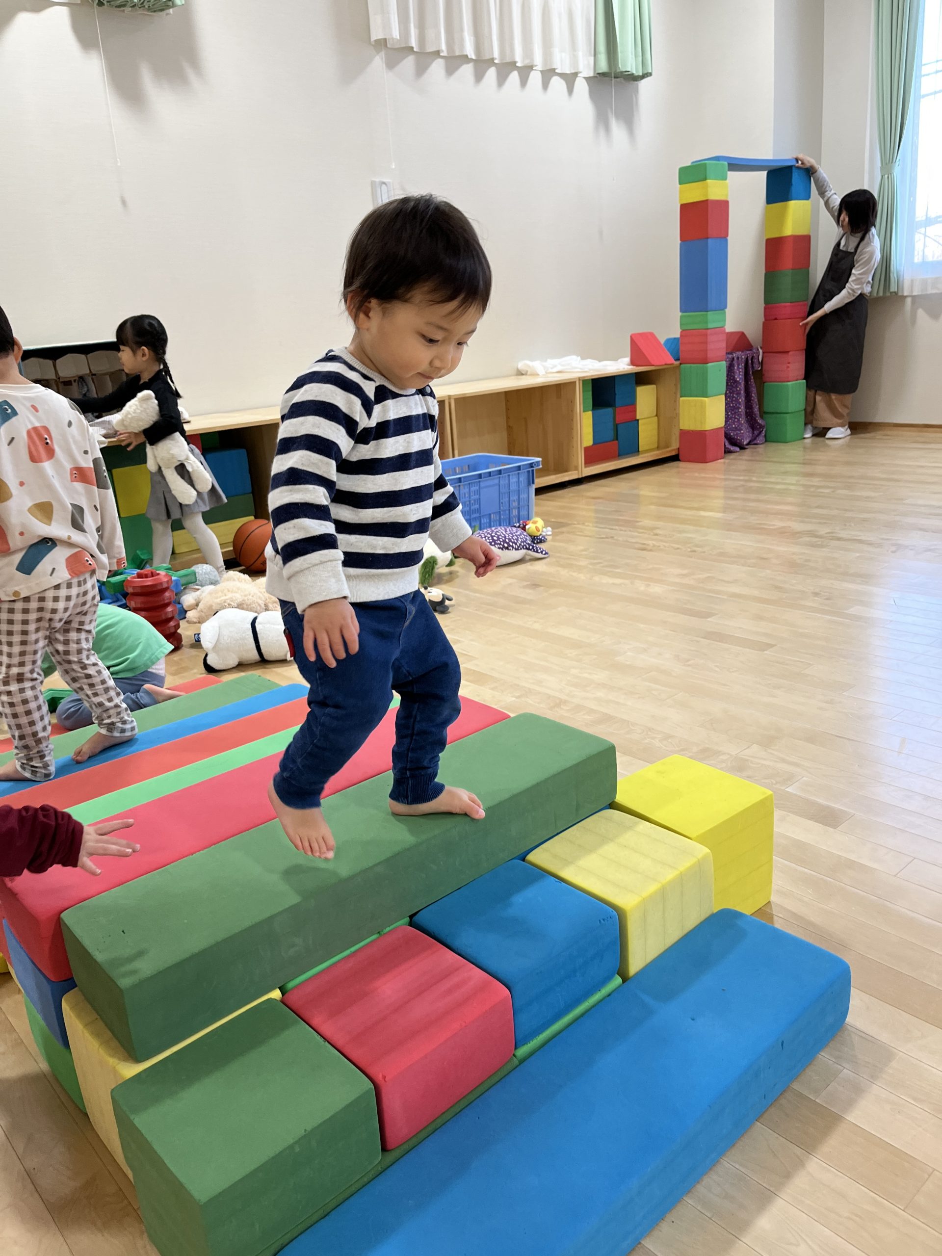 ホールでブロック遊び