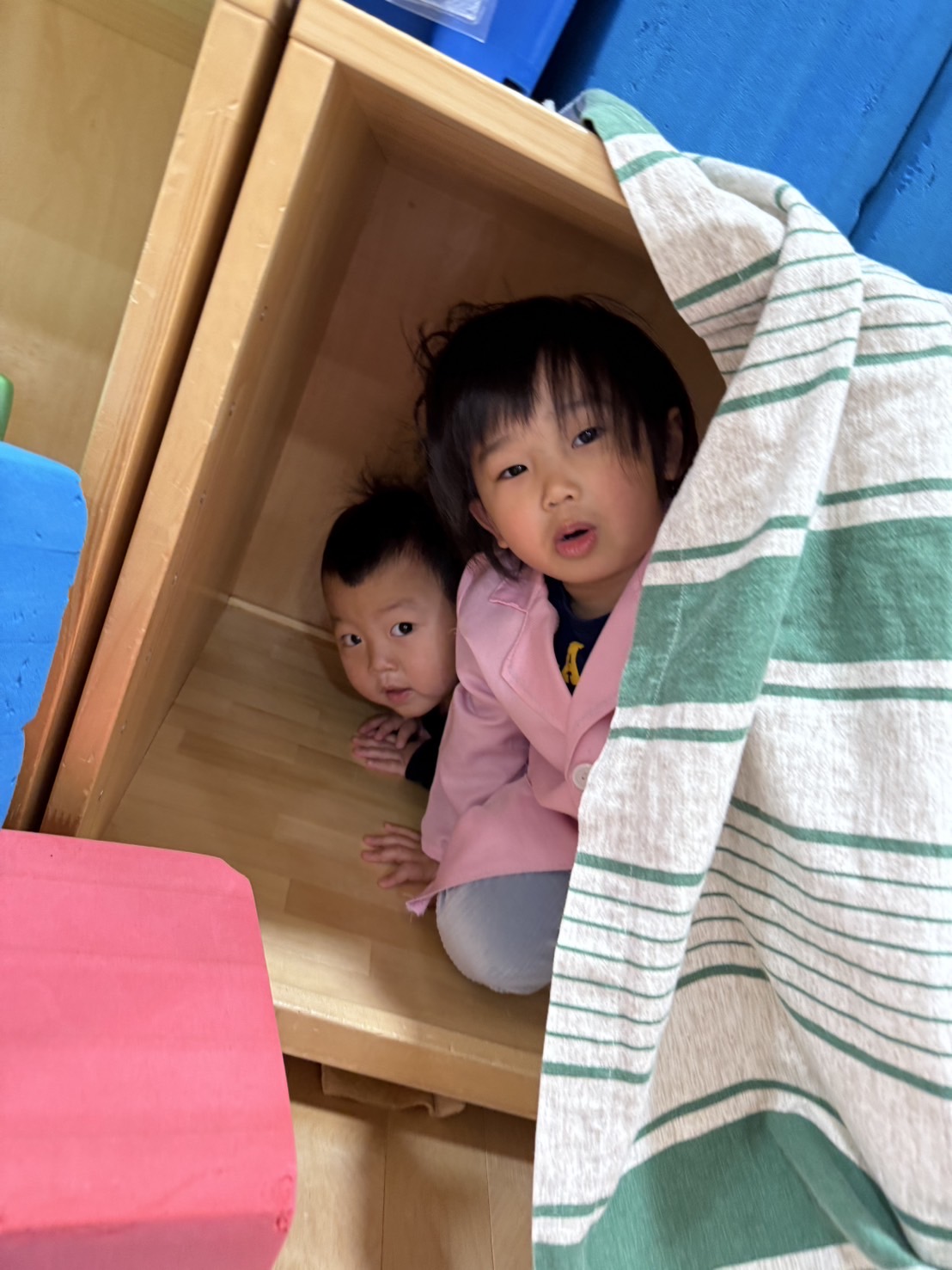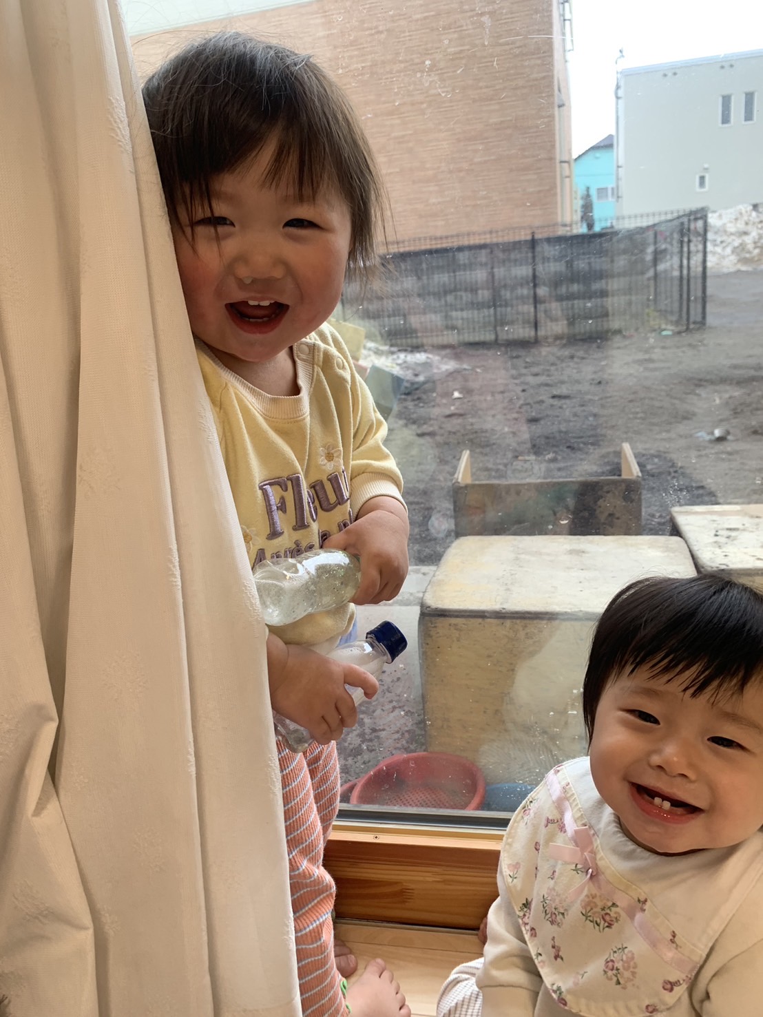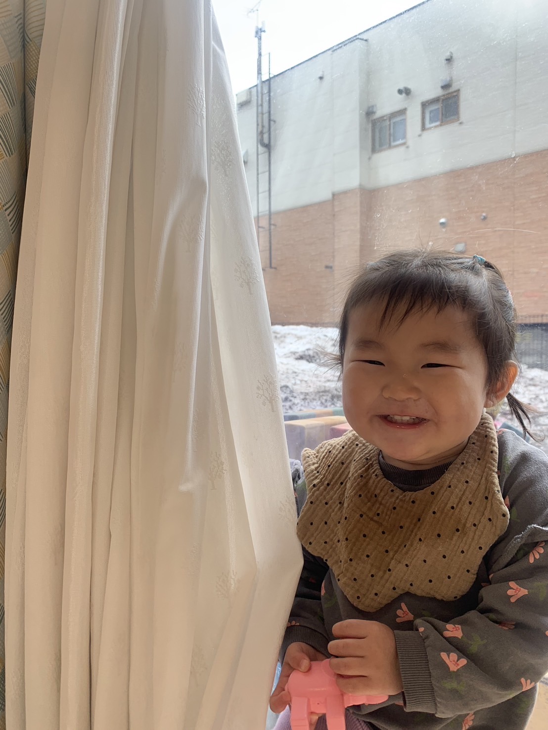 カーテンから「ばぁ!」