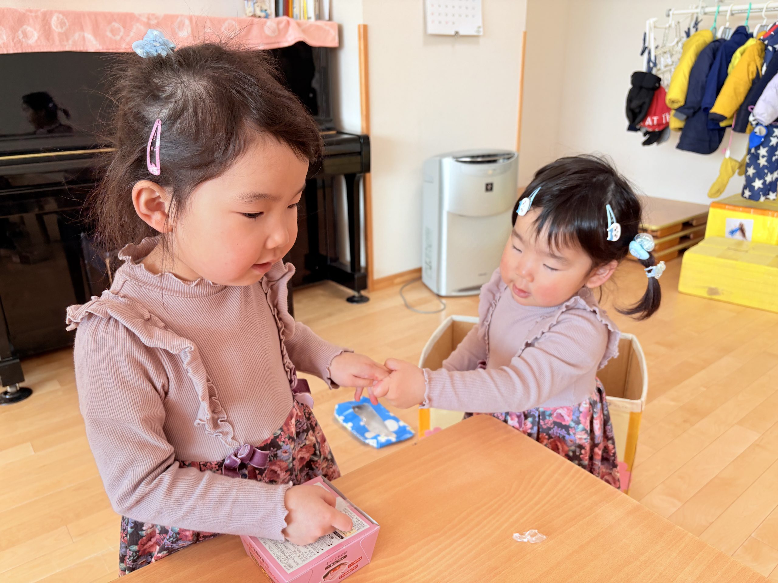 いつもの大好きなお友だちと楽しそうに過ごす子も