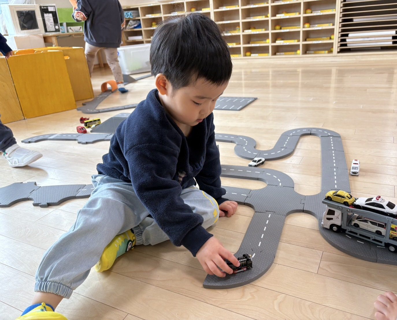 車遊びブロック遊びをしていました