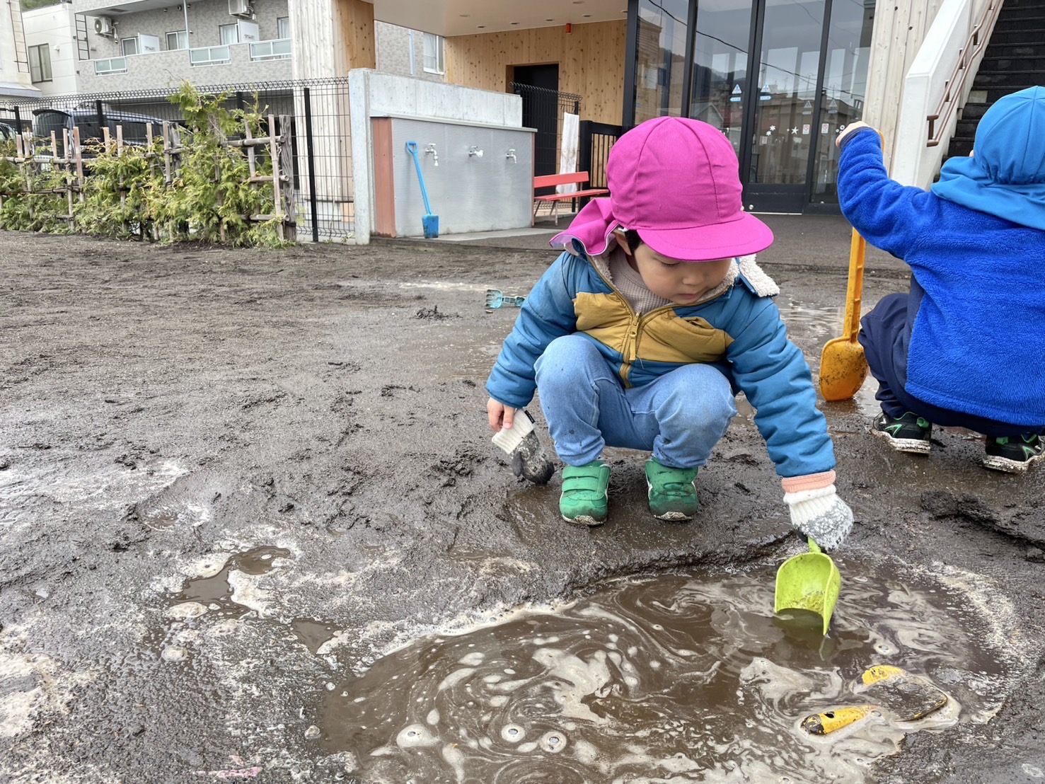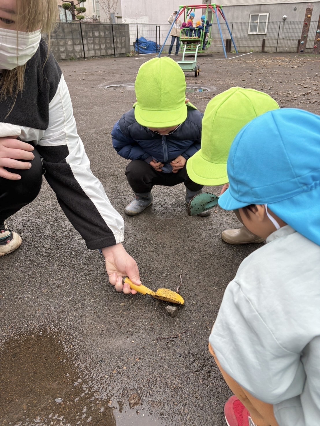 雨のおかげで園庭には