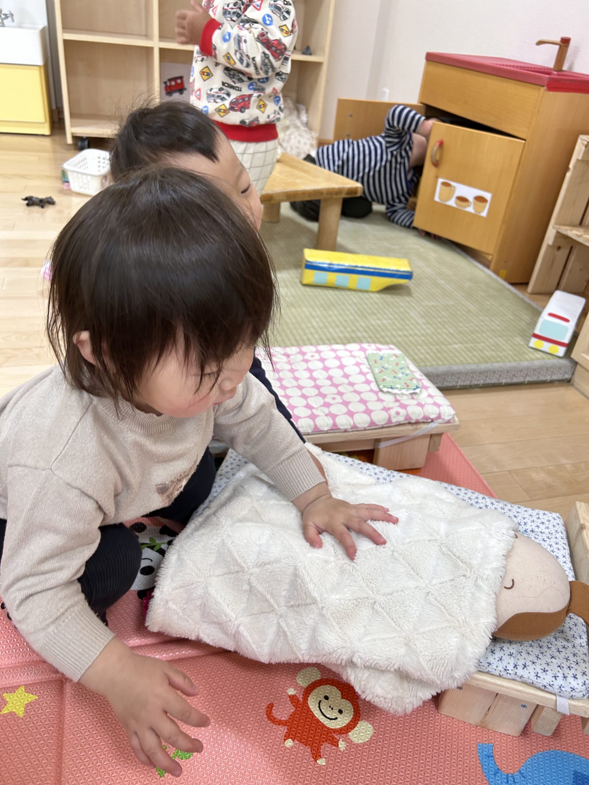 赤ちゃん人形をとんとん…