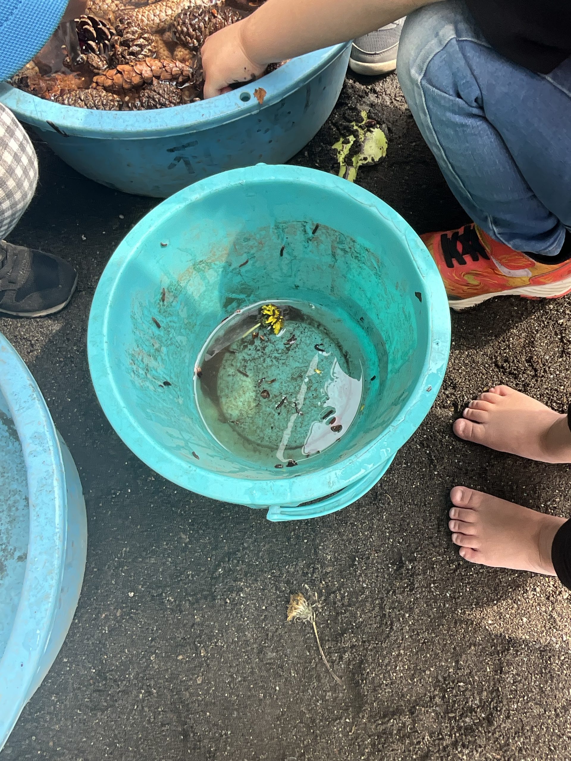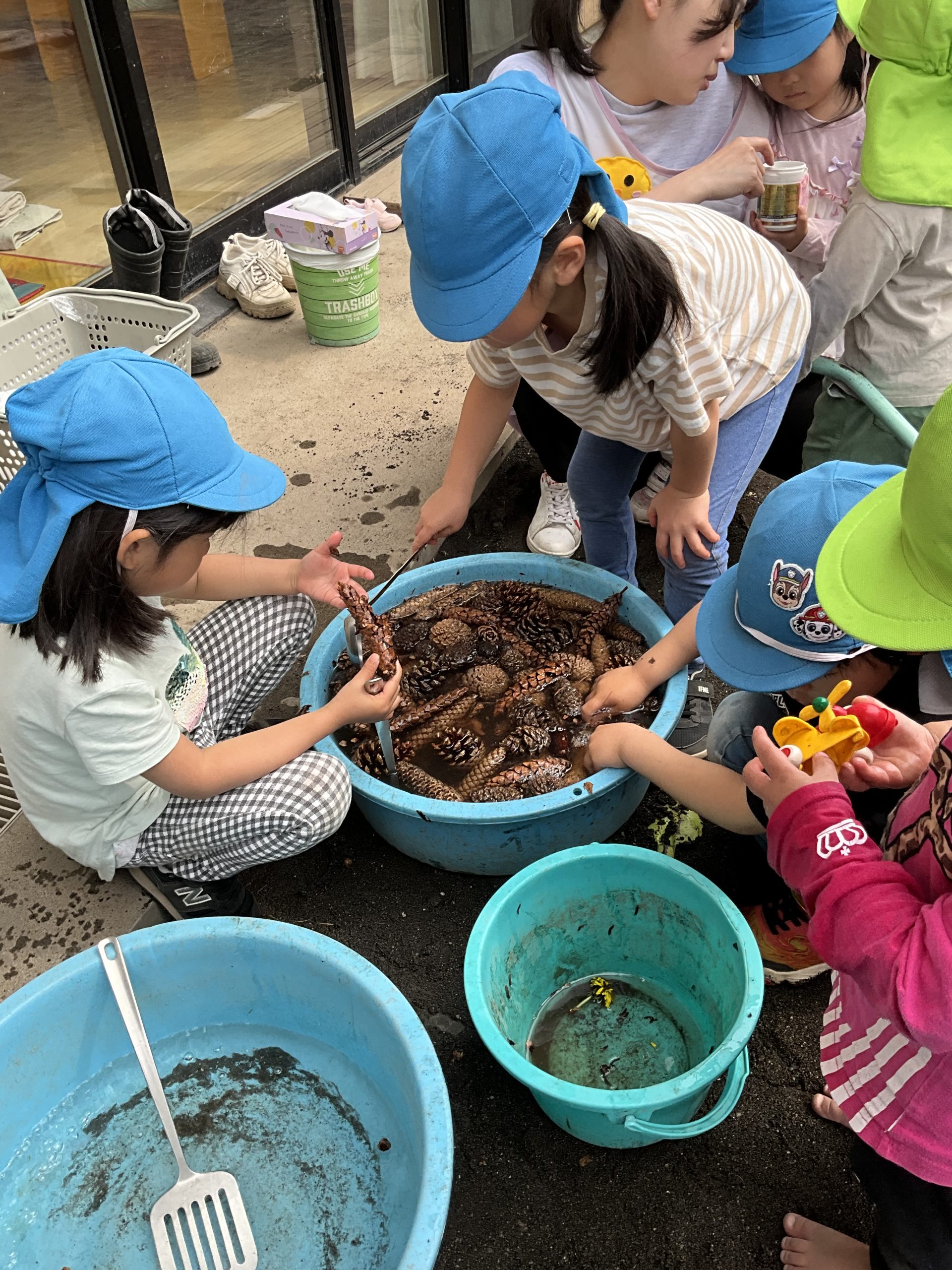 昨日拾ってきた松ぼっくりを洗うしらゆりさん!
