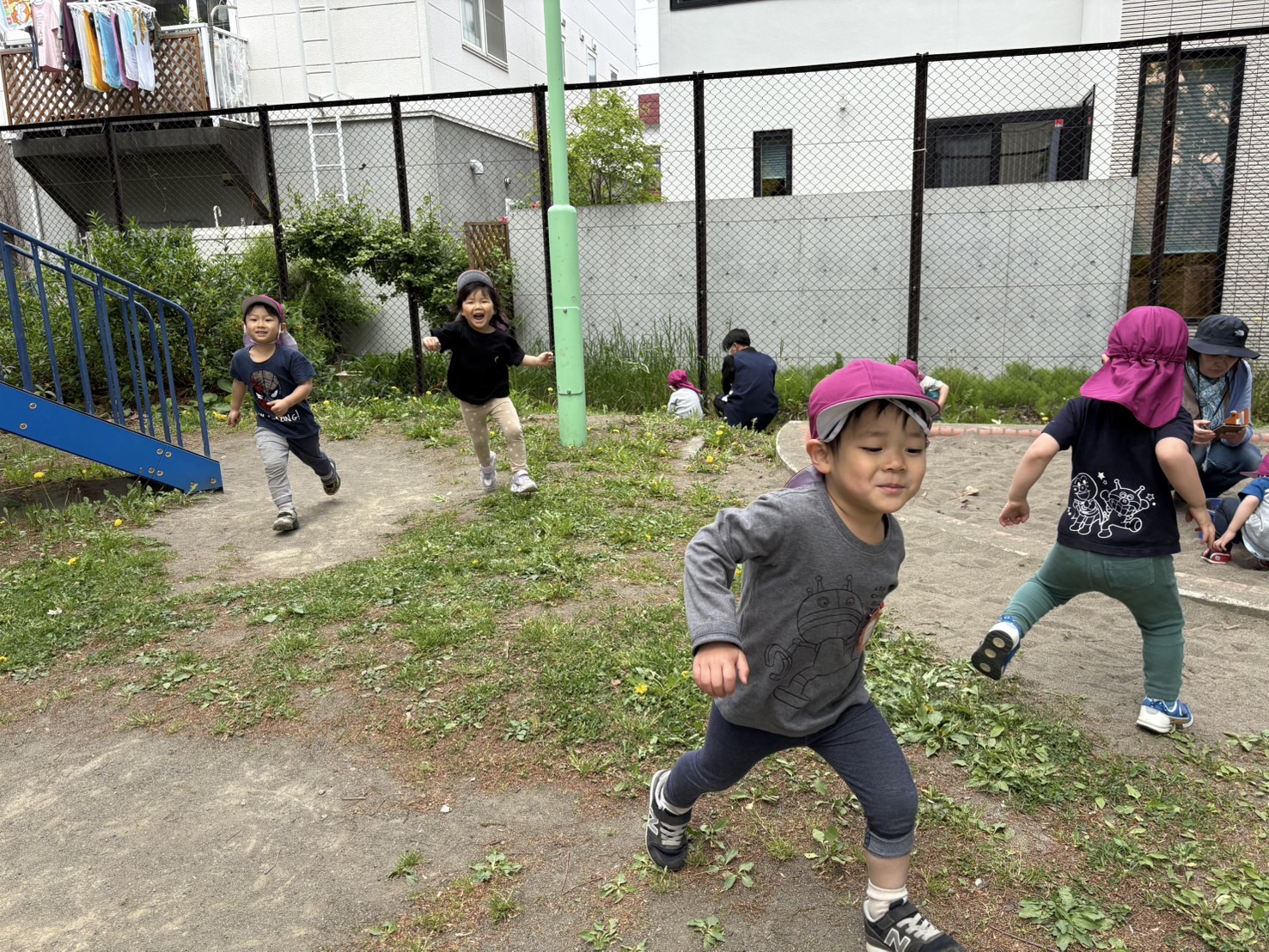 高いところに登る、田中先生を何とか捕まえようとしていました(*^-^*)