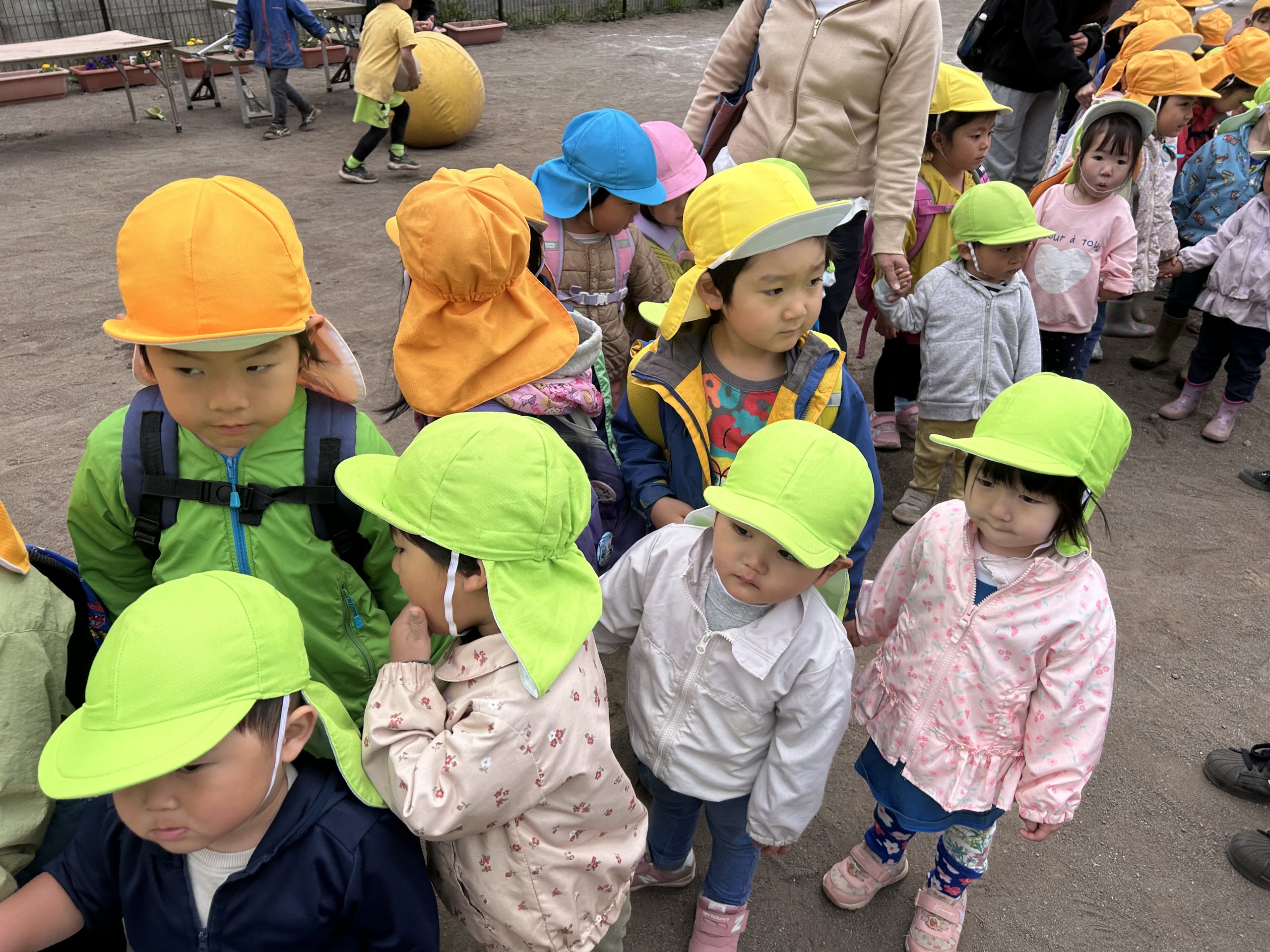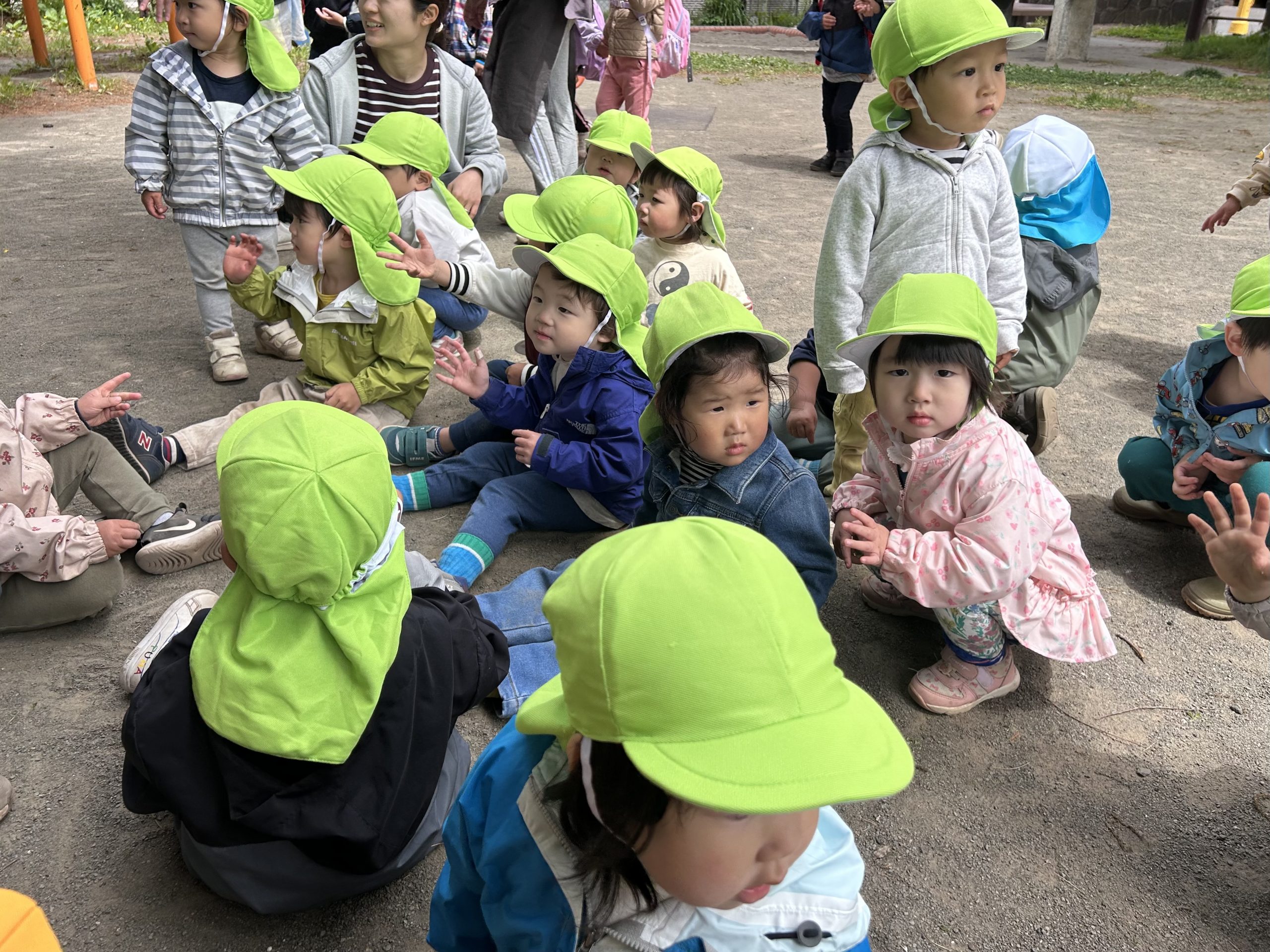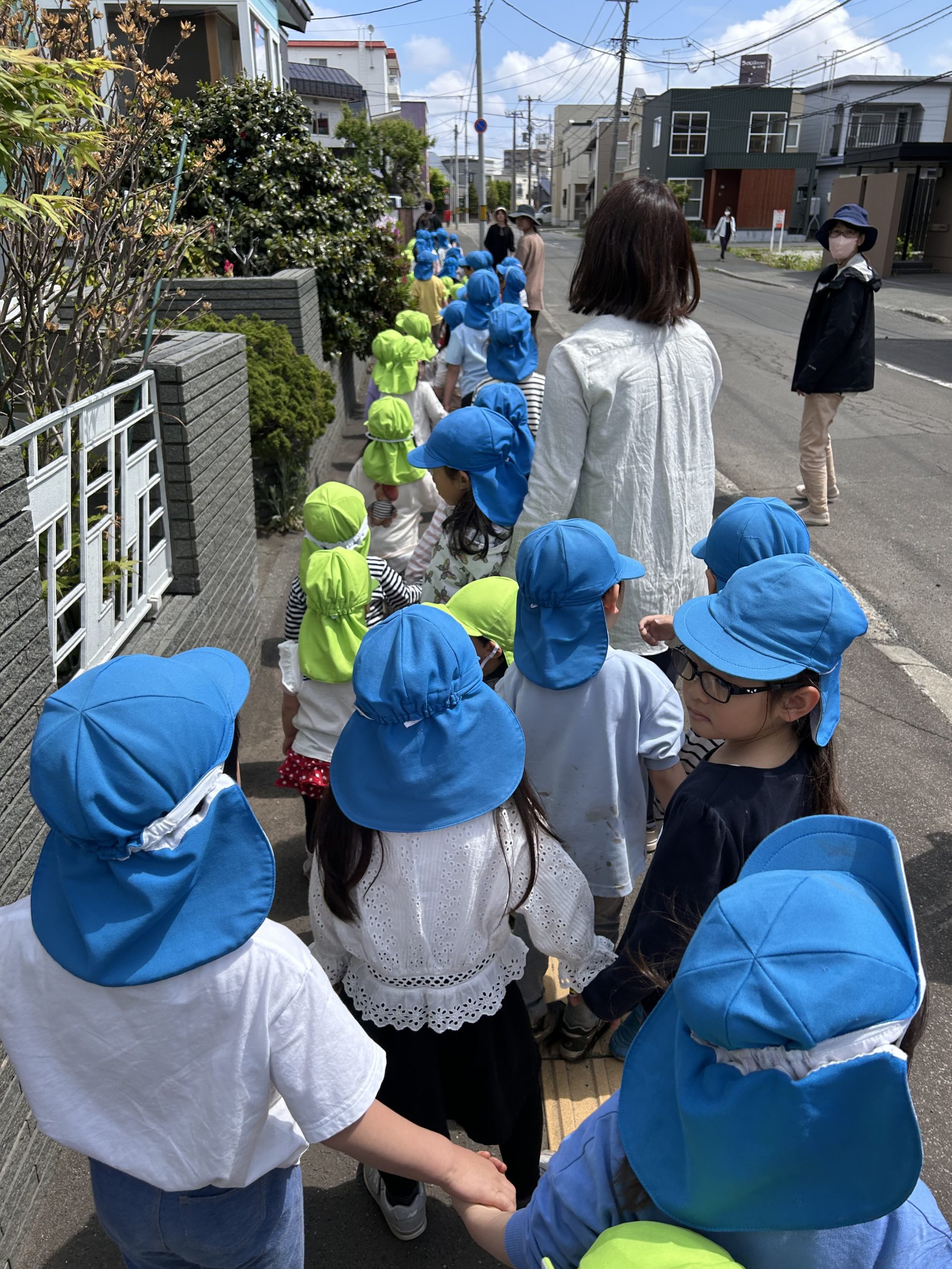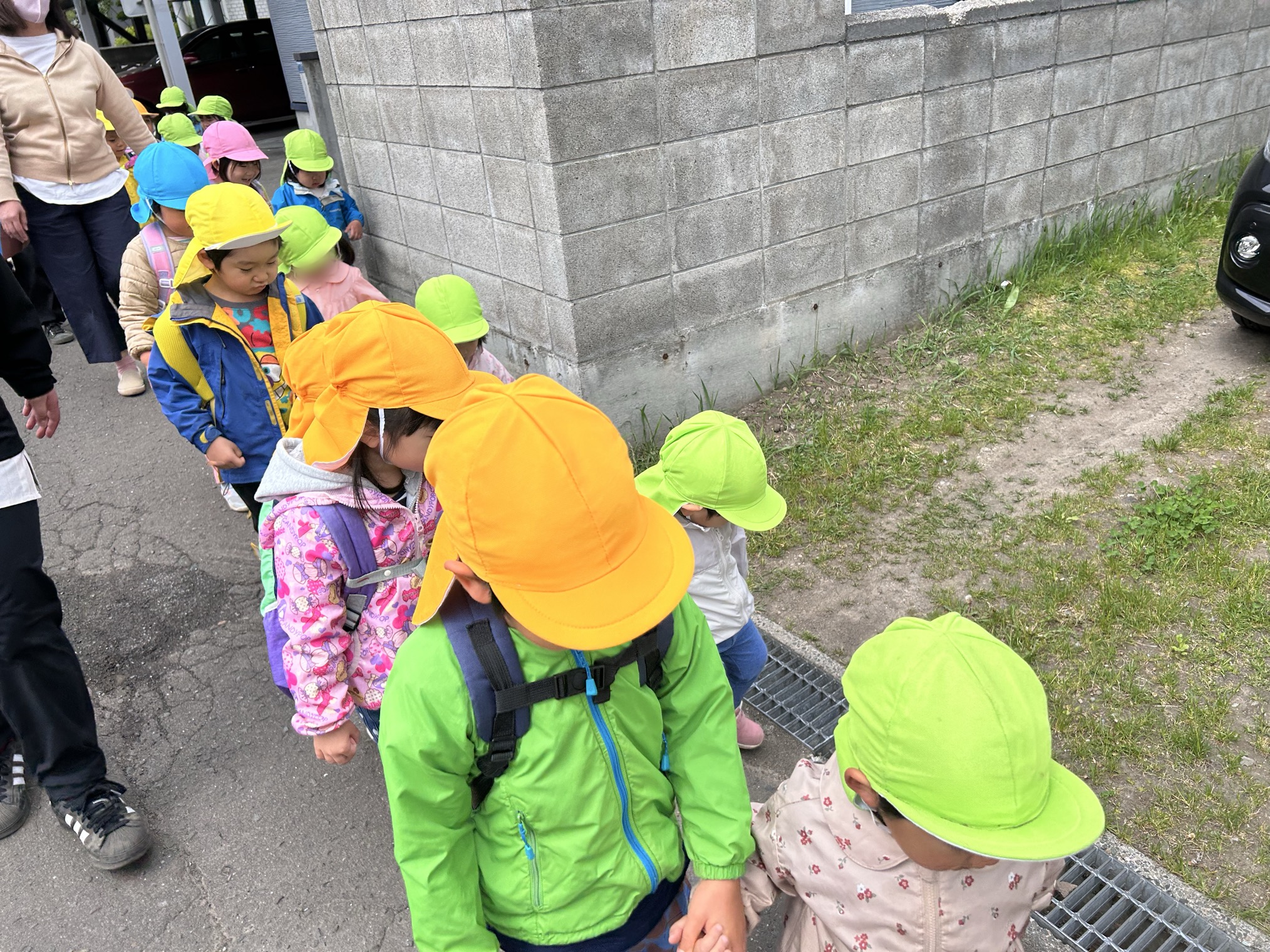 にじ・たんぽぽのみんなは、この日が初めてのお散歩!