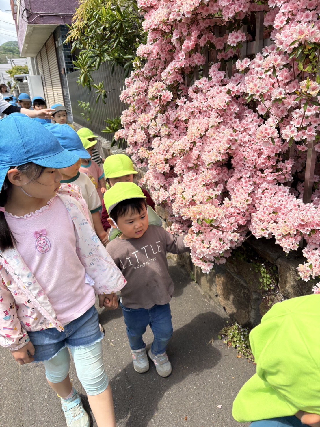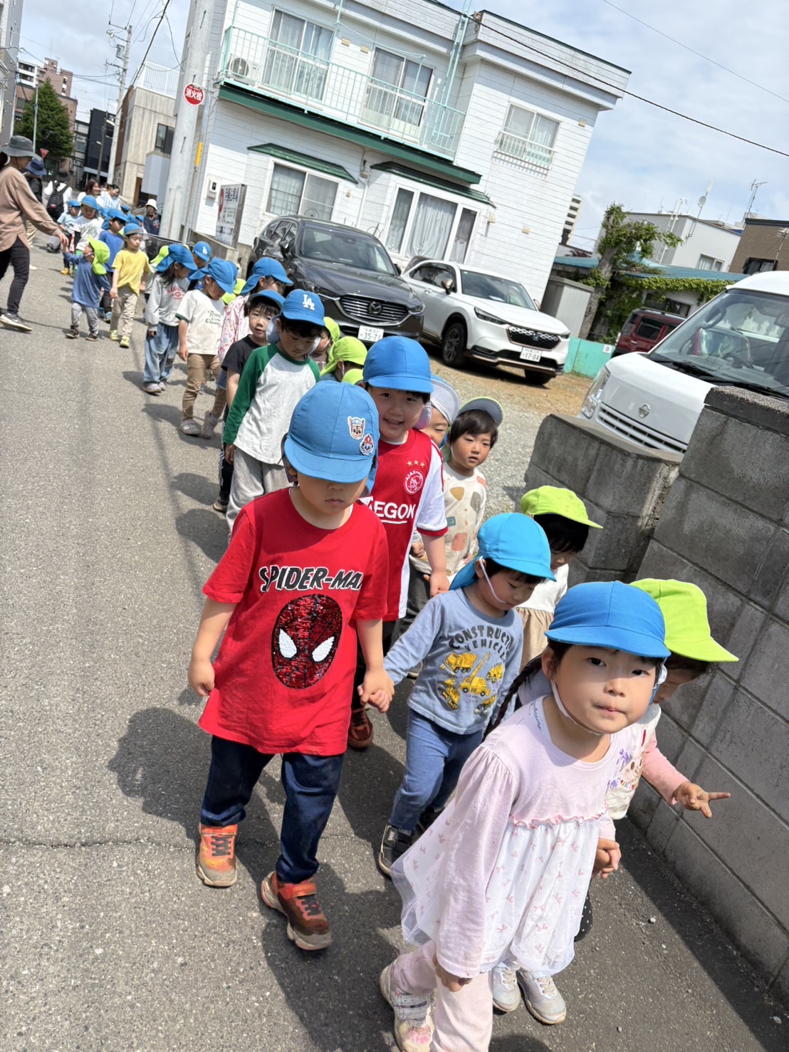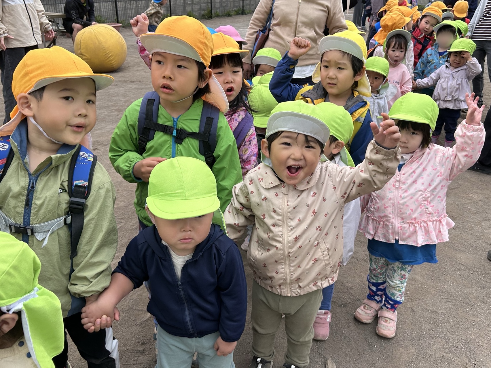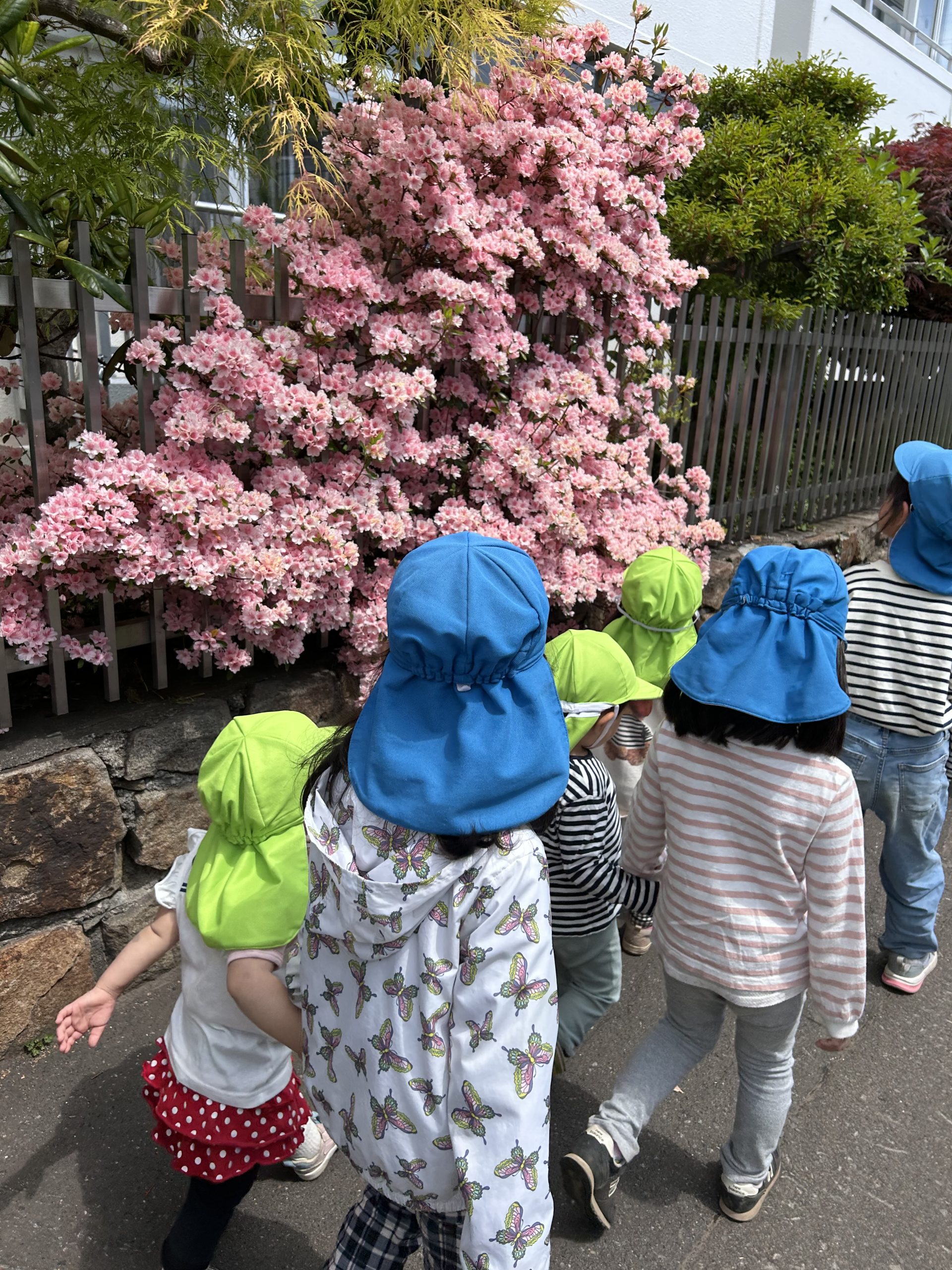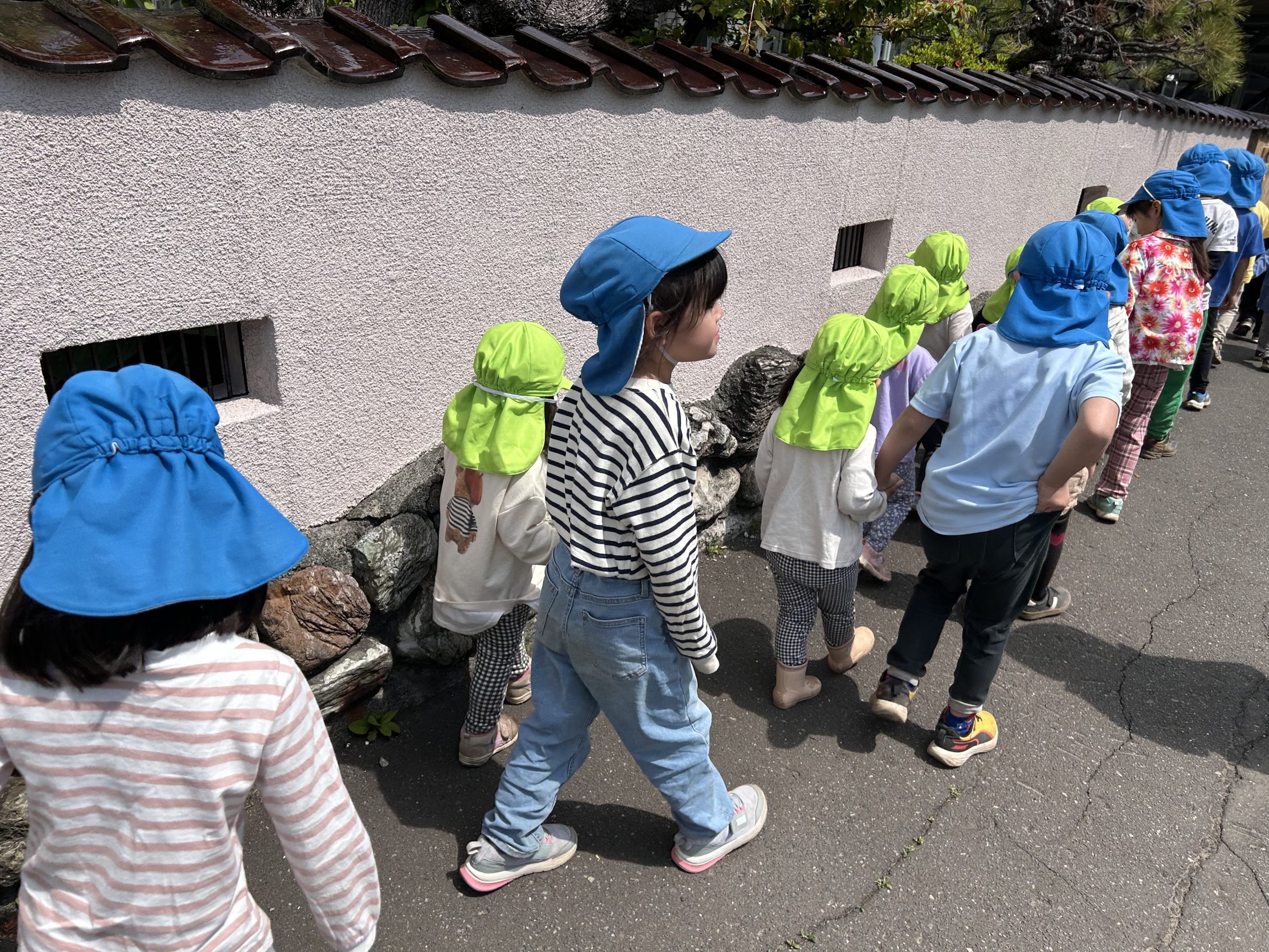 にじ・たんぽぽのみんなは、この日が初めてのお散歩!