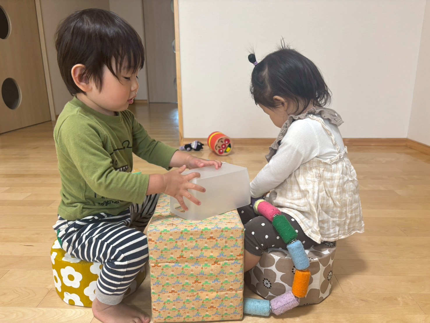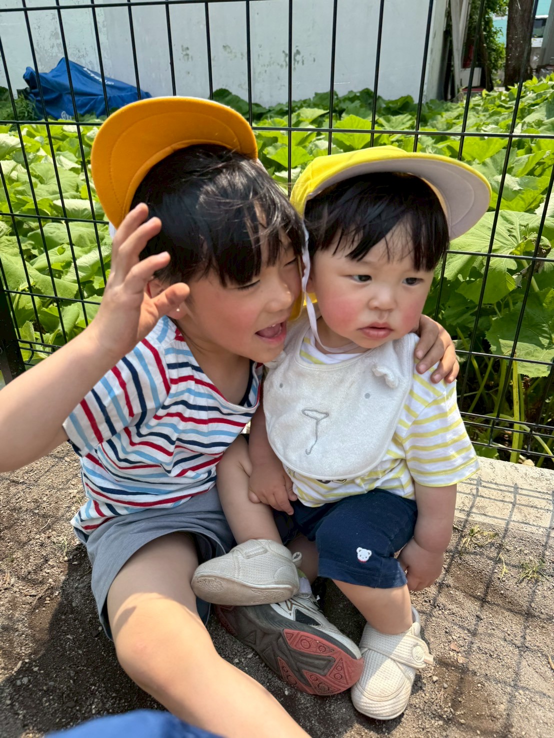 お友だちと顔を見合わせて