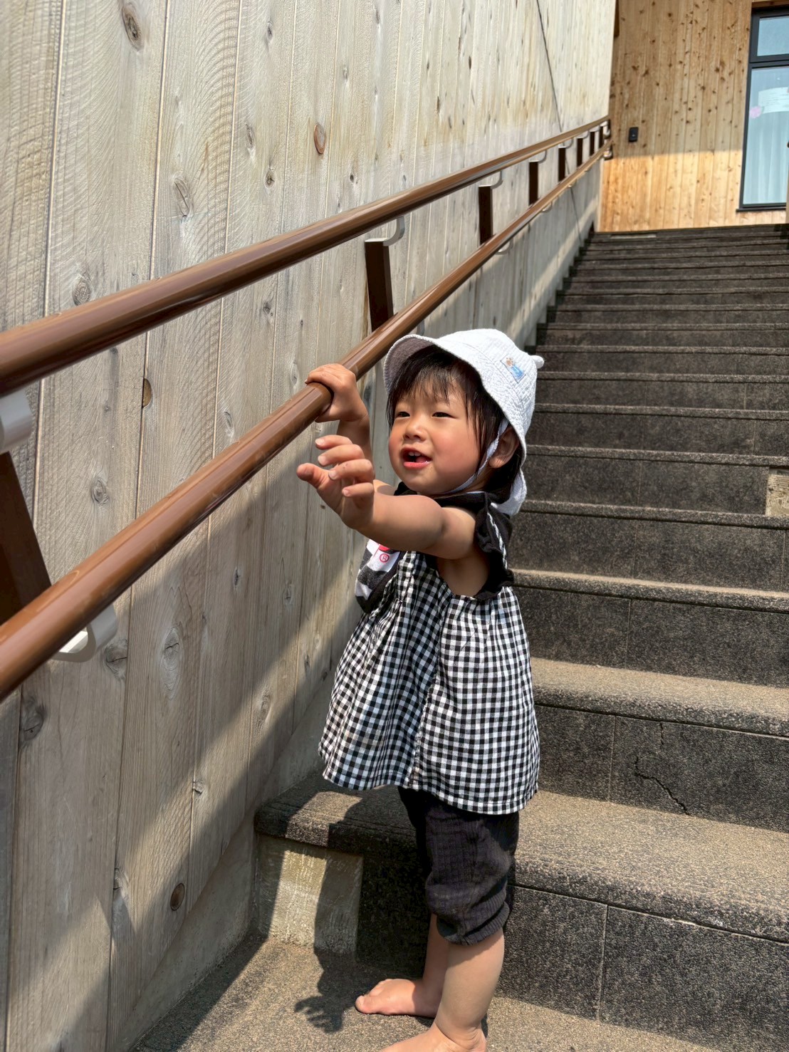 先生と階段を登りました