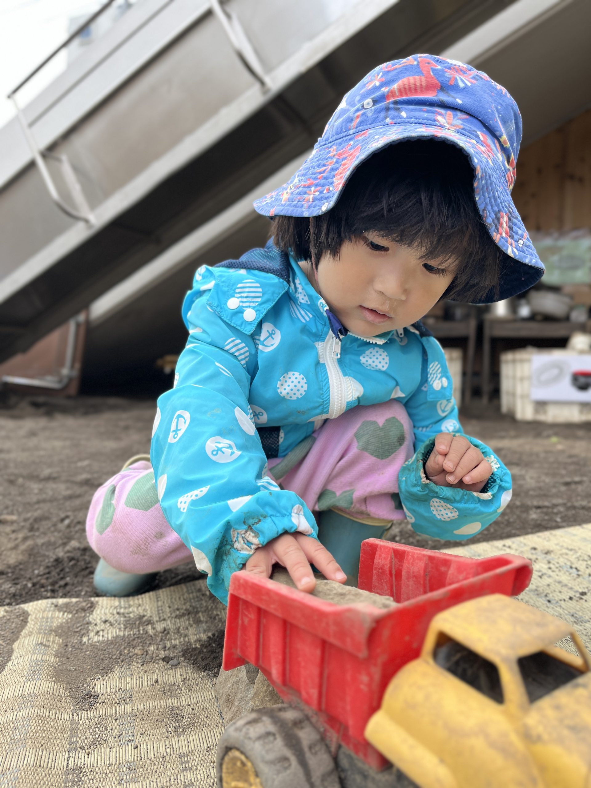 ダンプカーに石を積む