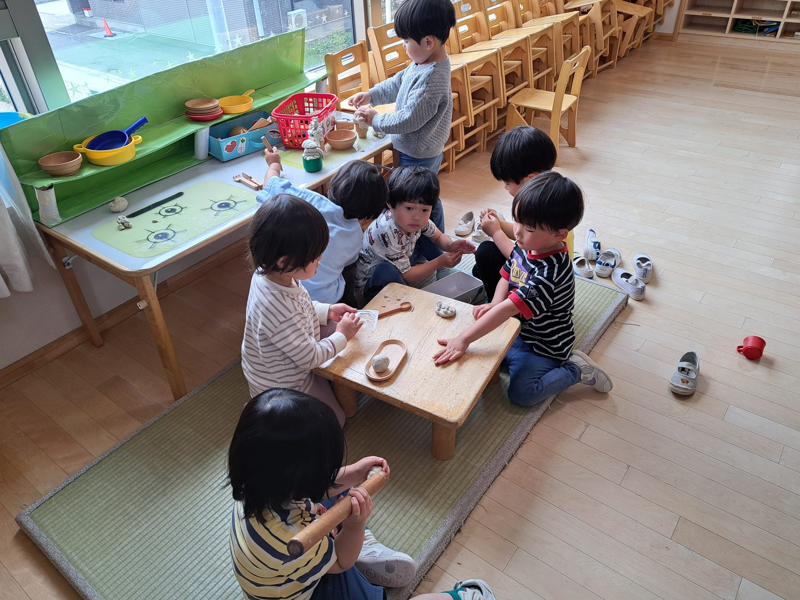 粘土もあって、お部屋でみんなでご馳走作りです♪