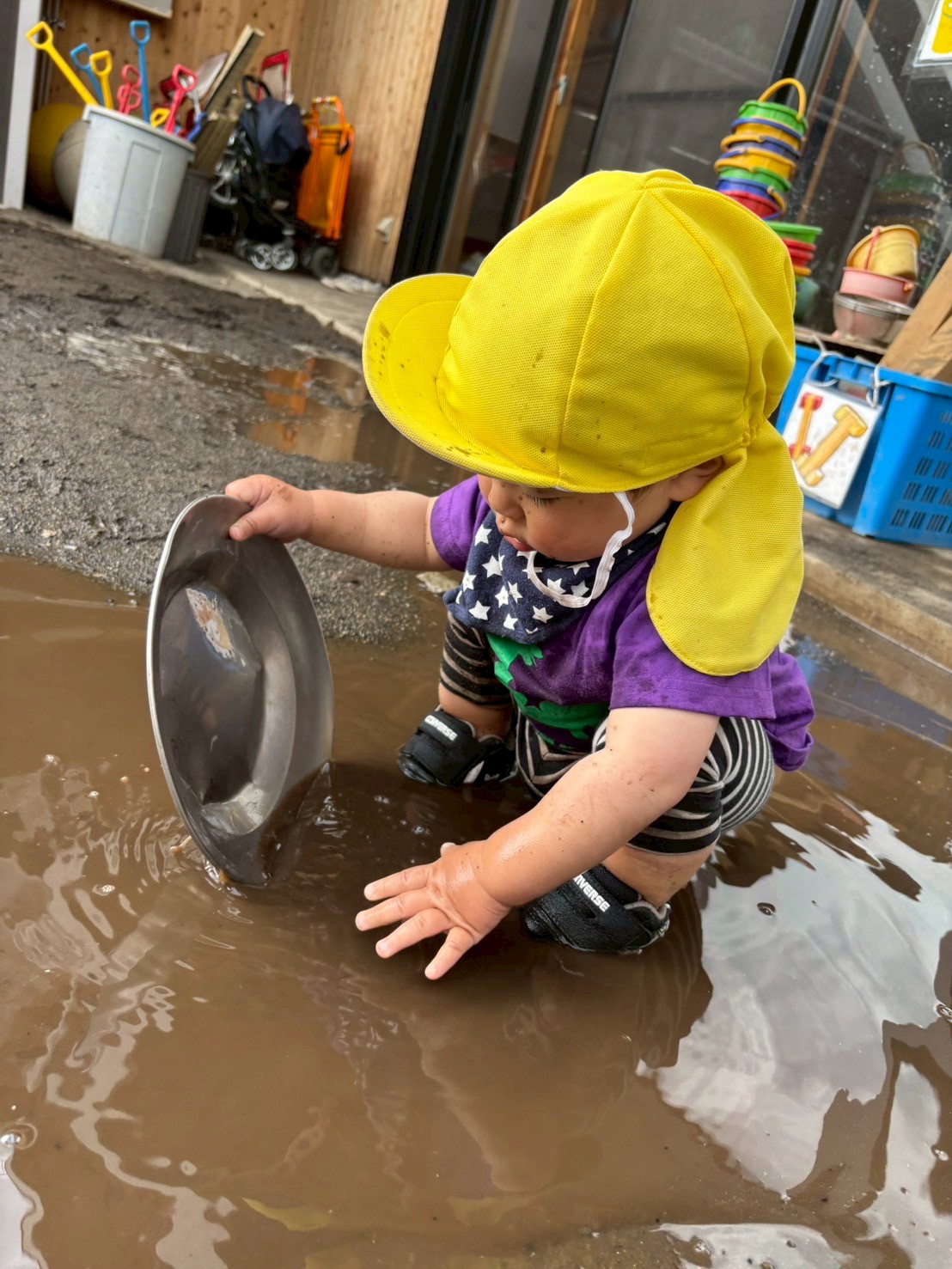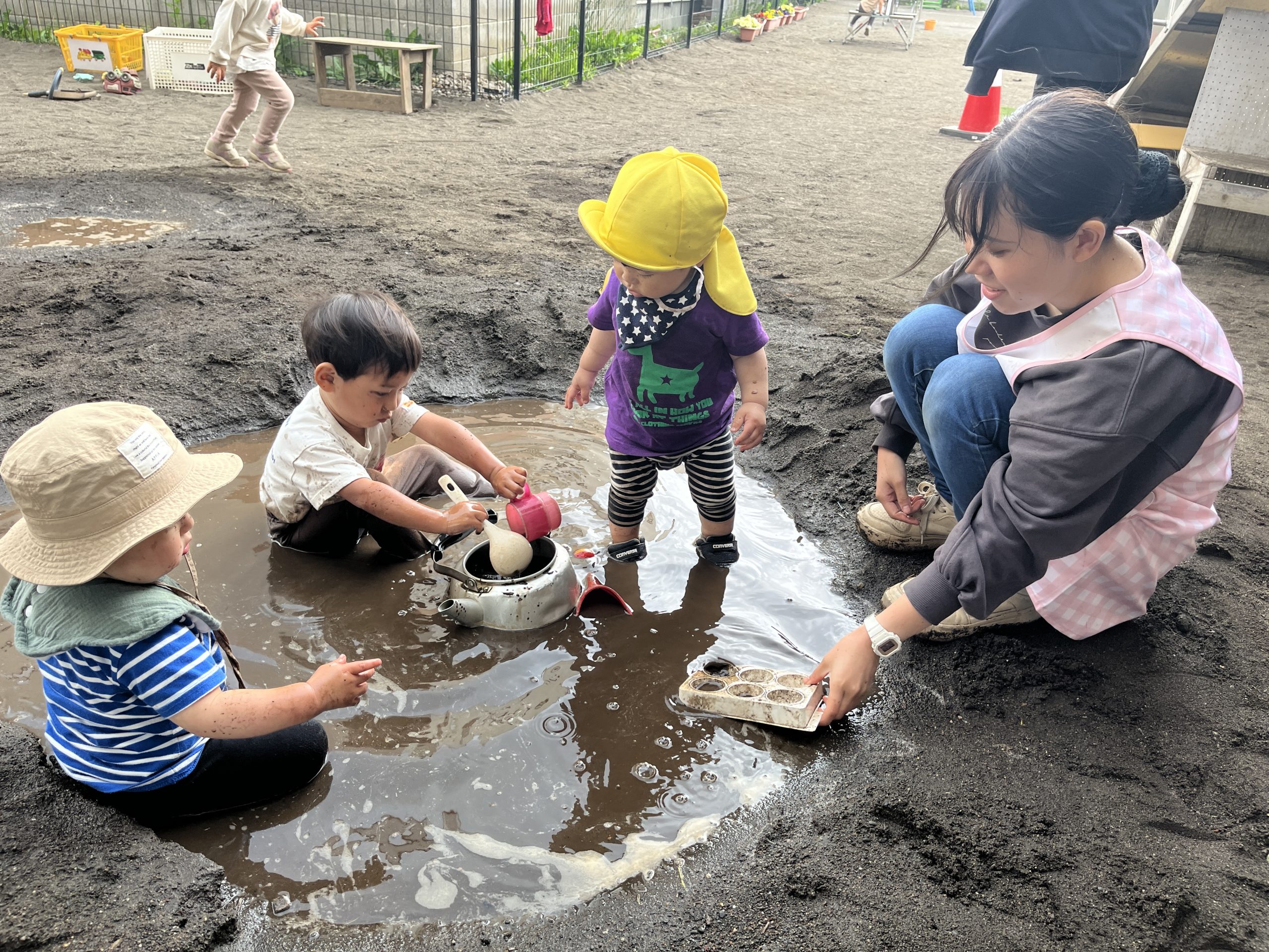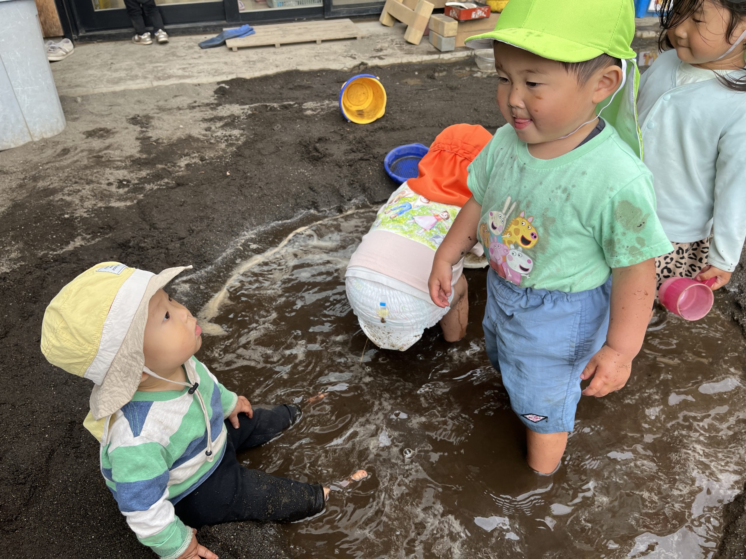 初めて泥遊びをしたお友だち。