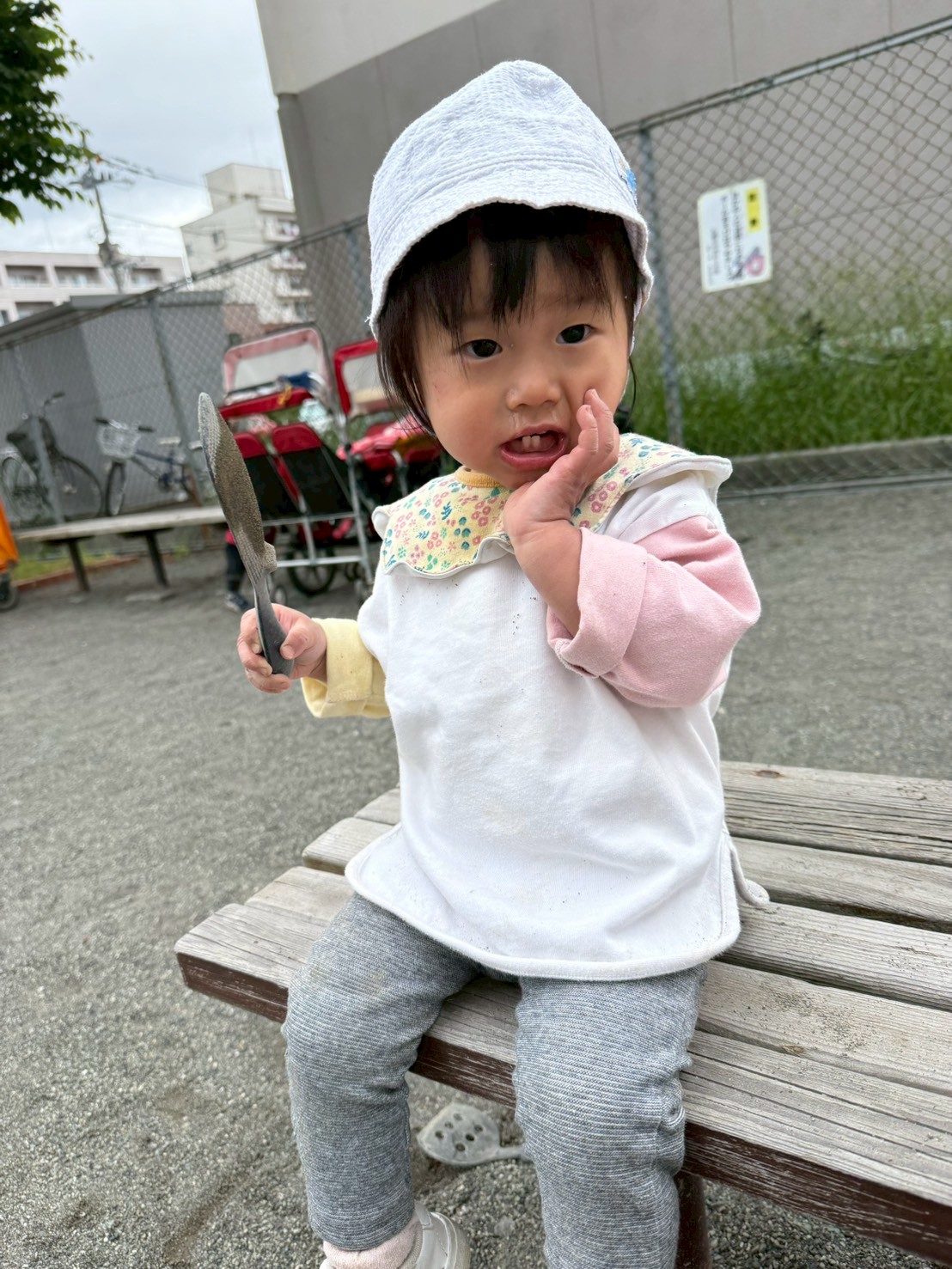 砂場の網の上で・・・♩