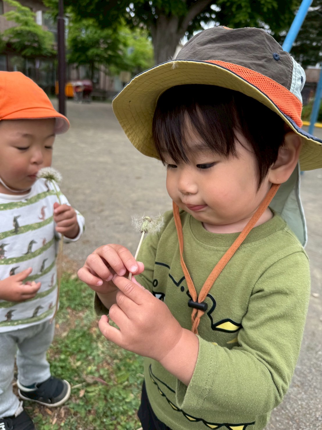 綿毛を触ってみたつくし組さん