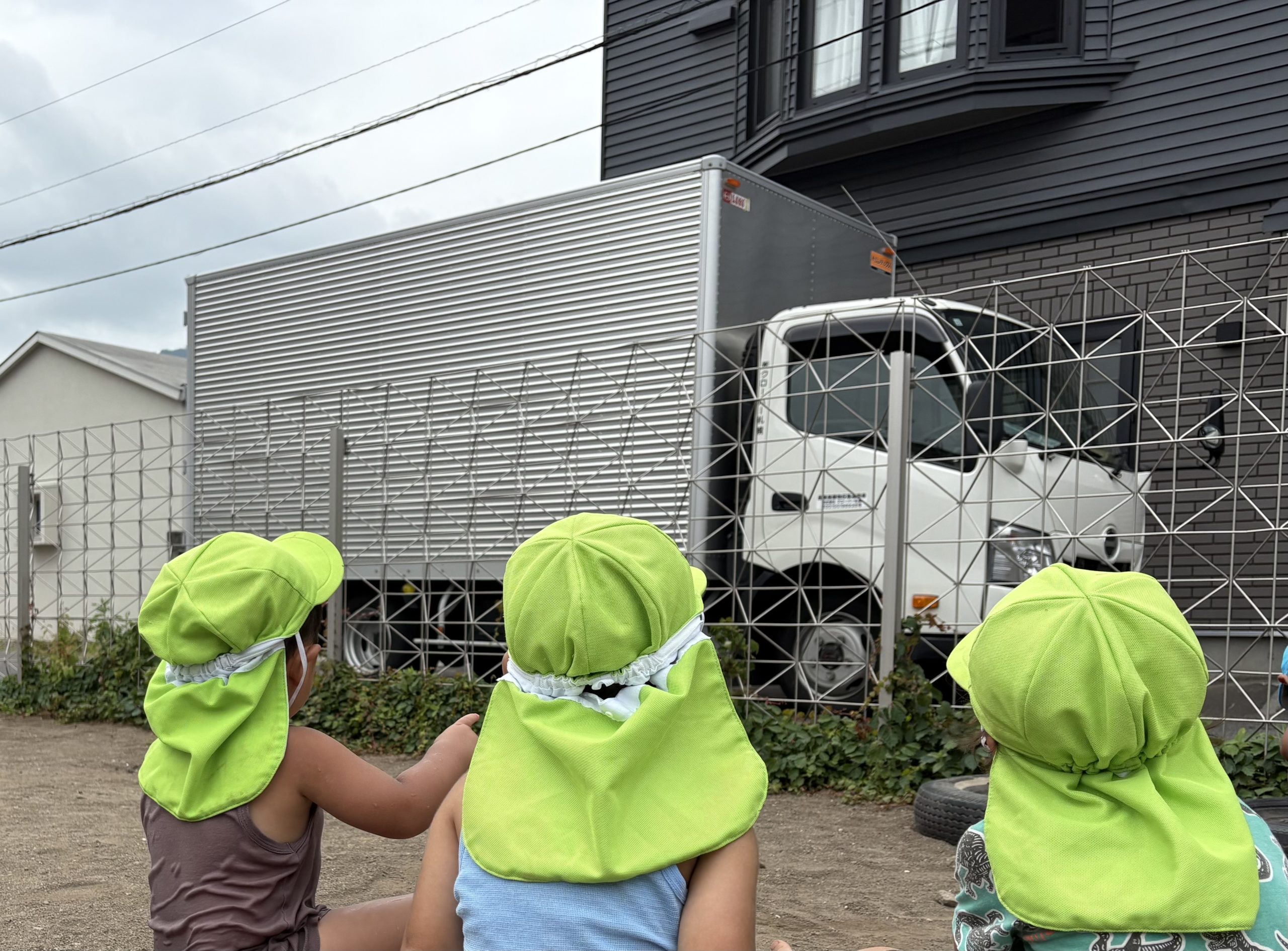 トラックを見つめる3人👦🏻