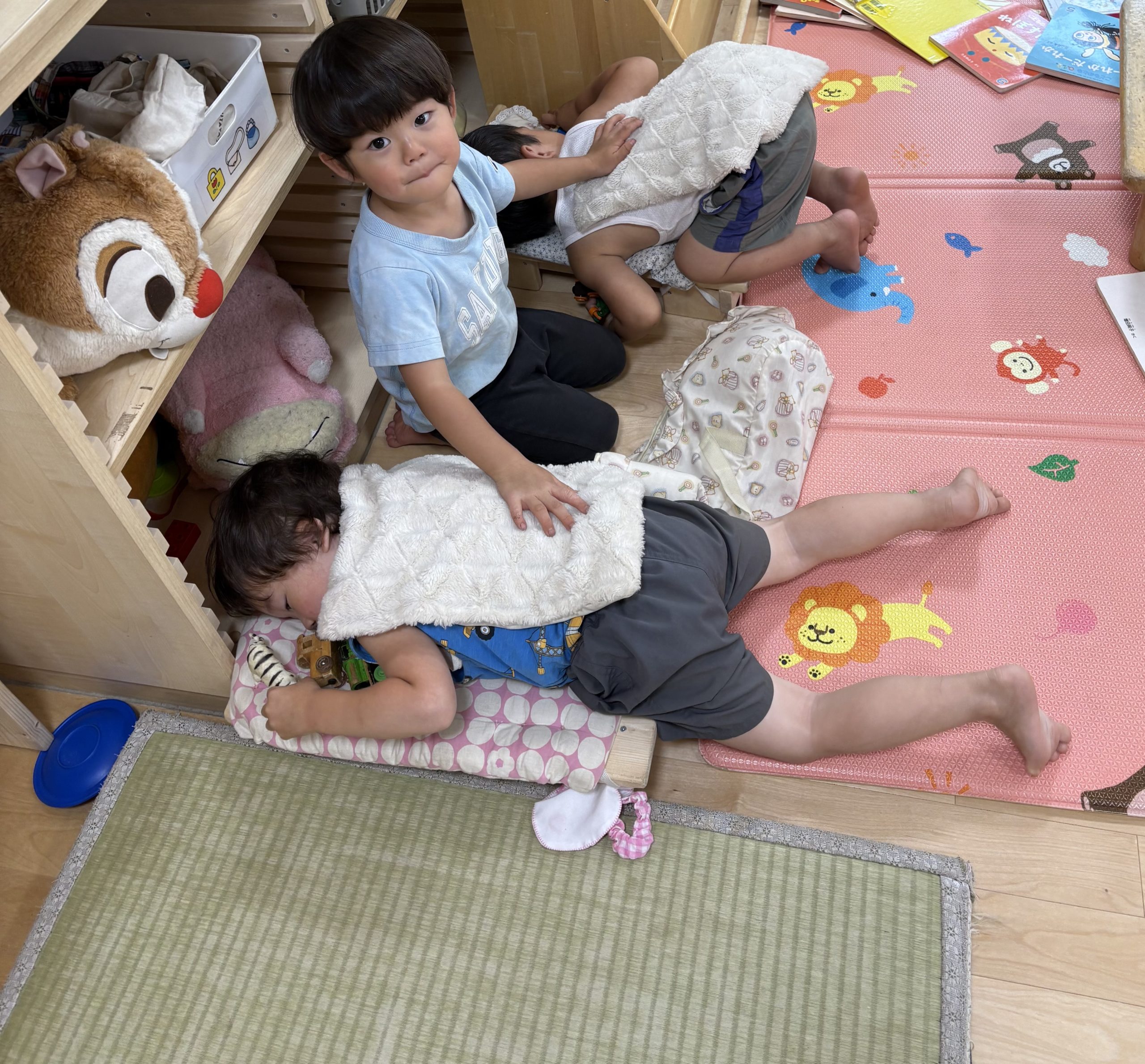 お昼寝しているにじ・たんぽぽさんを