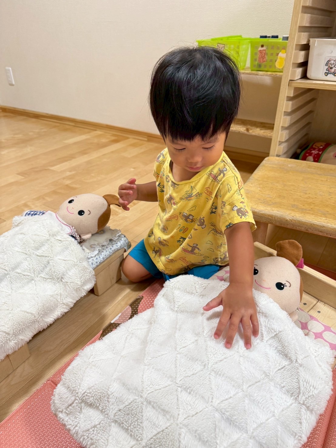 お昼寝でみんなより少し目が覚めたつくし組さん