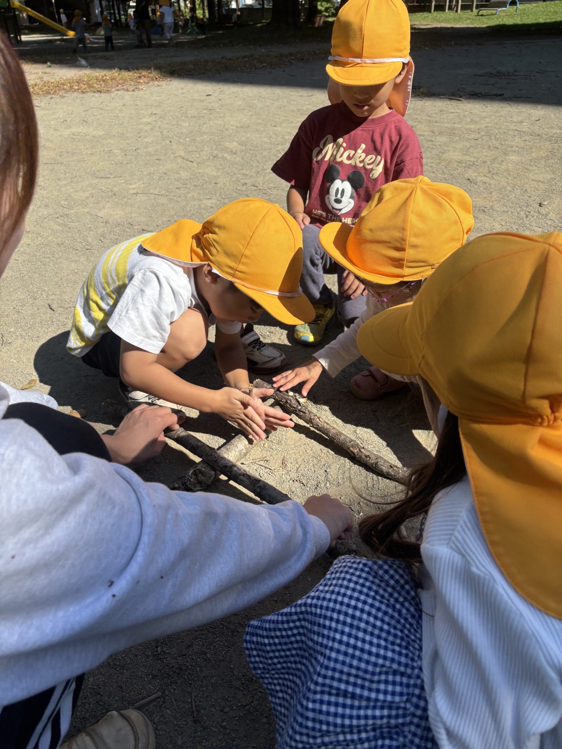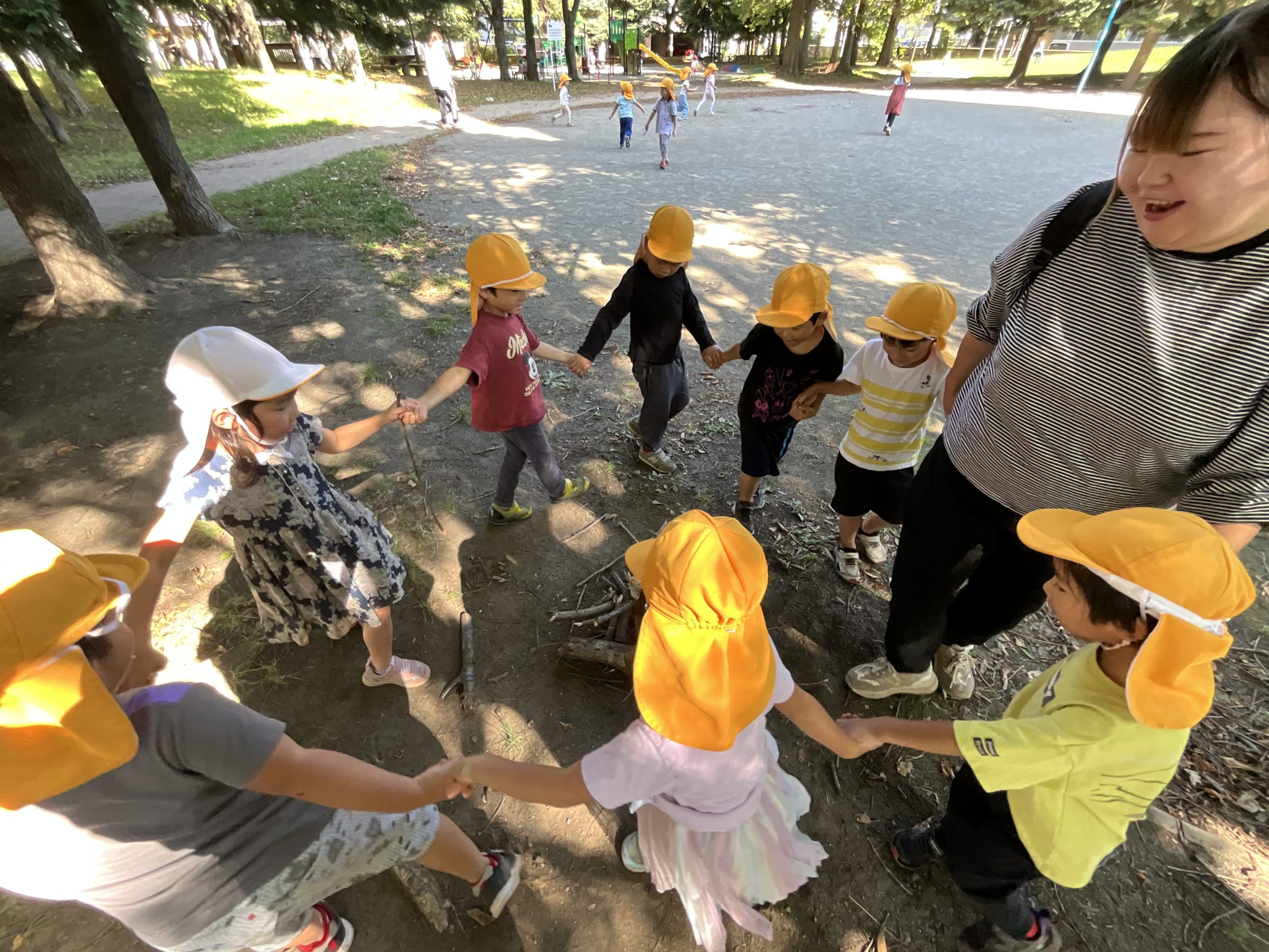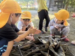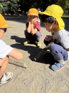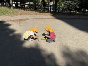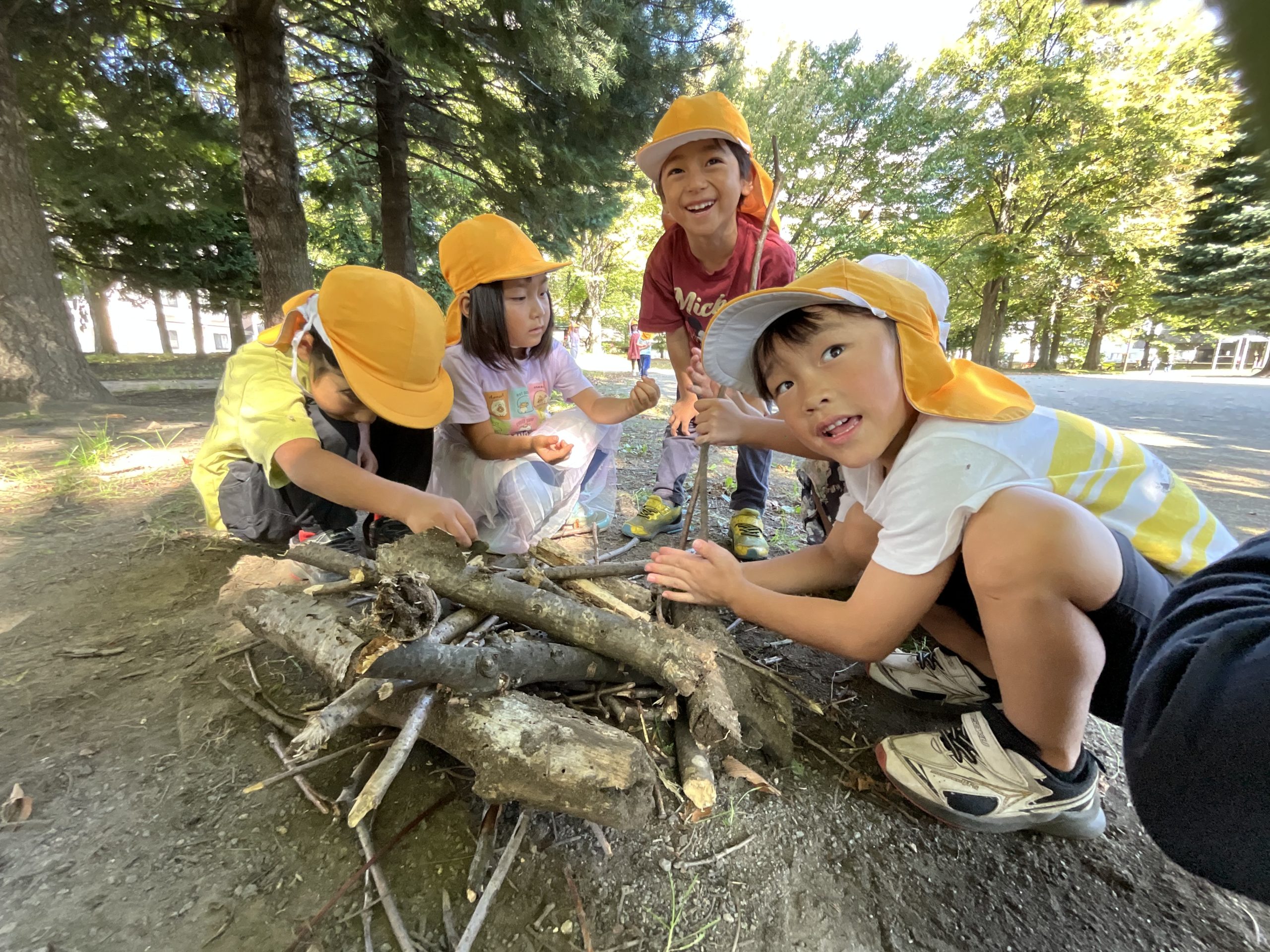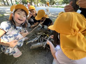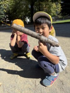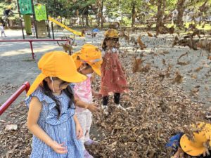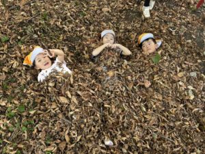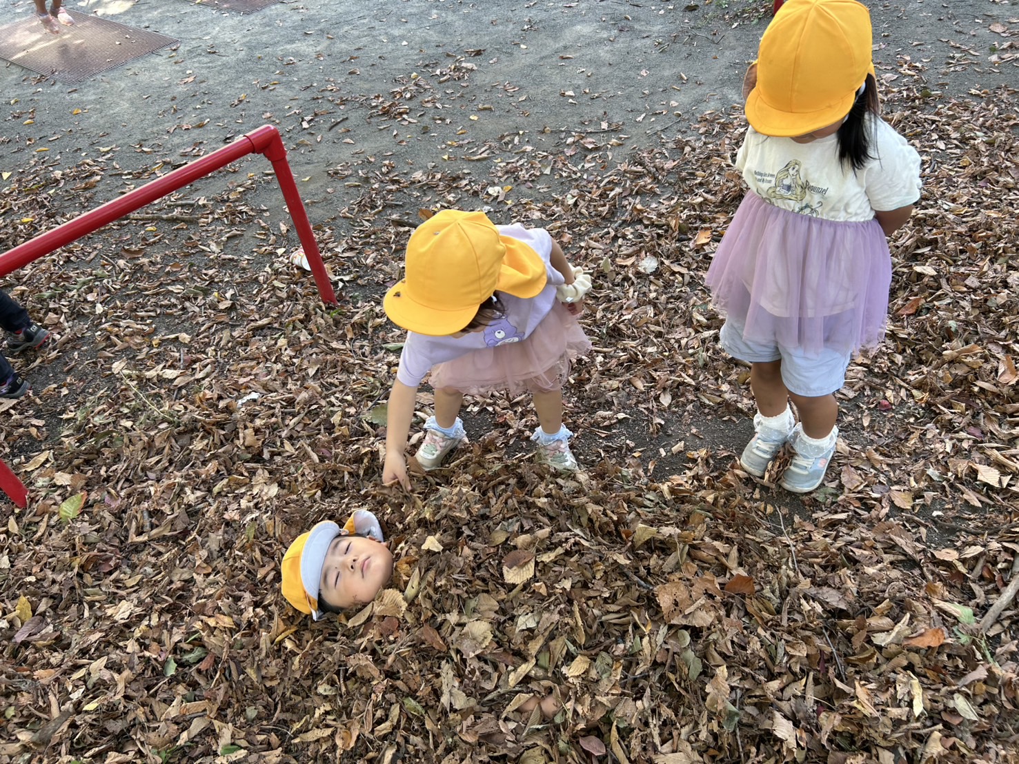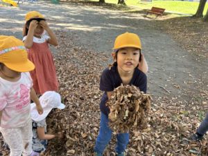落ち葉を見ると集めて、「バサーッ」としたくなるの子どもたち😊
