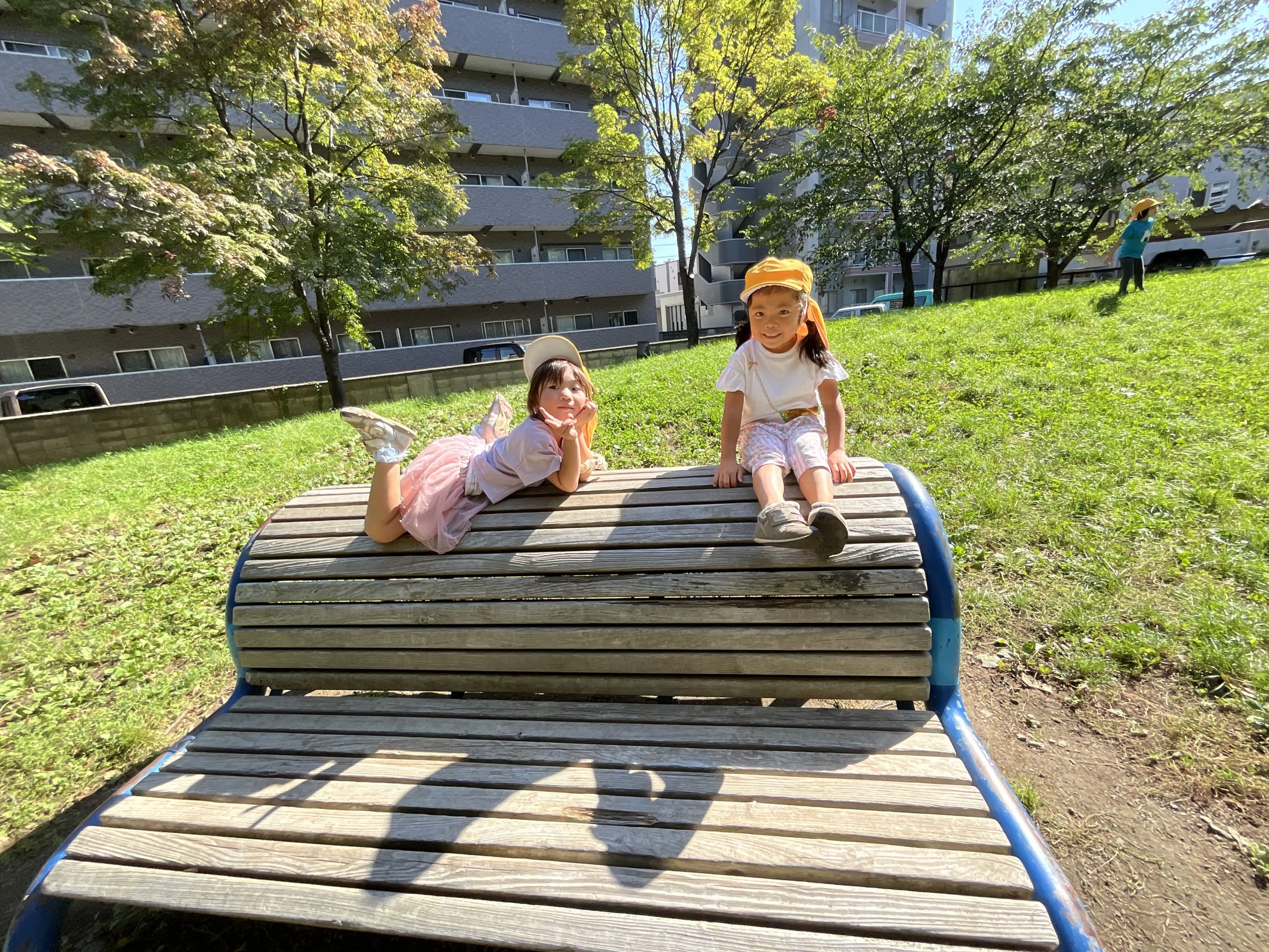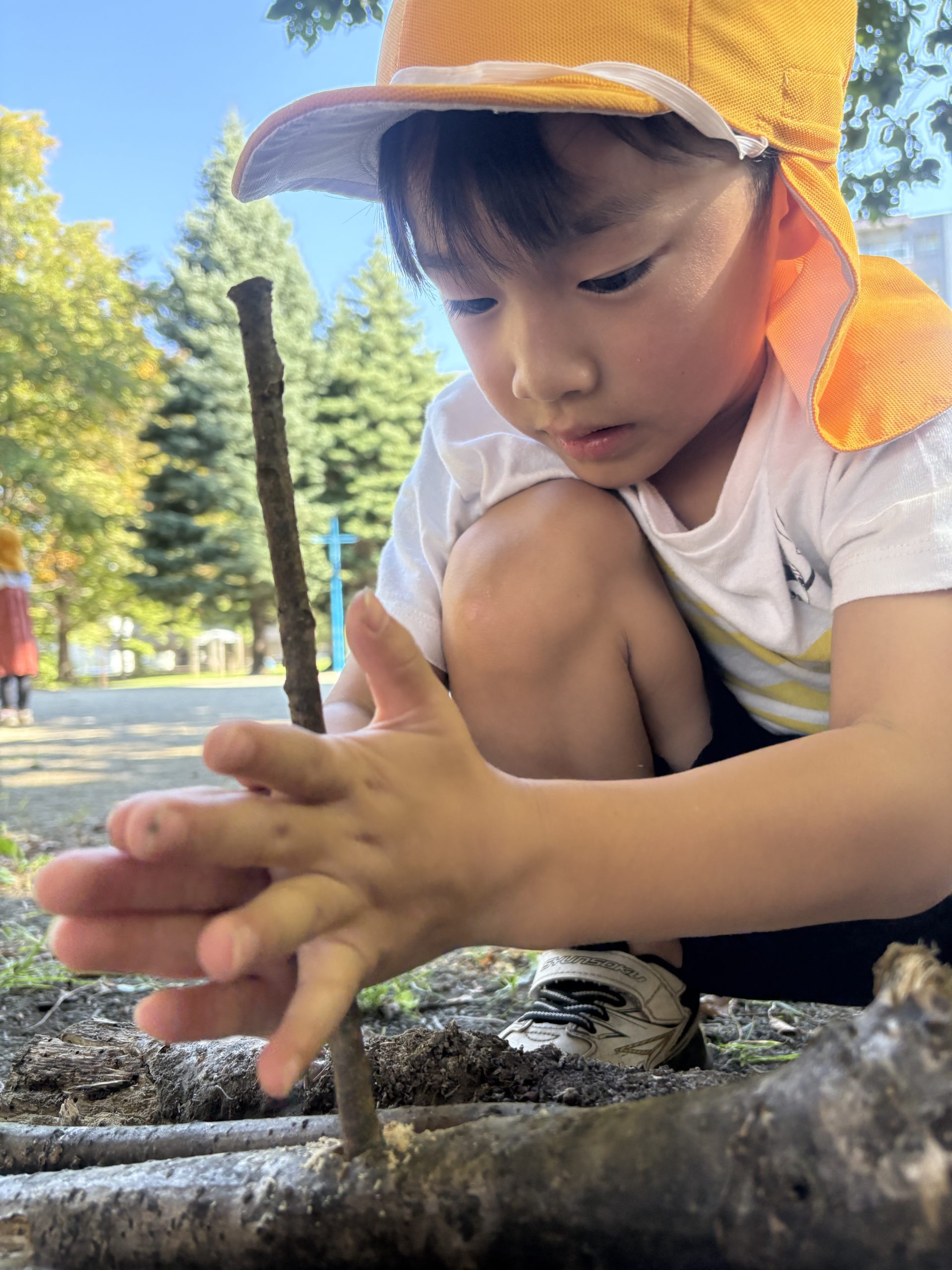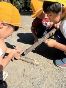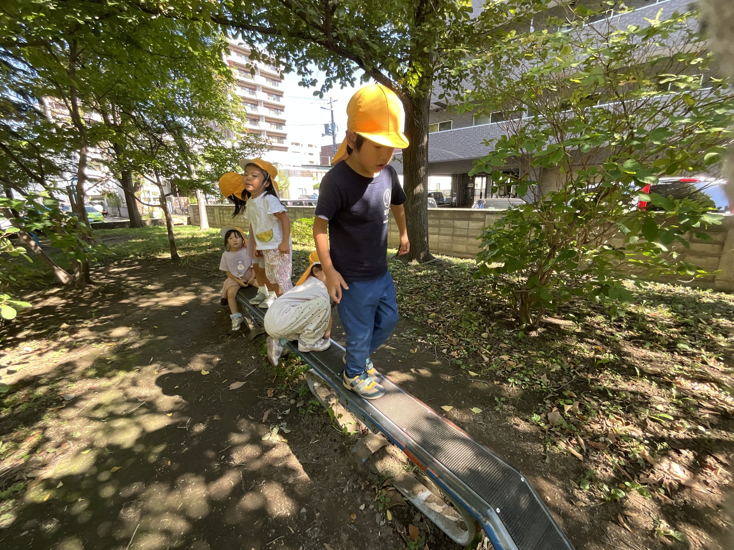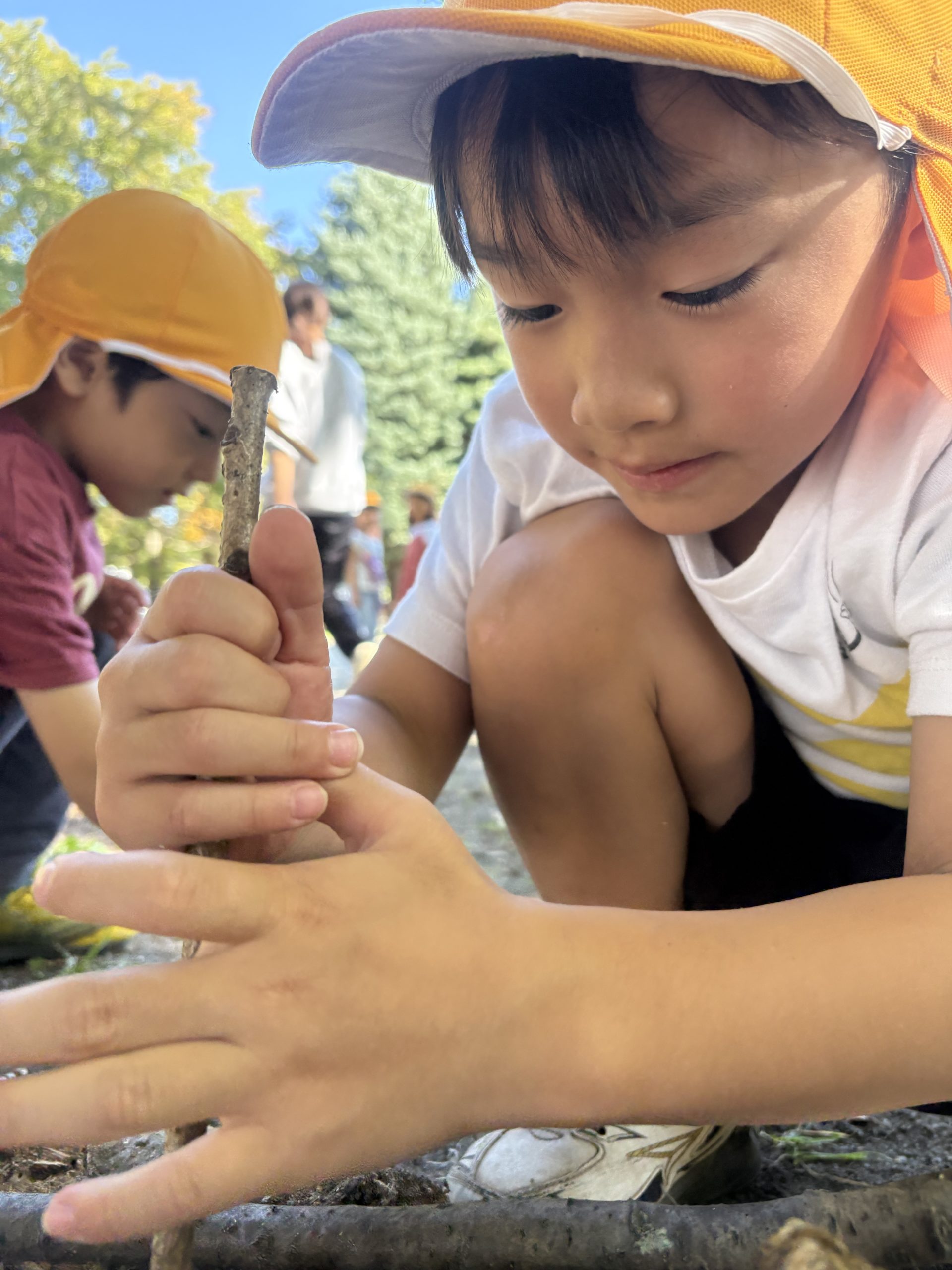 落ち葉を見ると集めて、「バサーッ」としたくなるの子どもたち😊