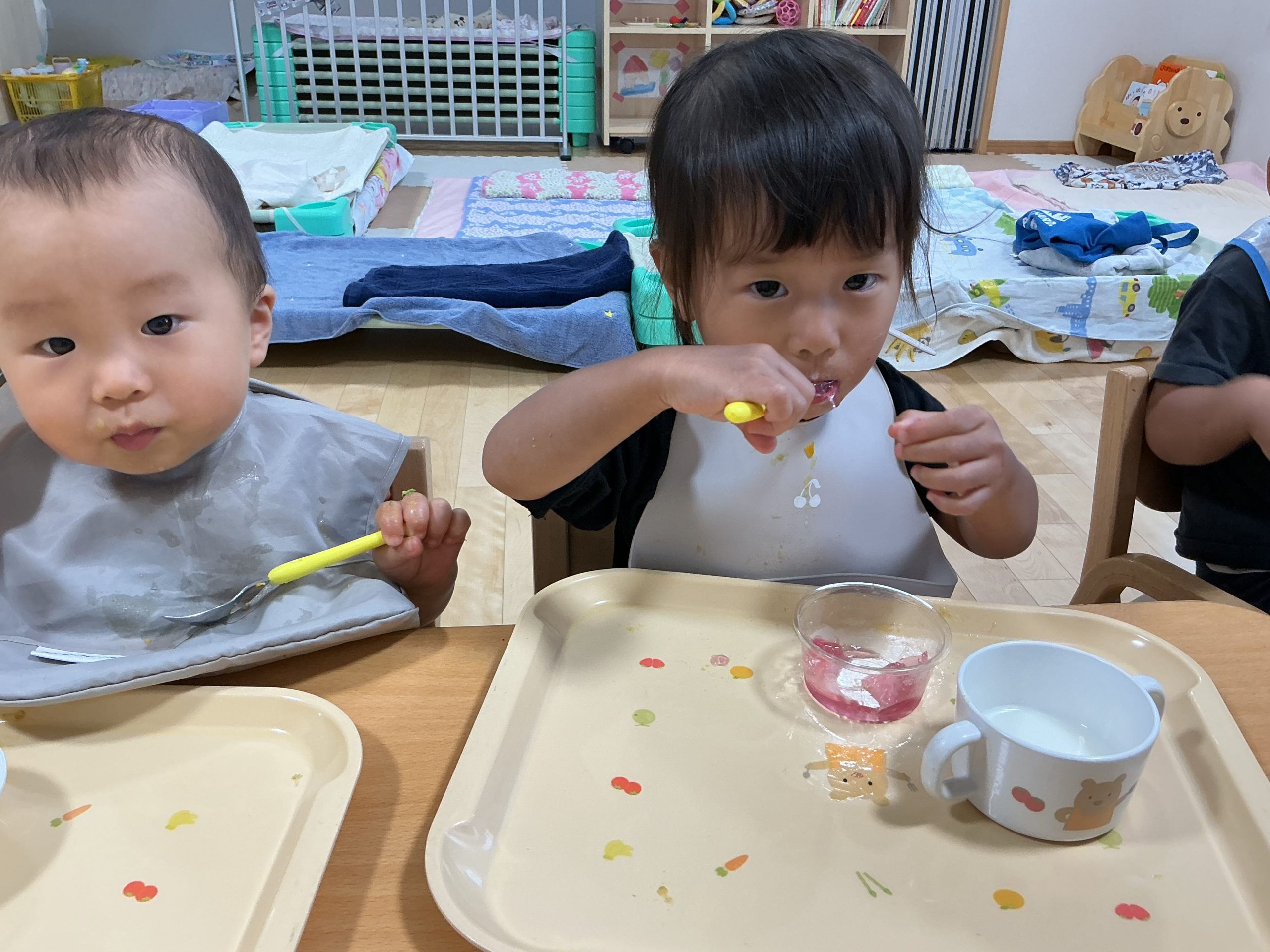 気になるようで、保育者のそばで見ていました