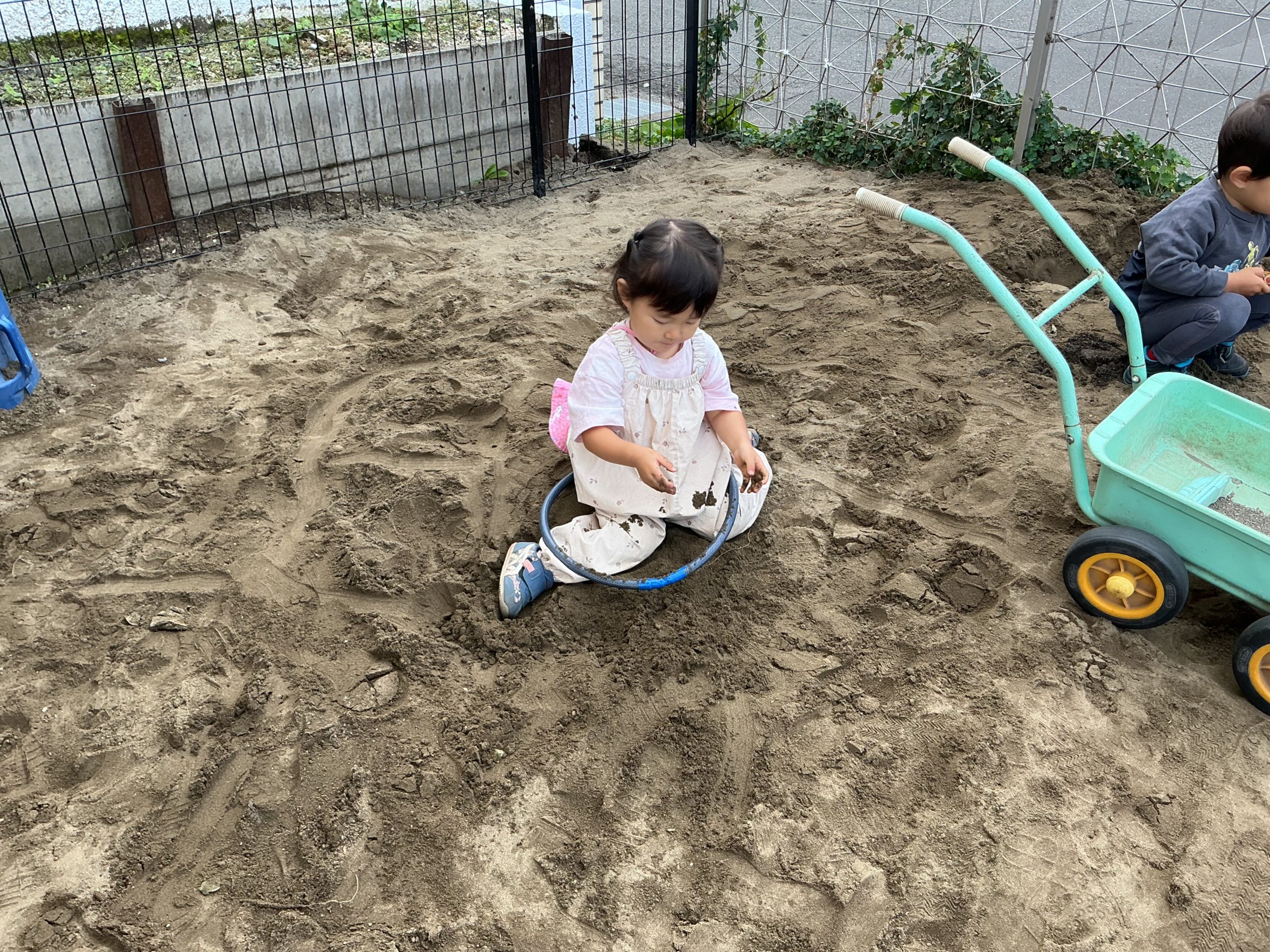 砂場に大きな山ができていて