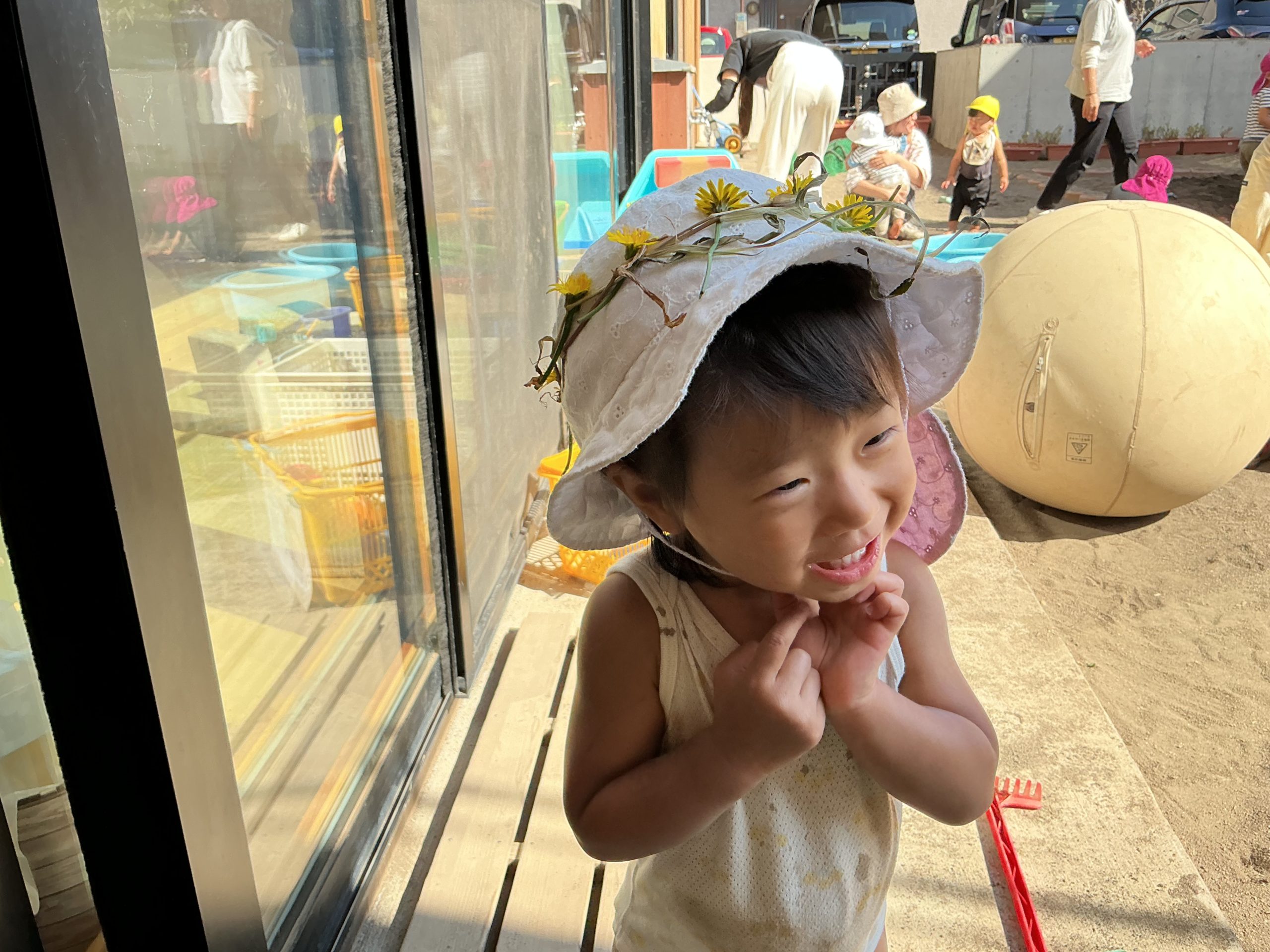 保育者が作った花冠を頭に乗せて💐