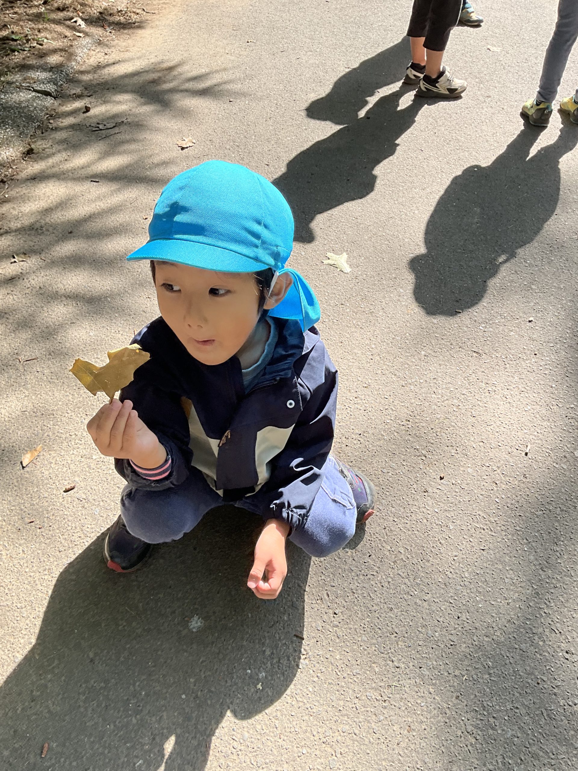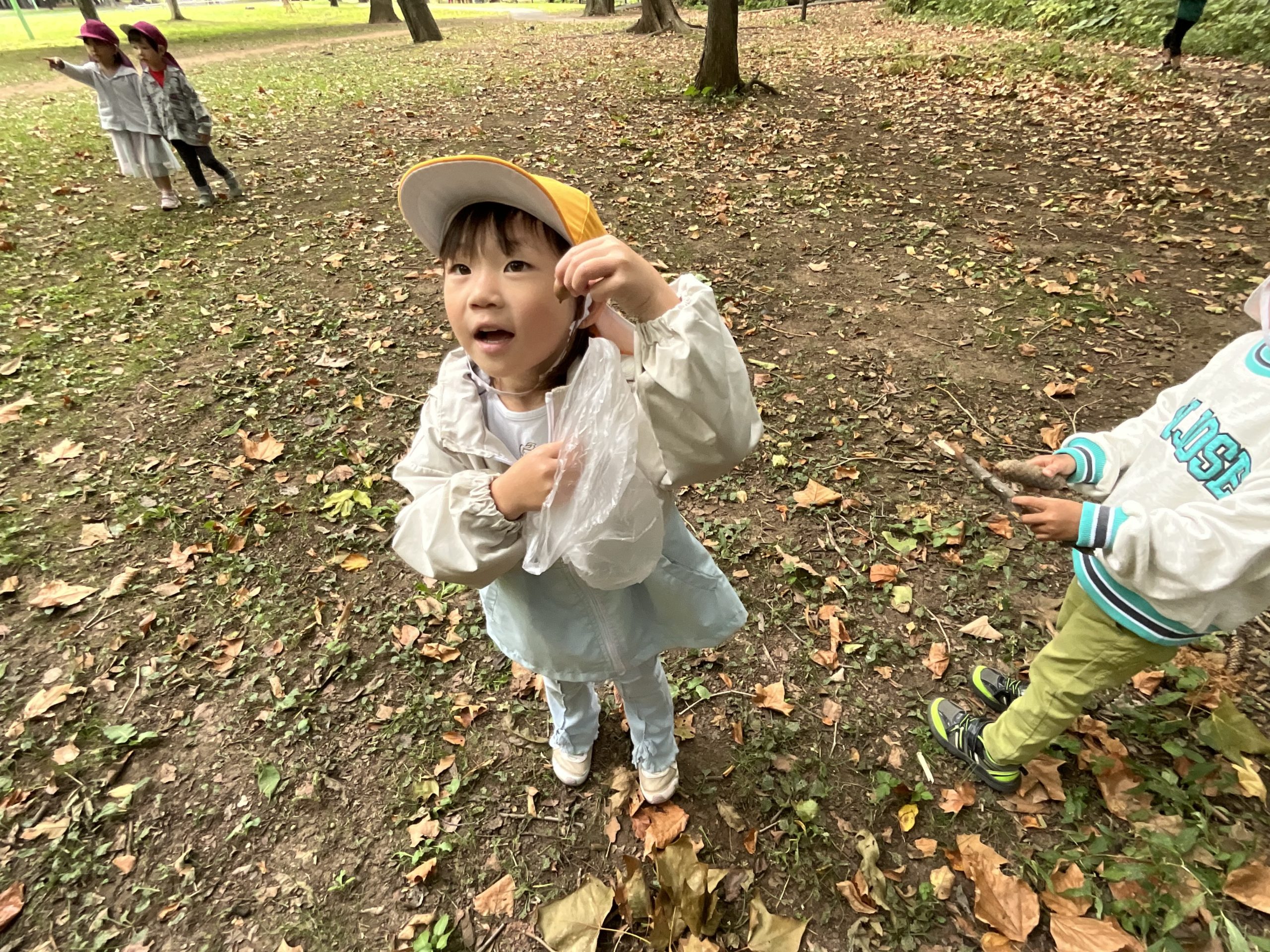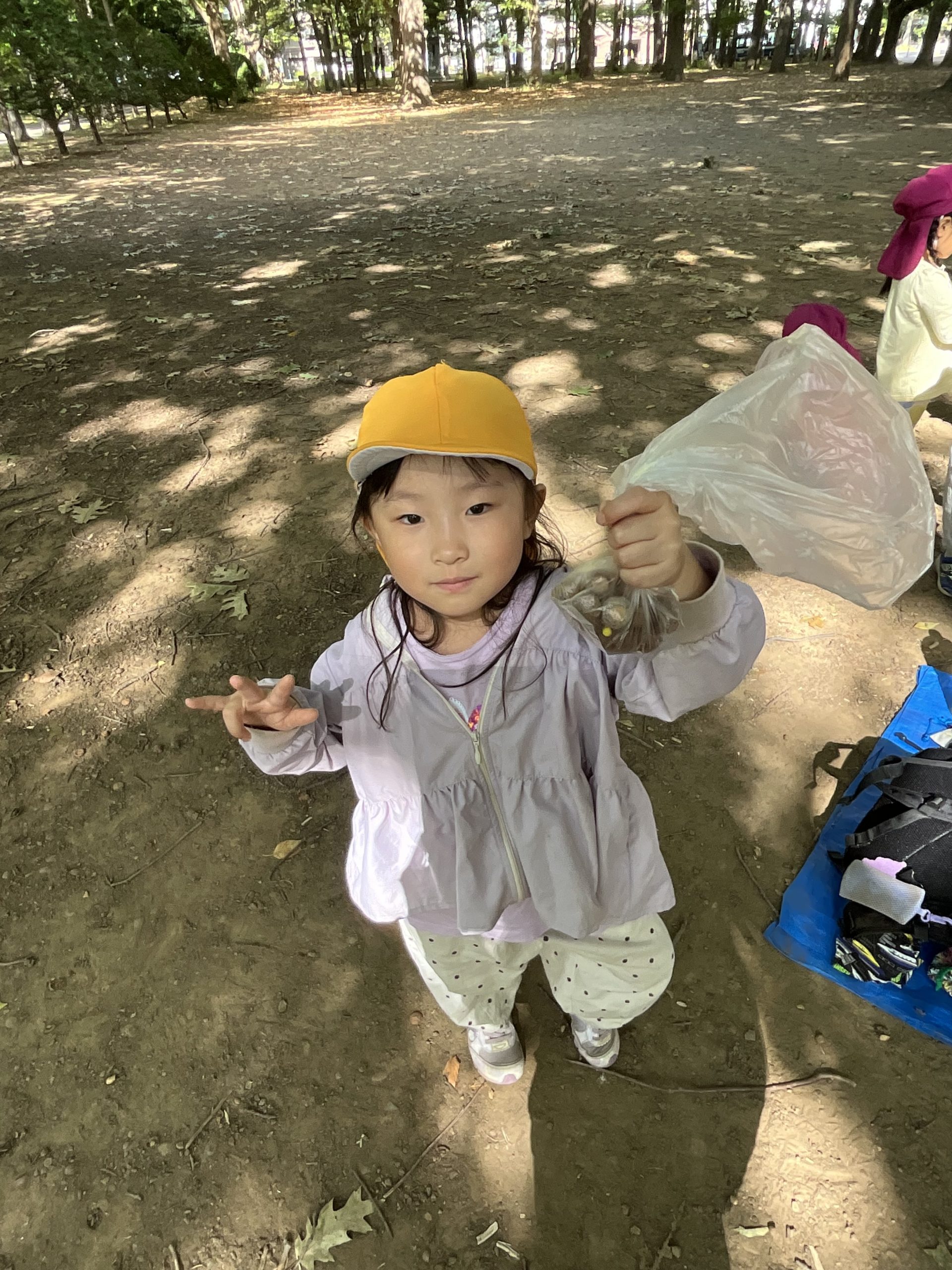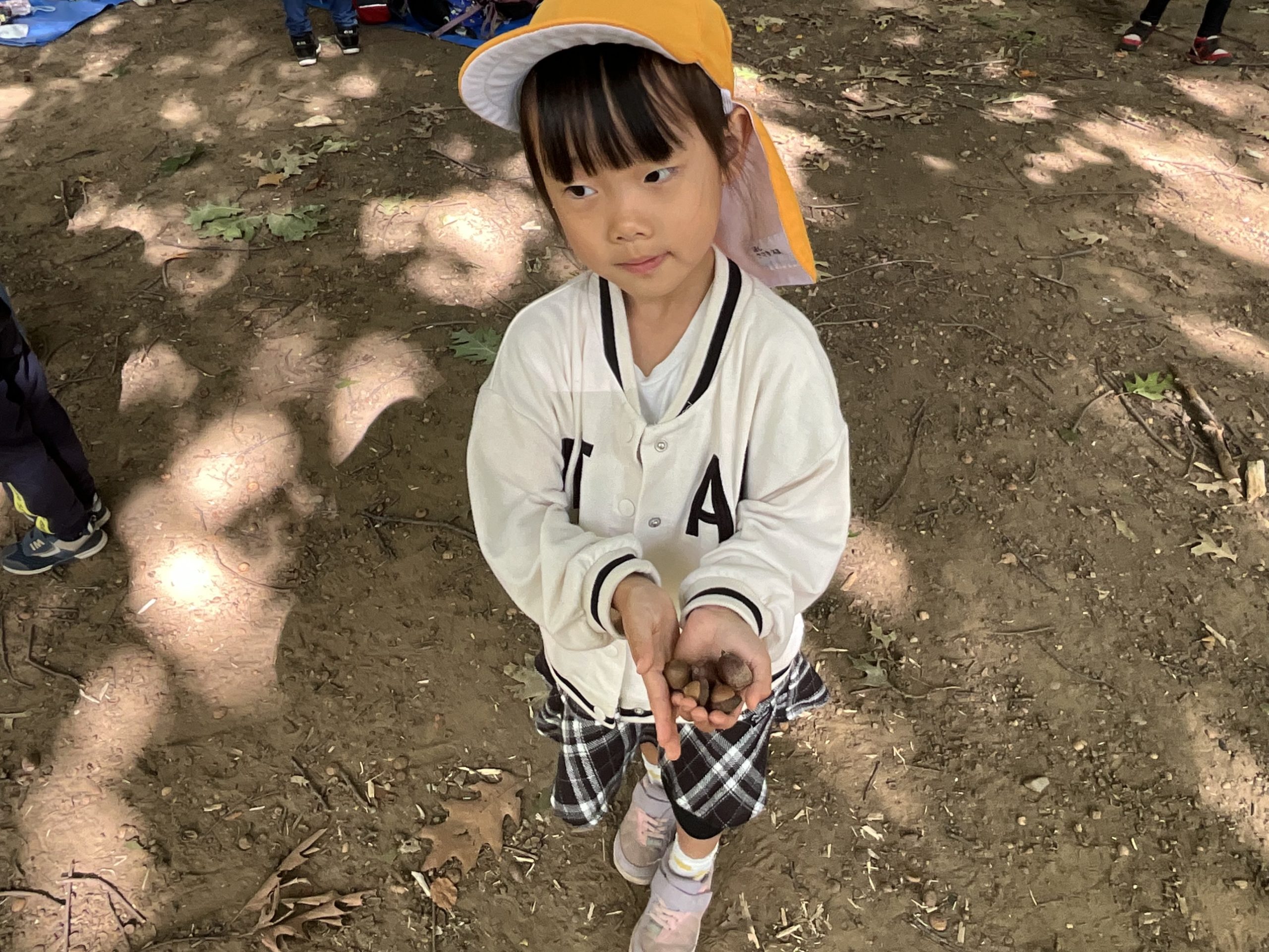 ドングリがたくさん落ちていて無我夢中で集める子もいました