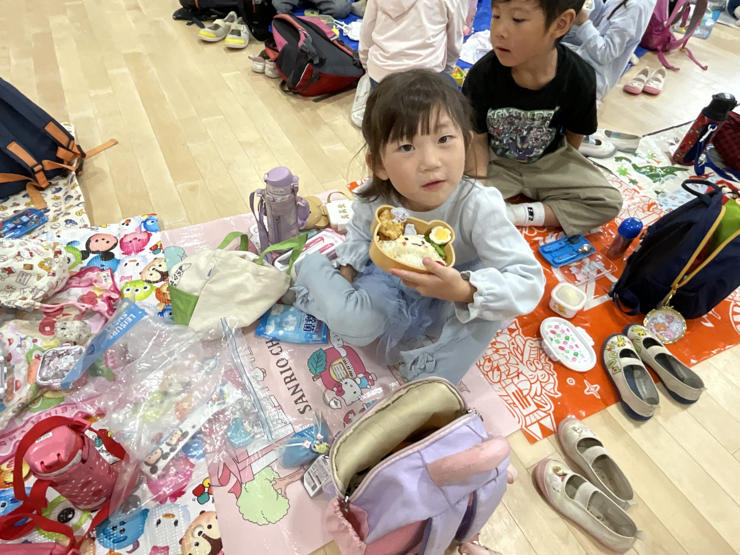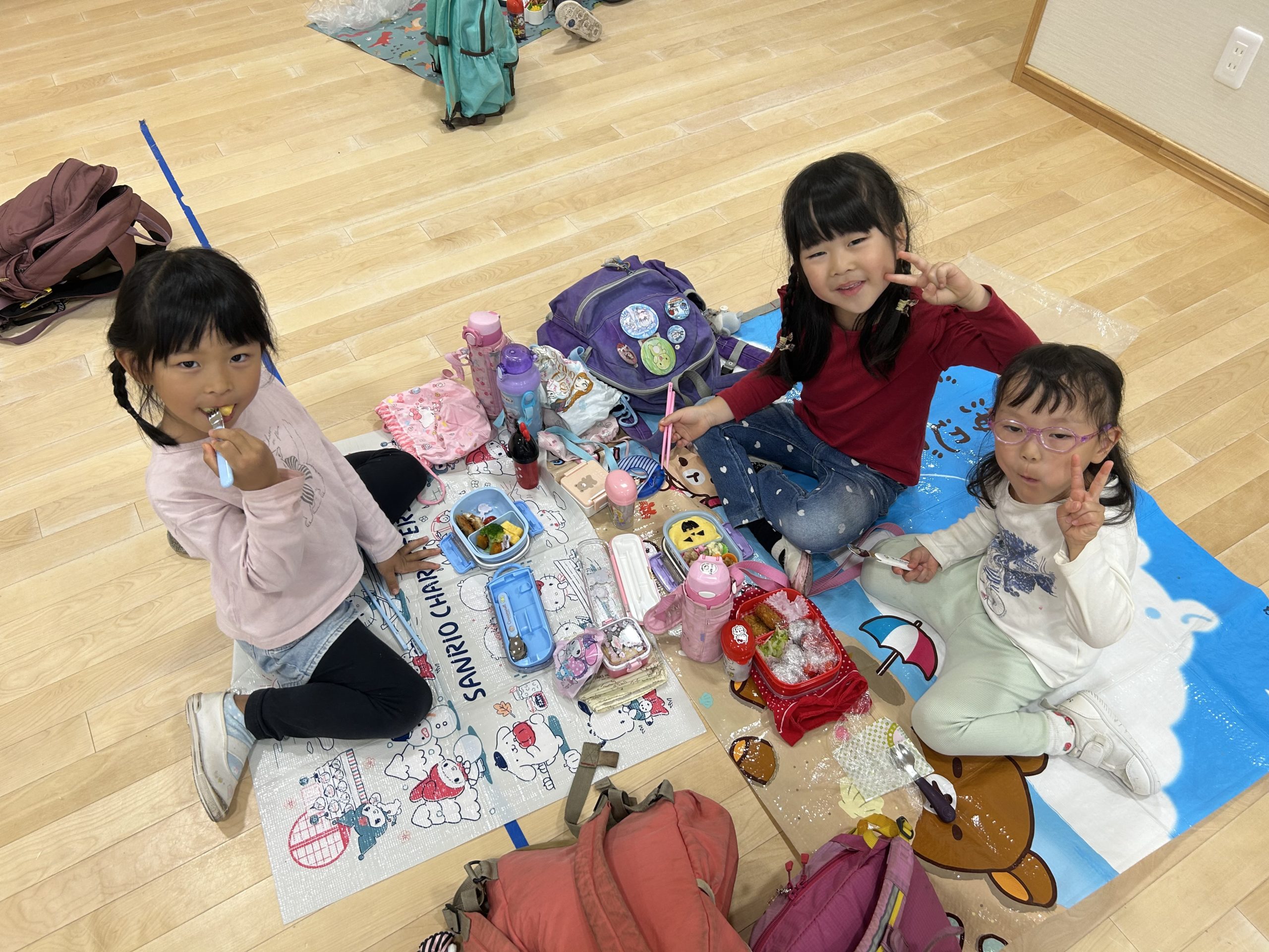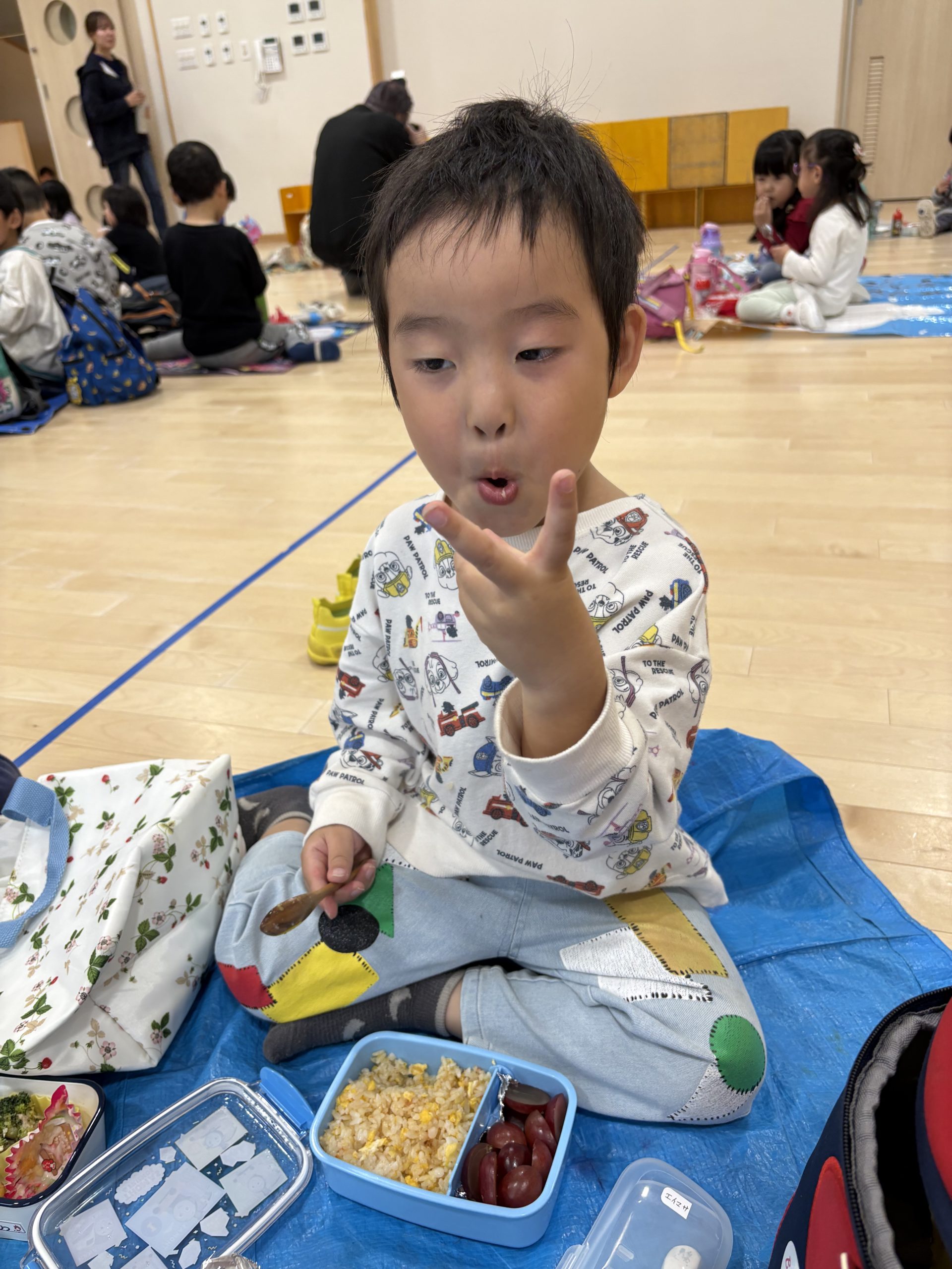お腹を空かせて幼稚園に戻ったみんなは、楽しみにしていたお弁当を食べました🎶