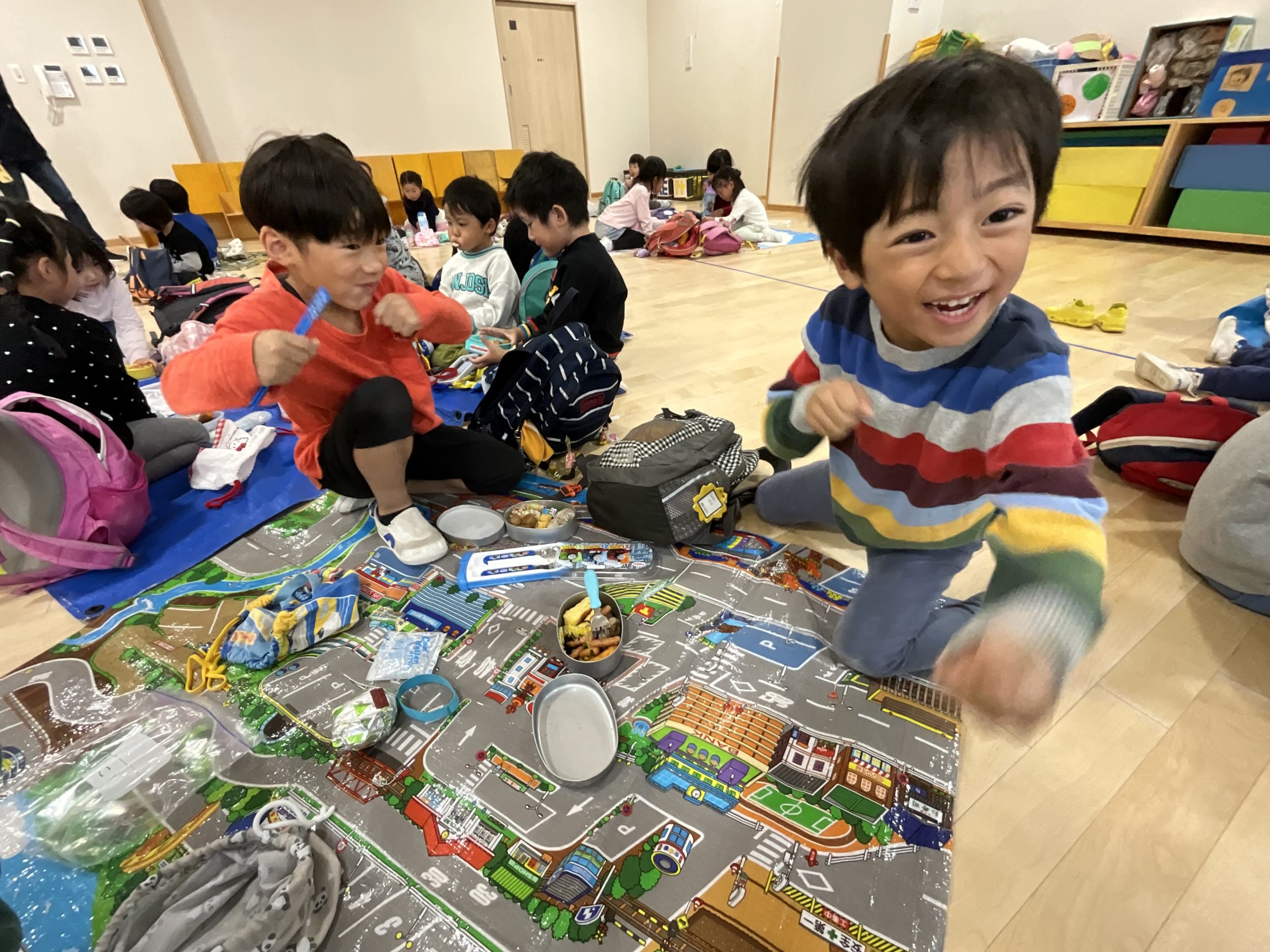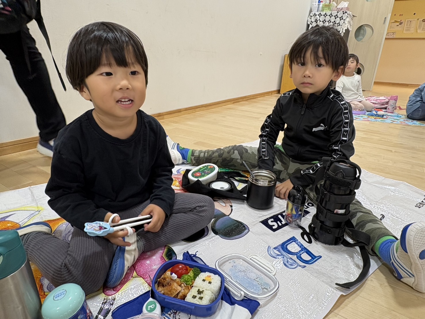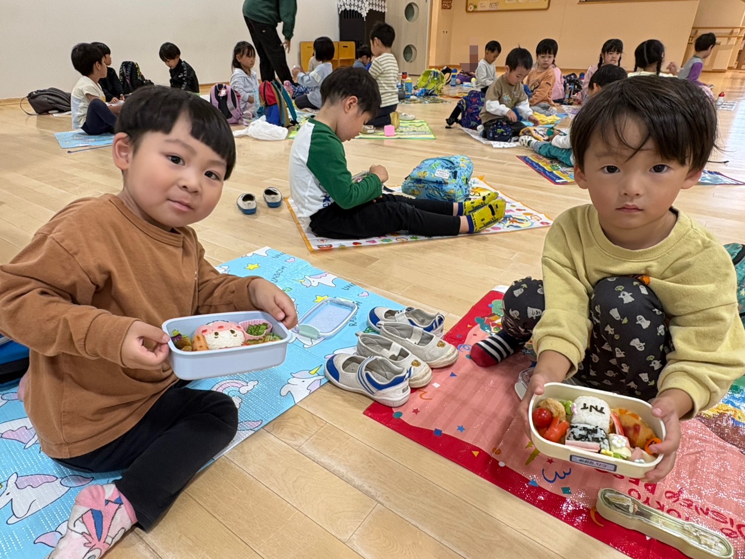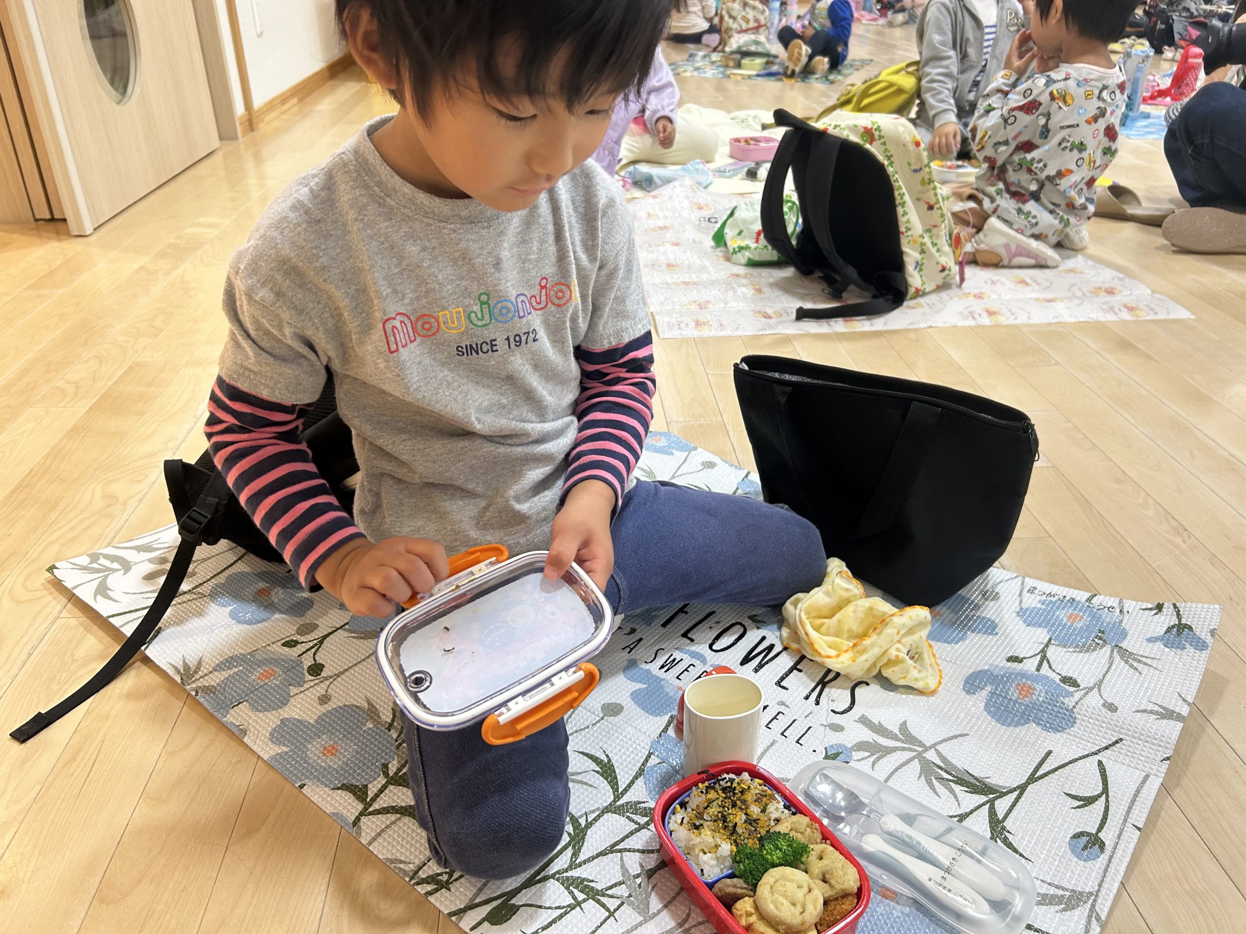 お腹を空かせて幼稚園に戻ったみんなは、楽しみにしていたお弁当を食べました🎶