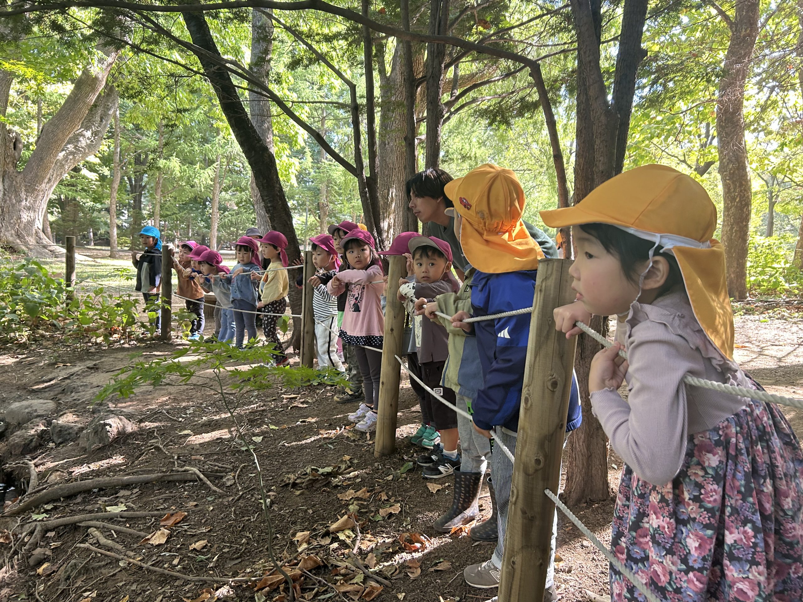 はと組さんは、ほし組さんと一緒に手を繋いで円山公園に行きました😊
