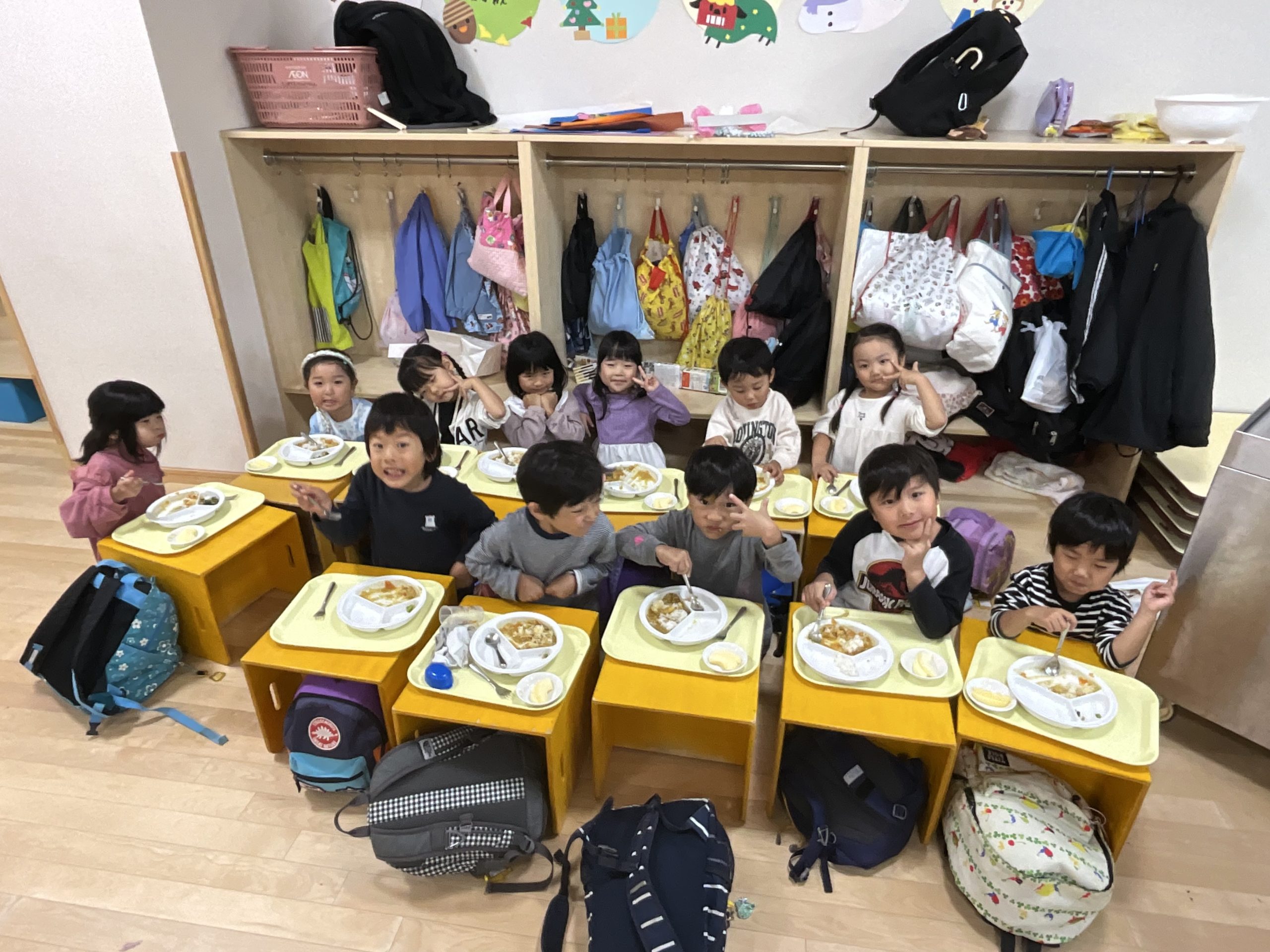 公園を楽しんだ後は幼稚園に戻り、みんなで給食!!