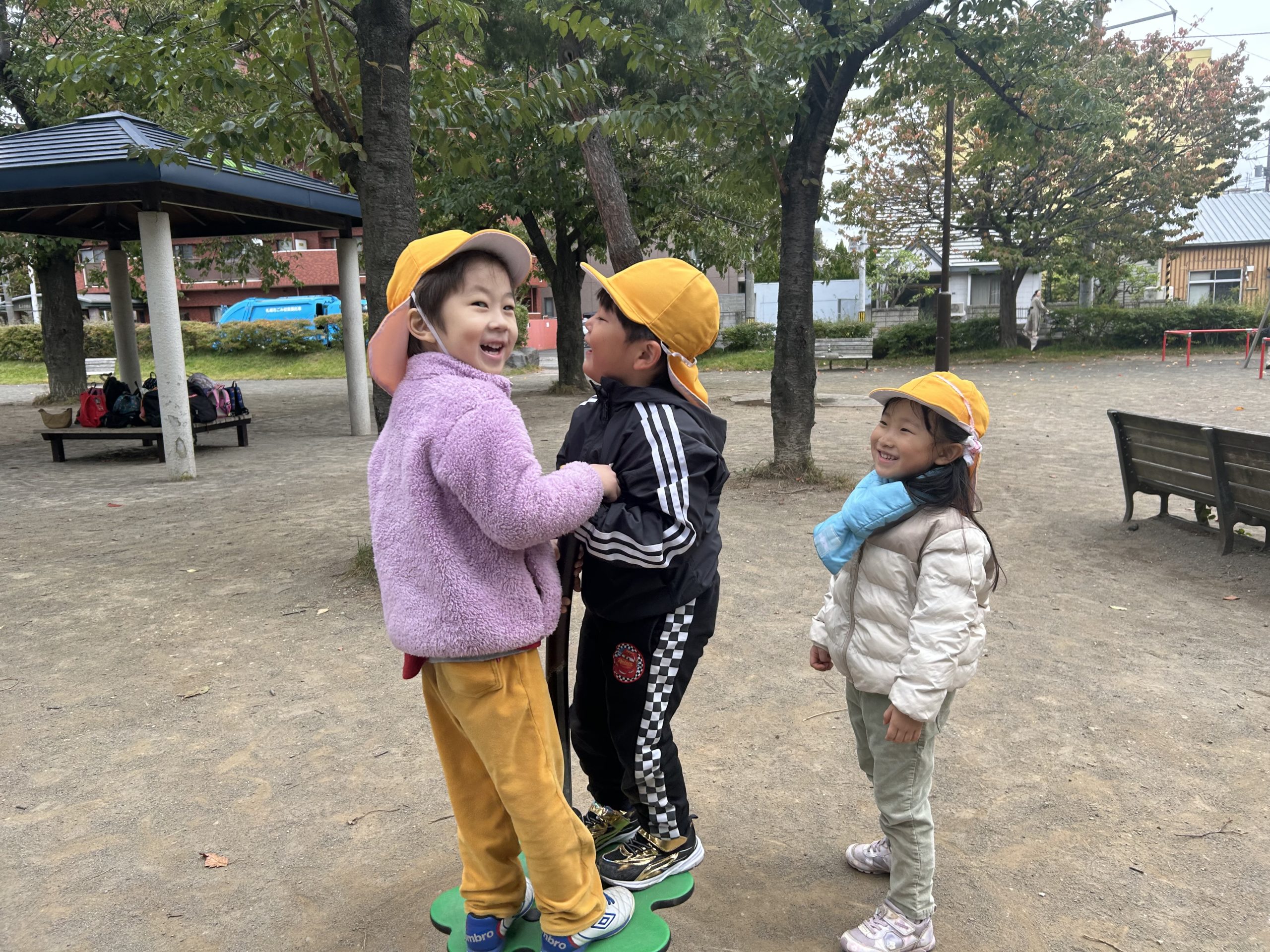 公園に着くと、みんなは初めての遊具に興味津々👀✨
