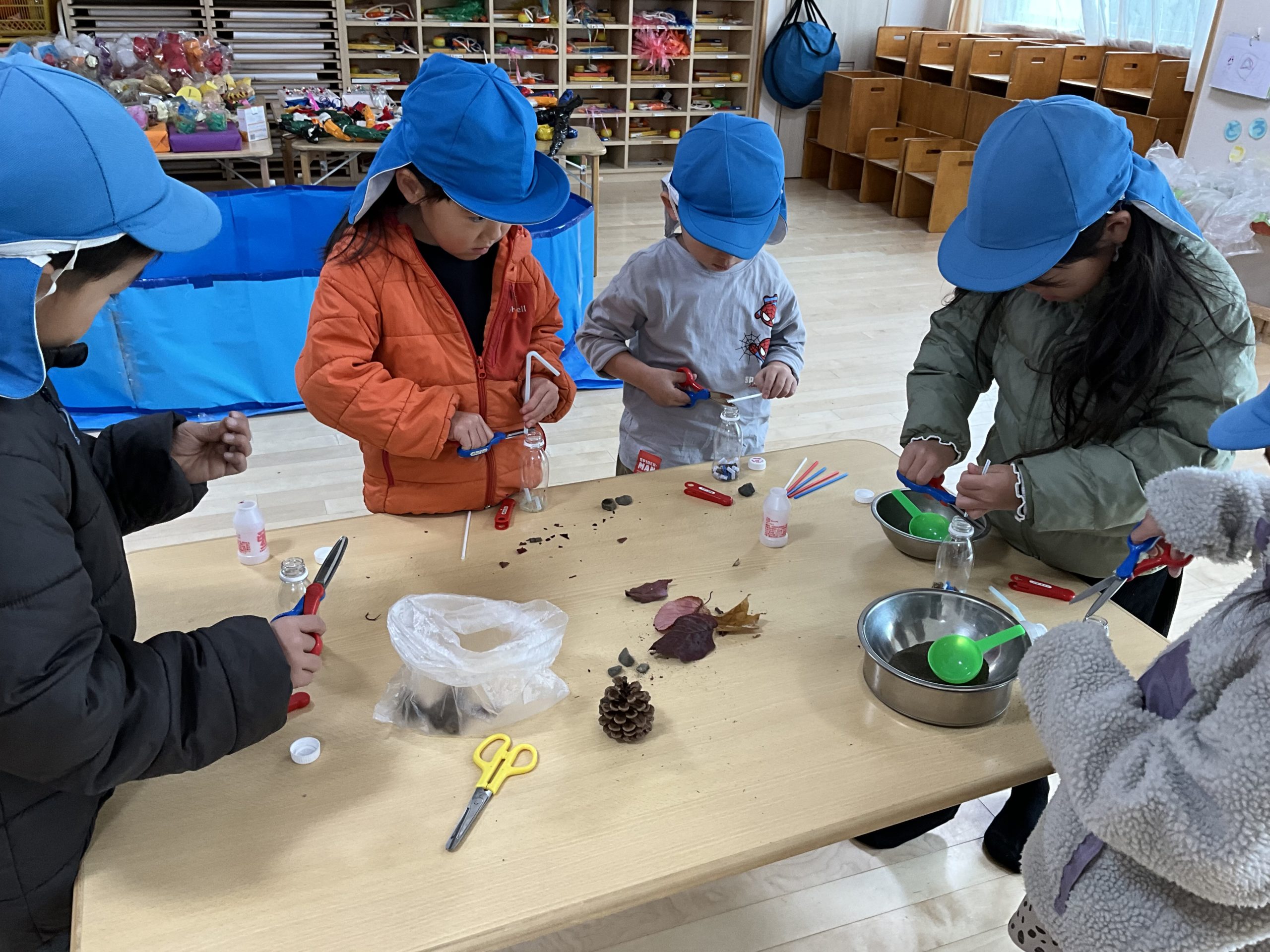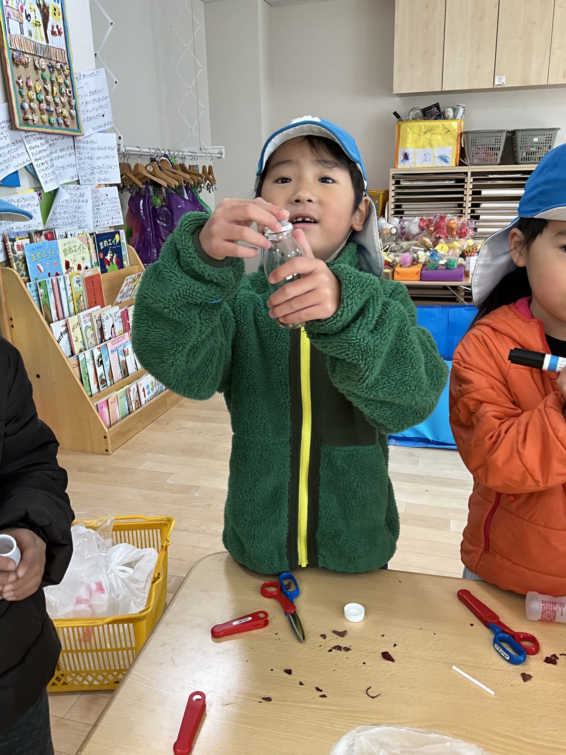 容器に音が鳴るものを自分なりに考えて入れていました!