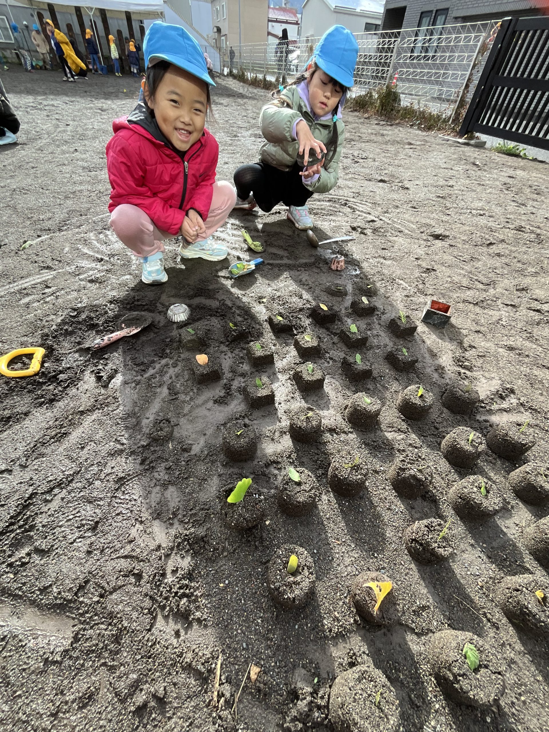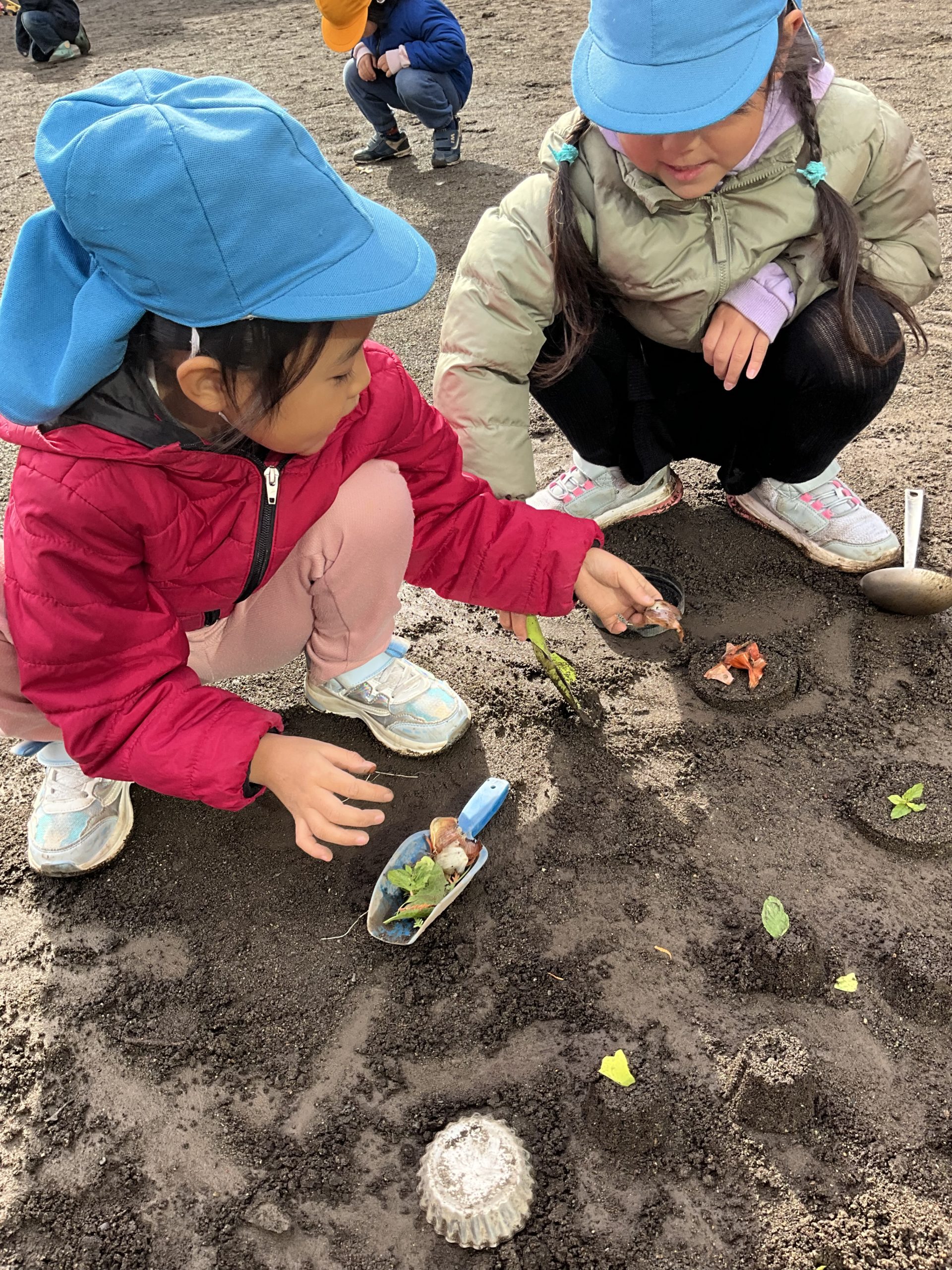 お外のおもちゃに石や砂を入れて音を楽しんでいた女の子達👧🏻
