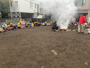 みんなで輪になって、出来上がるのを待ちます!