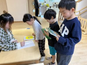 今日しらゆりさんは貸し出し絵本を持って帰りました!