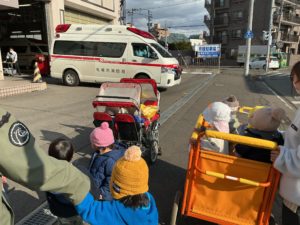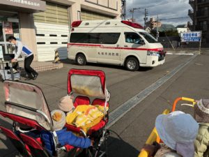 ちょうど救急車が出動するところで
