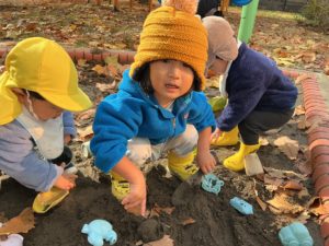 砂場はいつでも楽しくて大人気です