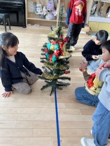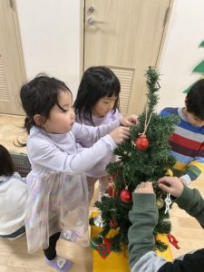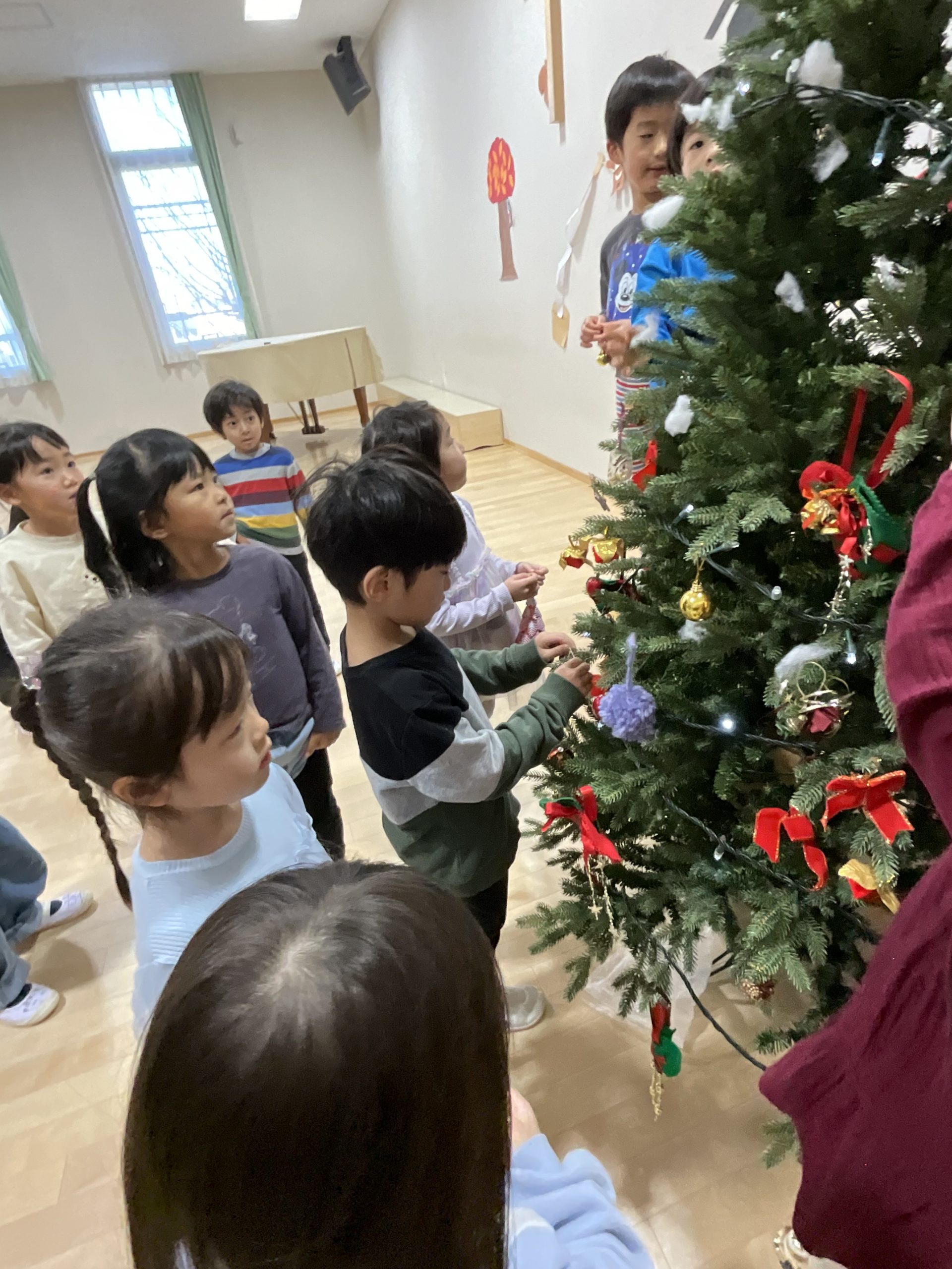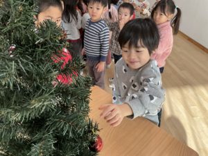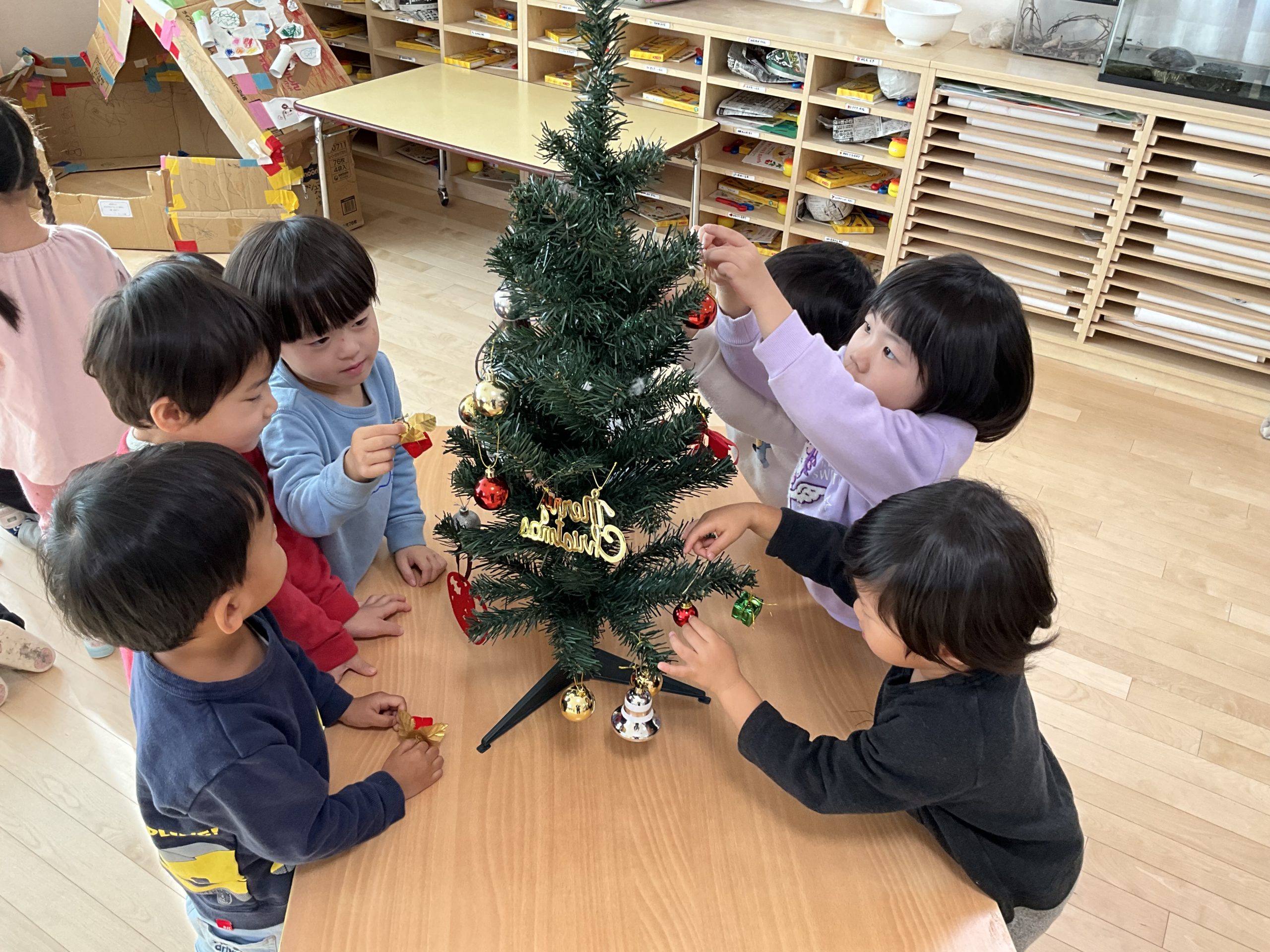 さらに、、、朝幼稚園に来ると各お部屋には何も飾られていないクリスマスツリーが🌲!!