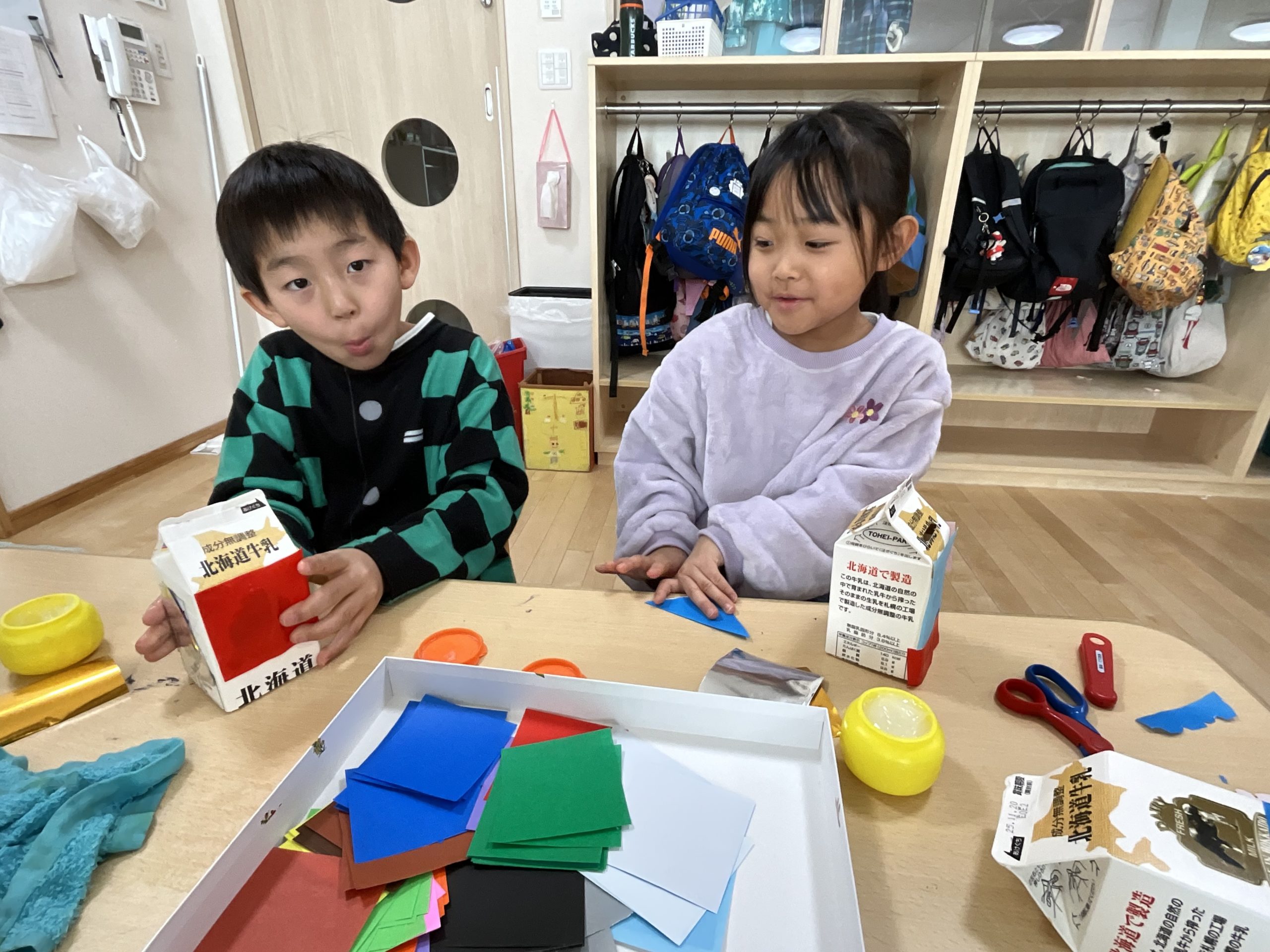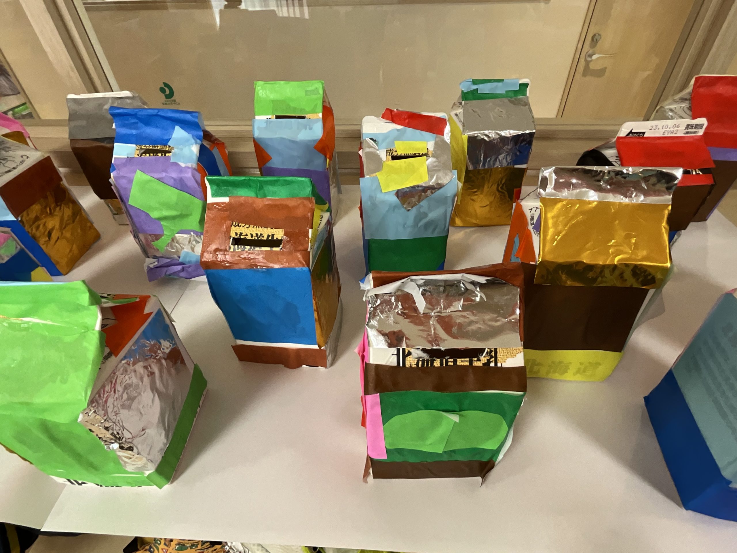 上手に切り貼りし、カラフルな素敵な献金箱が出来ました‼️✨