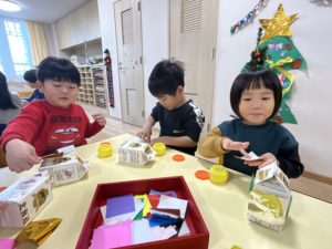お部屋に戻った後、子どもたちはそんな羊飼いのような人たちに何が出来るかを話し、