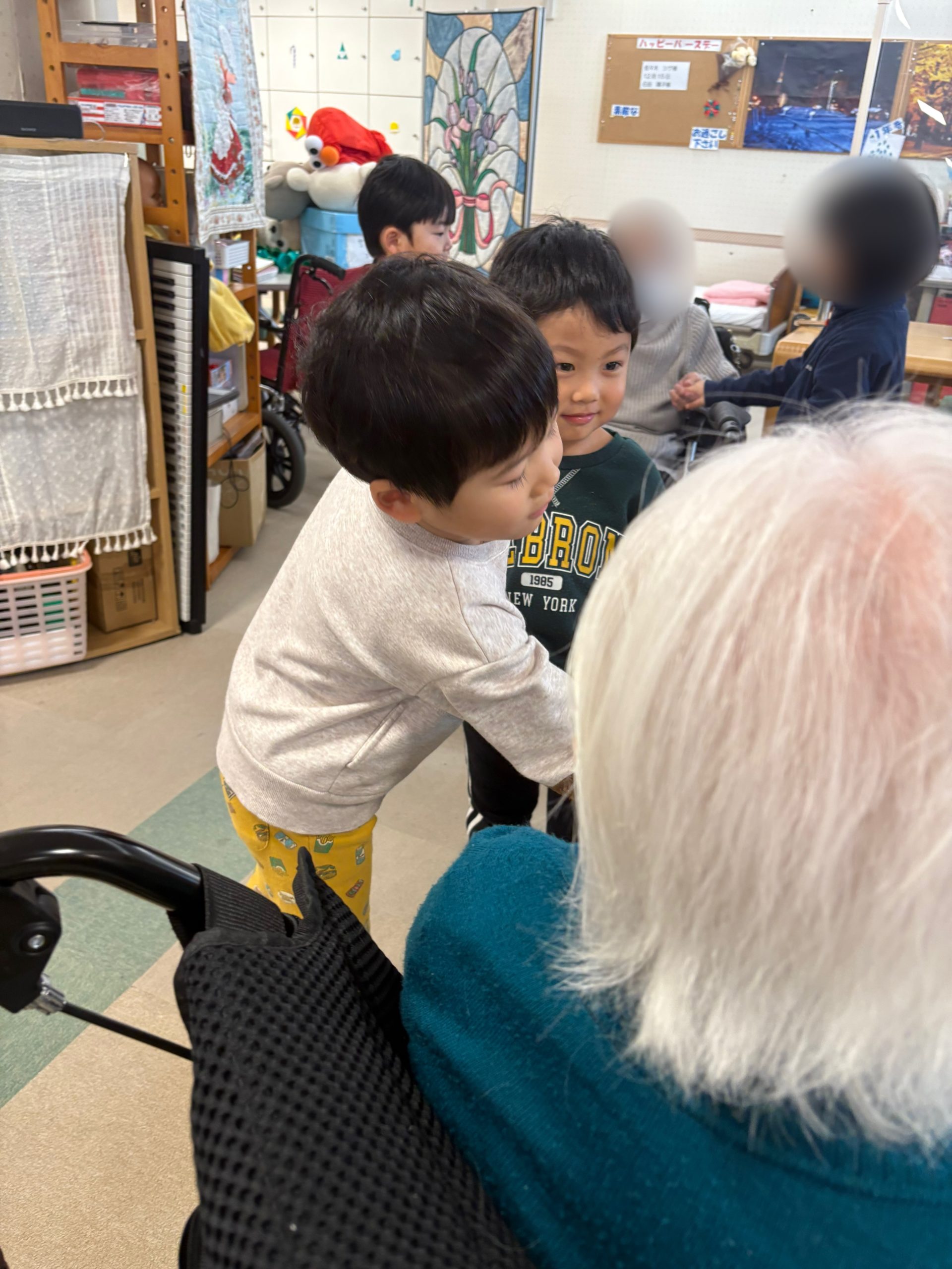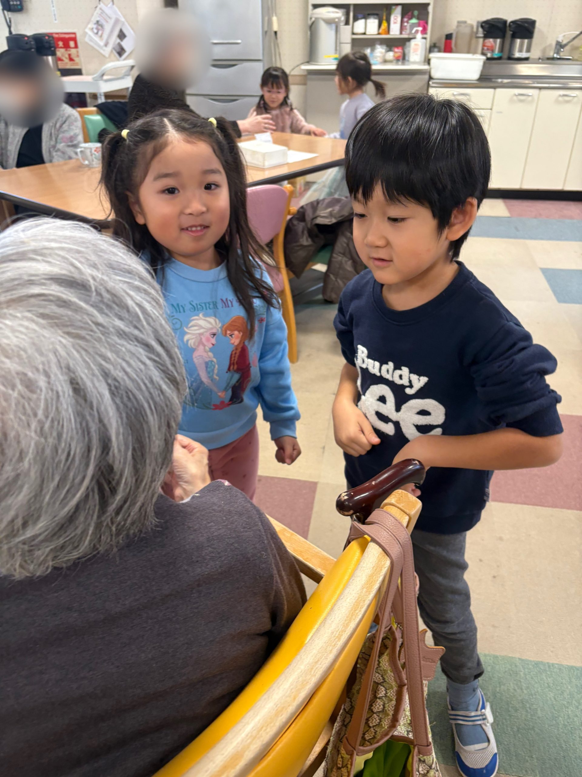 昨日はと組さんは、ずっと楽しみにしていたおじいちゃんおばあちゃんがいる施設へ遊びに行きました!!